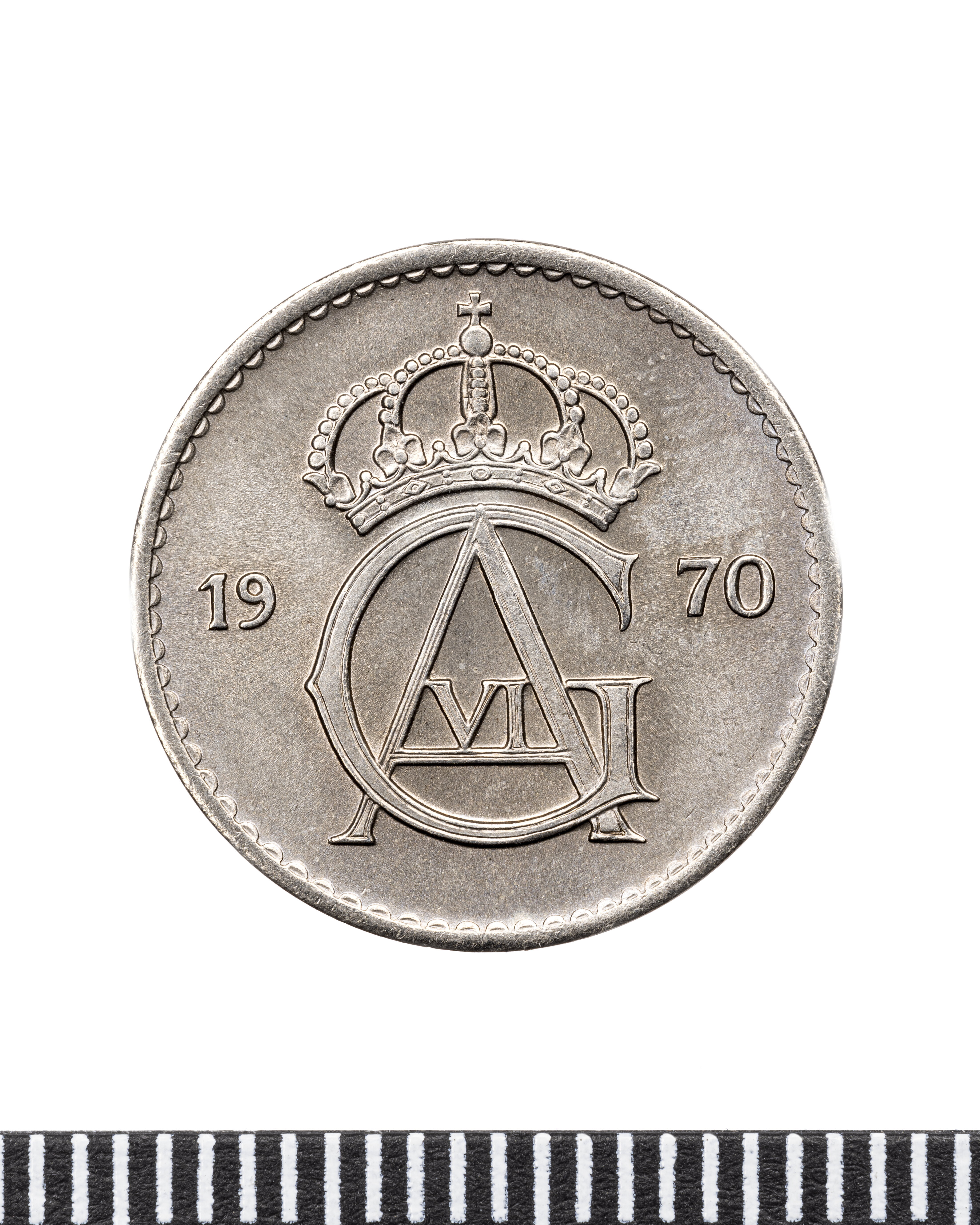 Upphov: Gustaf VI Adolf av Sverige. Media: Mohr, Jens. Ekonomiska museet - Kungliga myntkabinettet/SHM, (CC BY 4.0) Du får bearbeta och dela verket för alla ändamål, även kommersiella, så länge du anger upphovsperson och licensgivare.