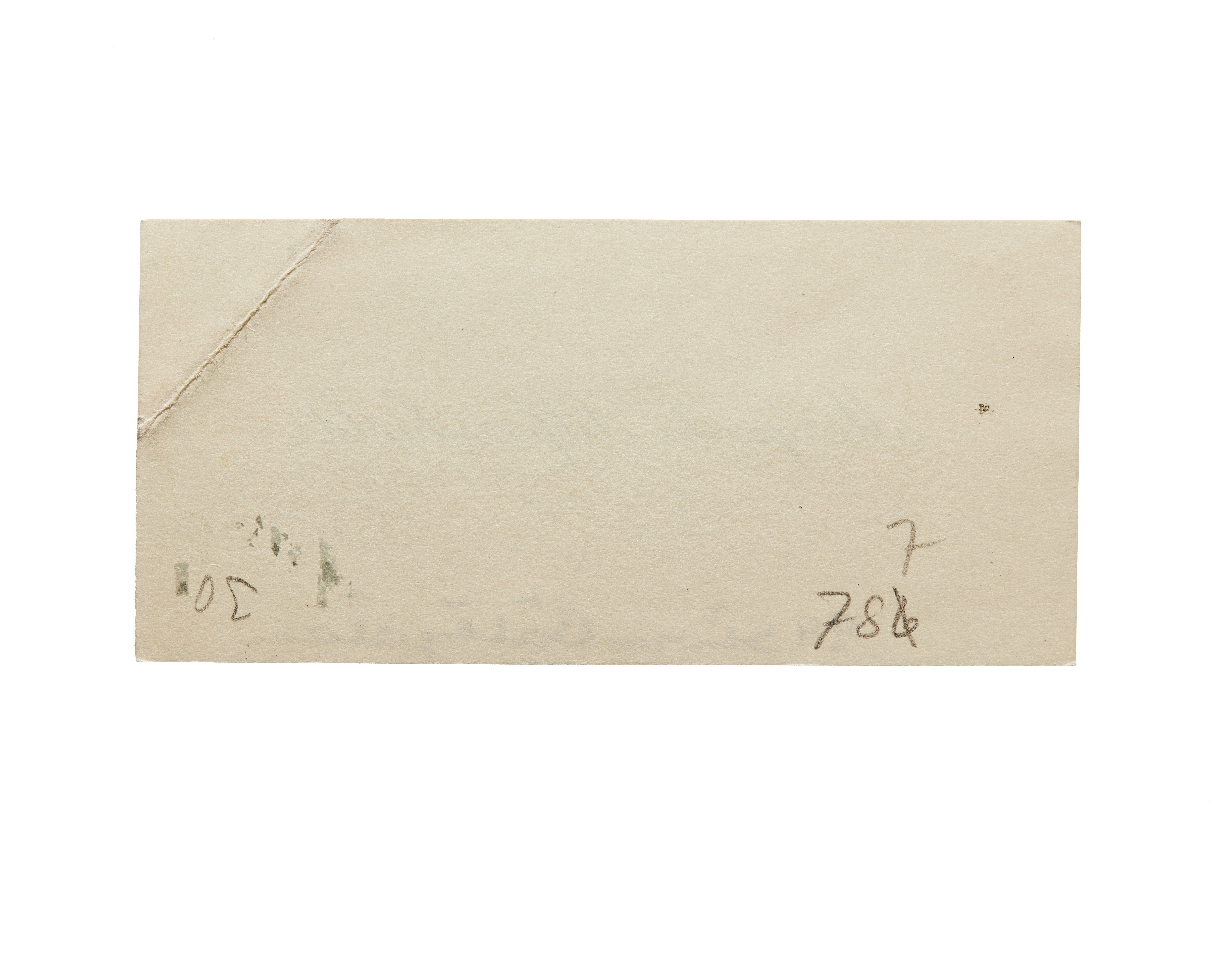 Ett visitkort från Margareta Silfverschiöld, daterat 1930, vikt i övre högra hörnet. Adress (handskrift, nedre vänstra hörnet) 24 Stora Bältgatan.