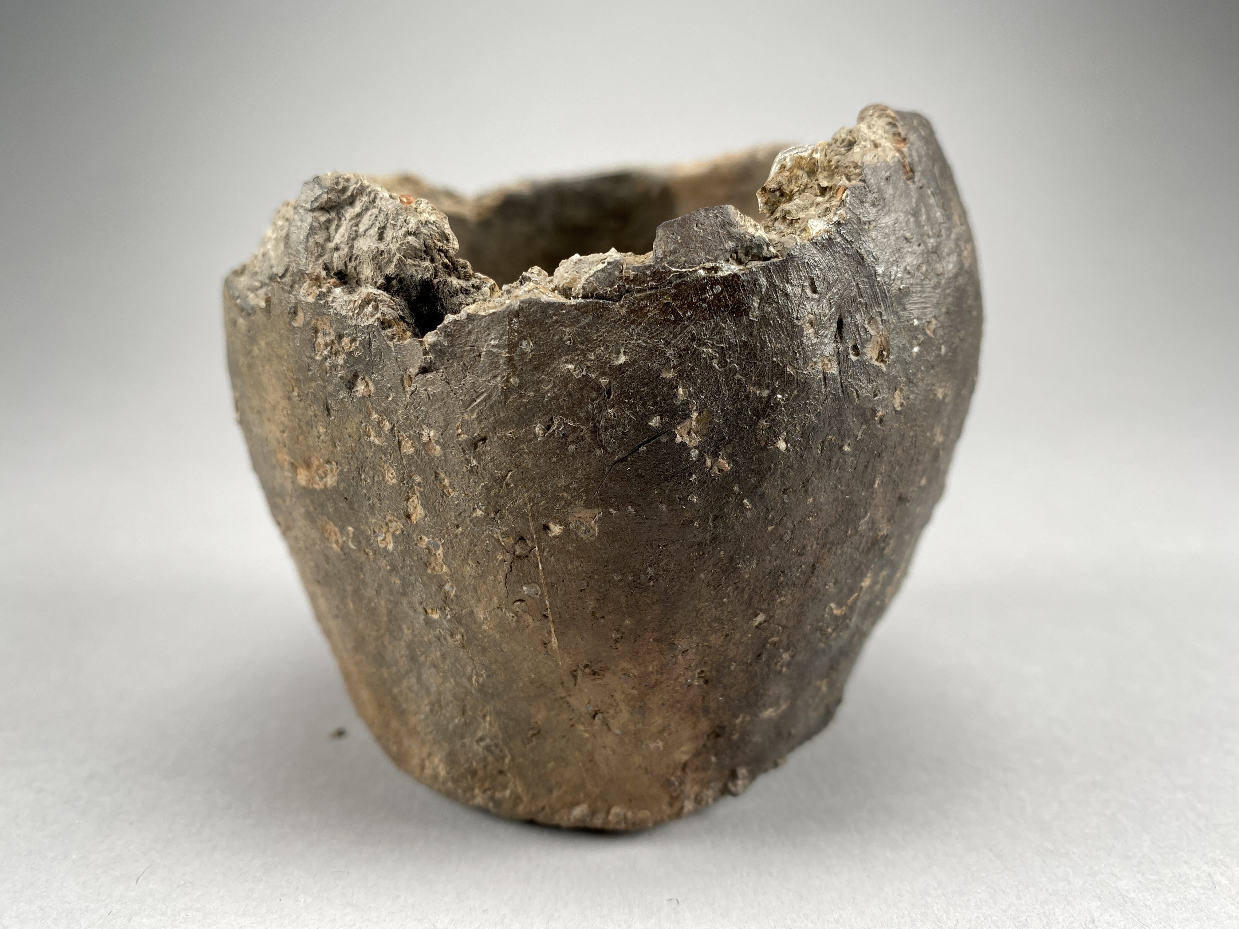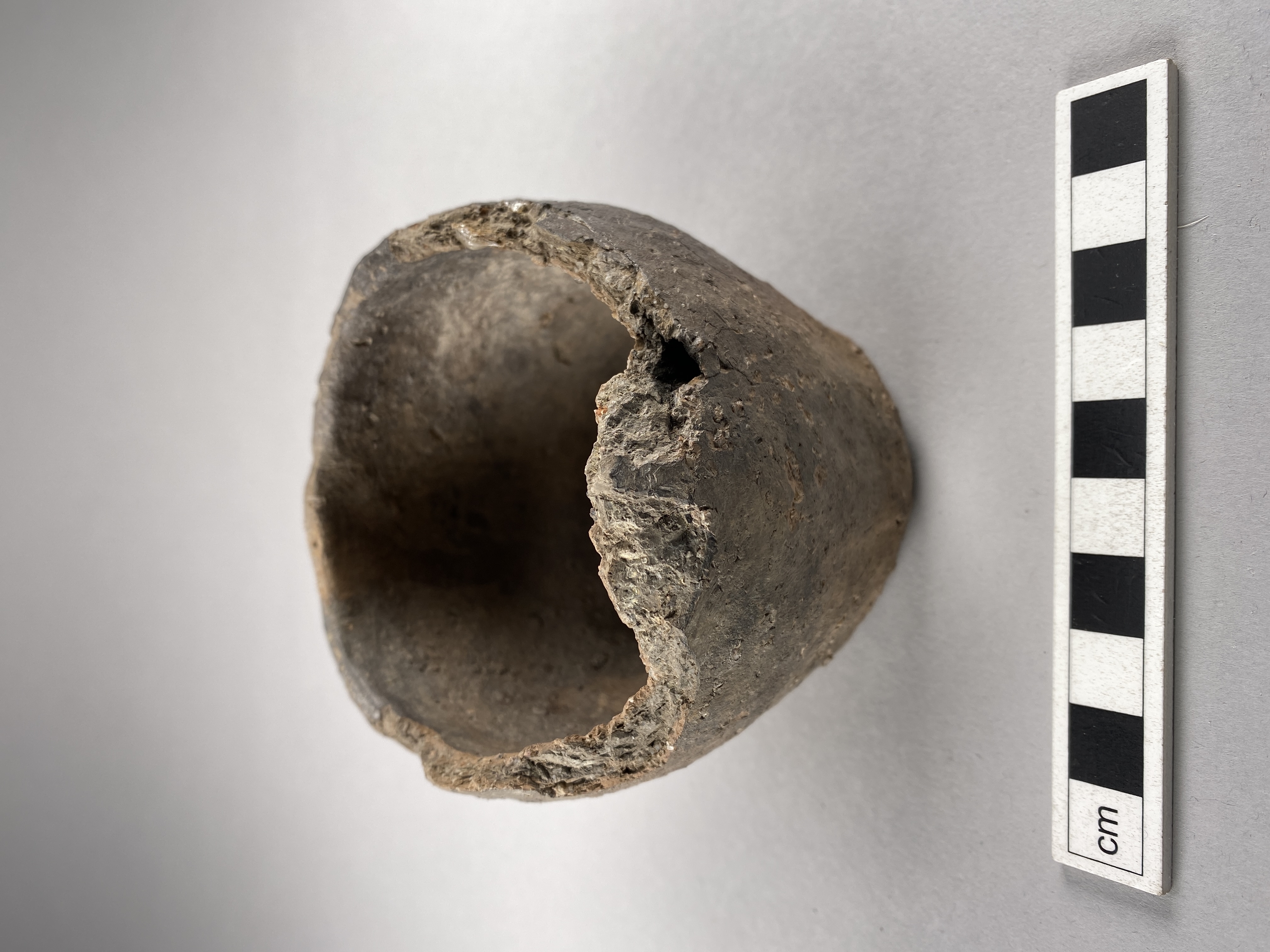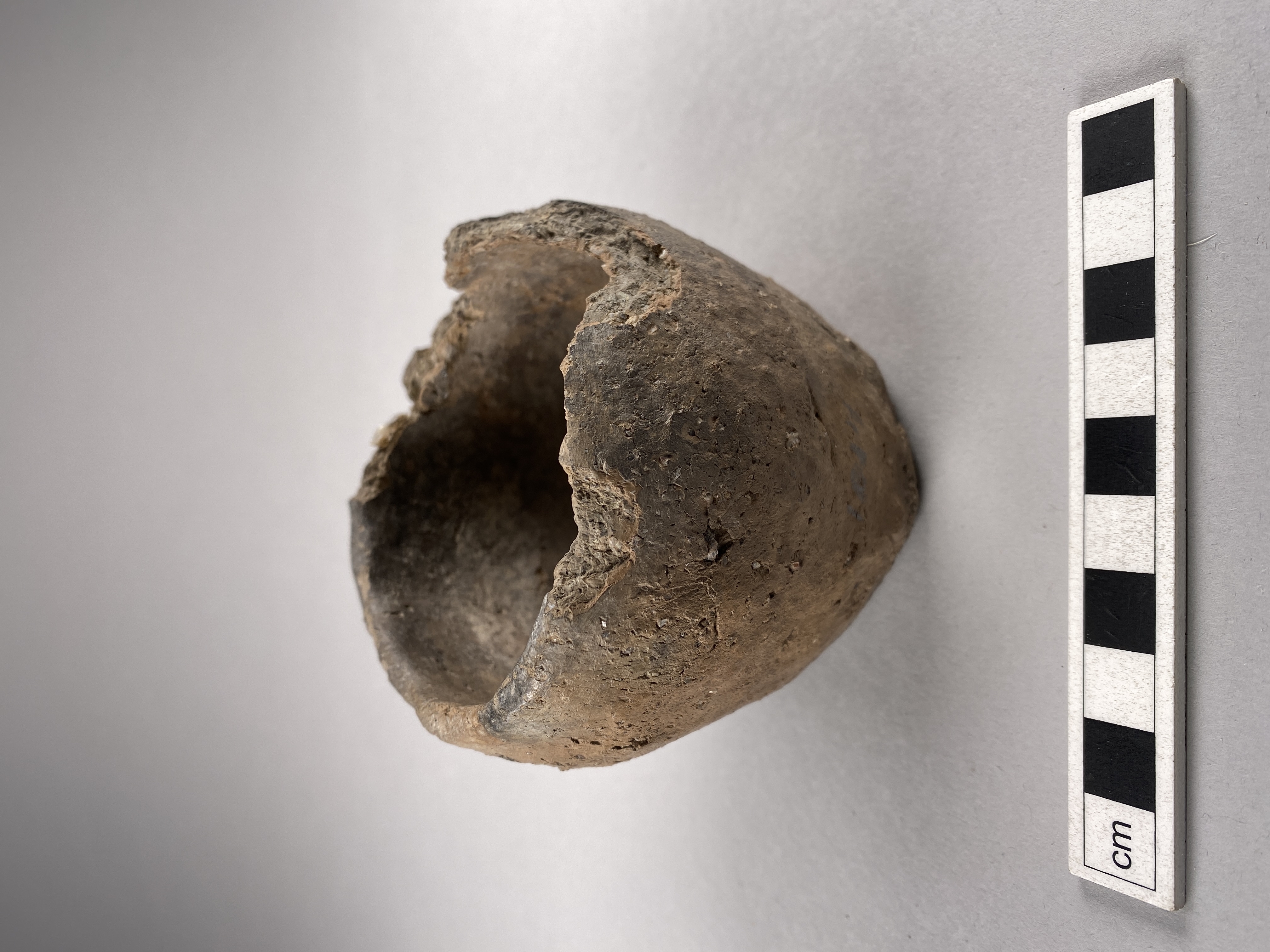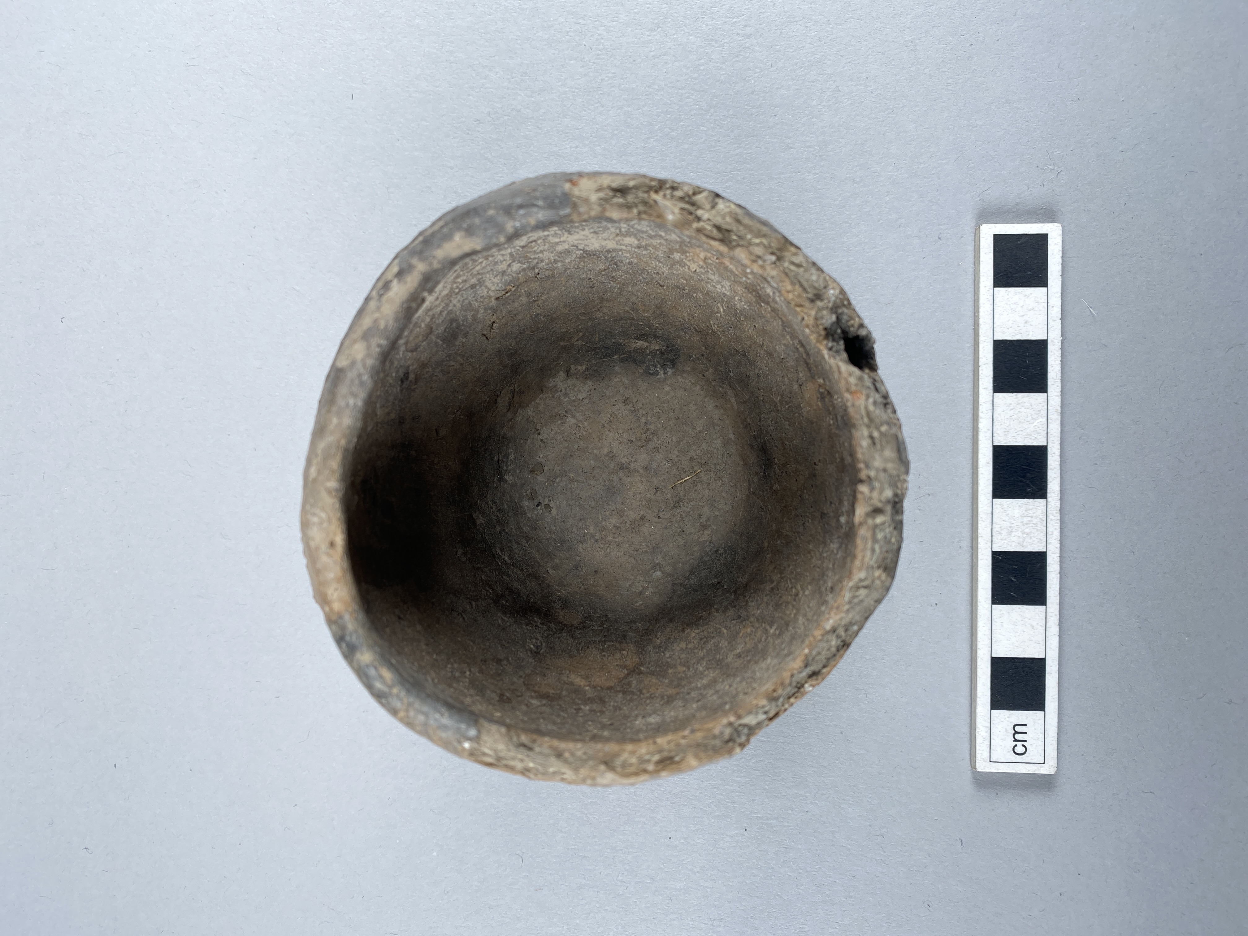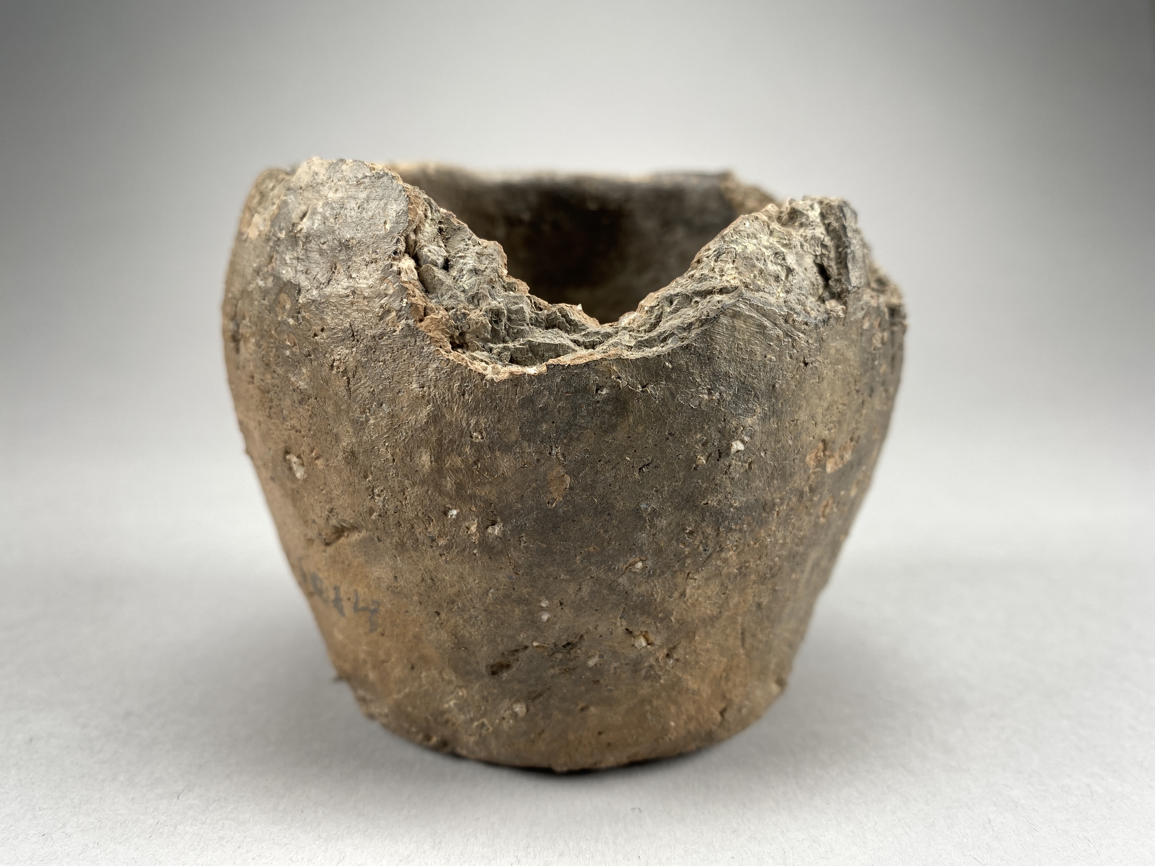 Litet kärl med inåtböjd mynning och rundad mynningskant. Höjd 7,5 cm.