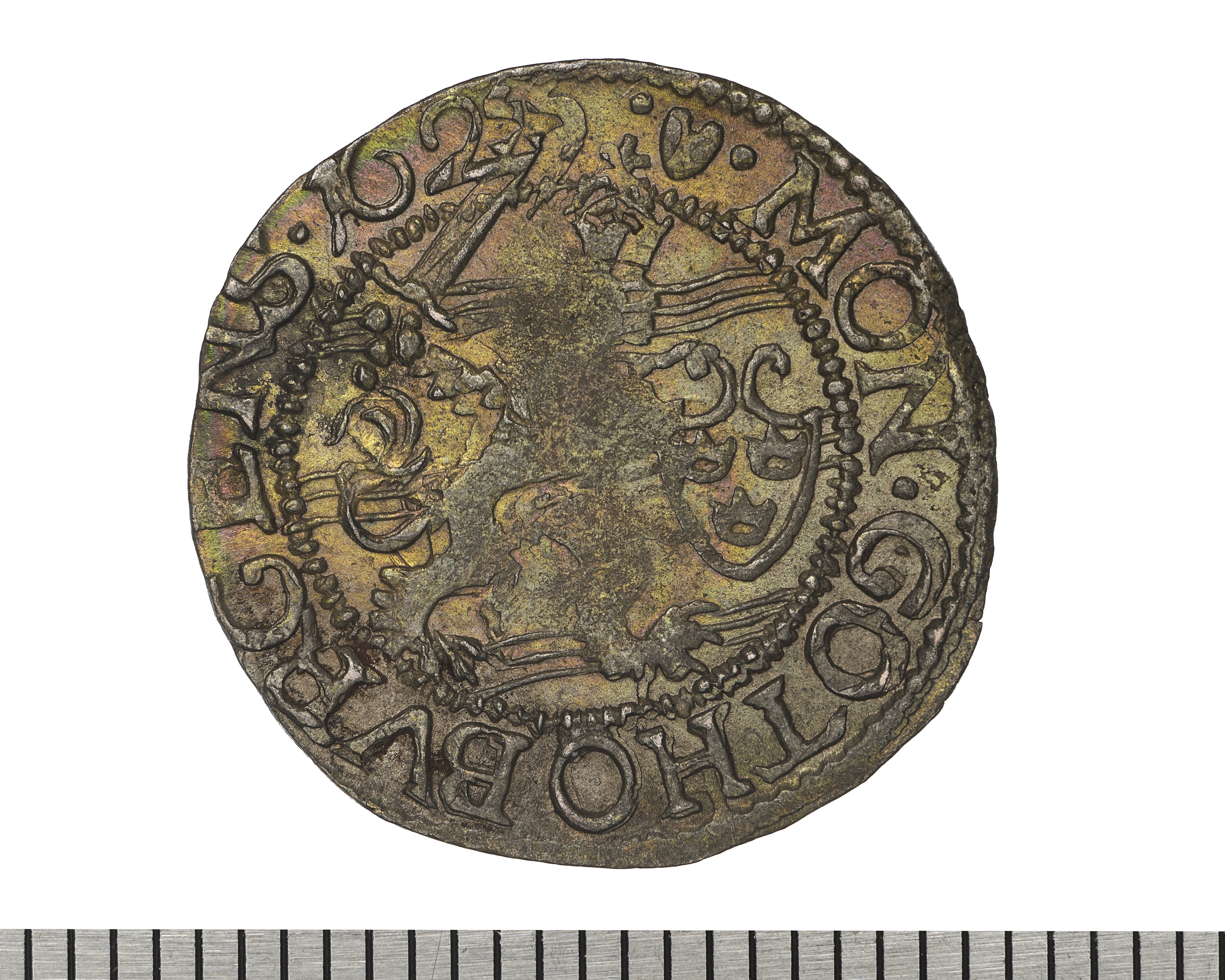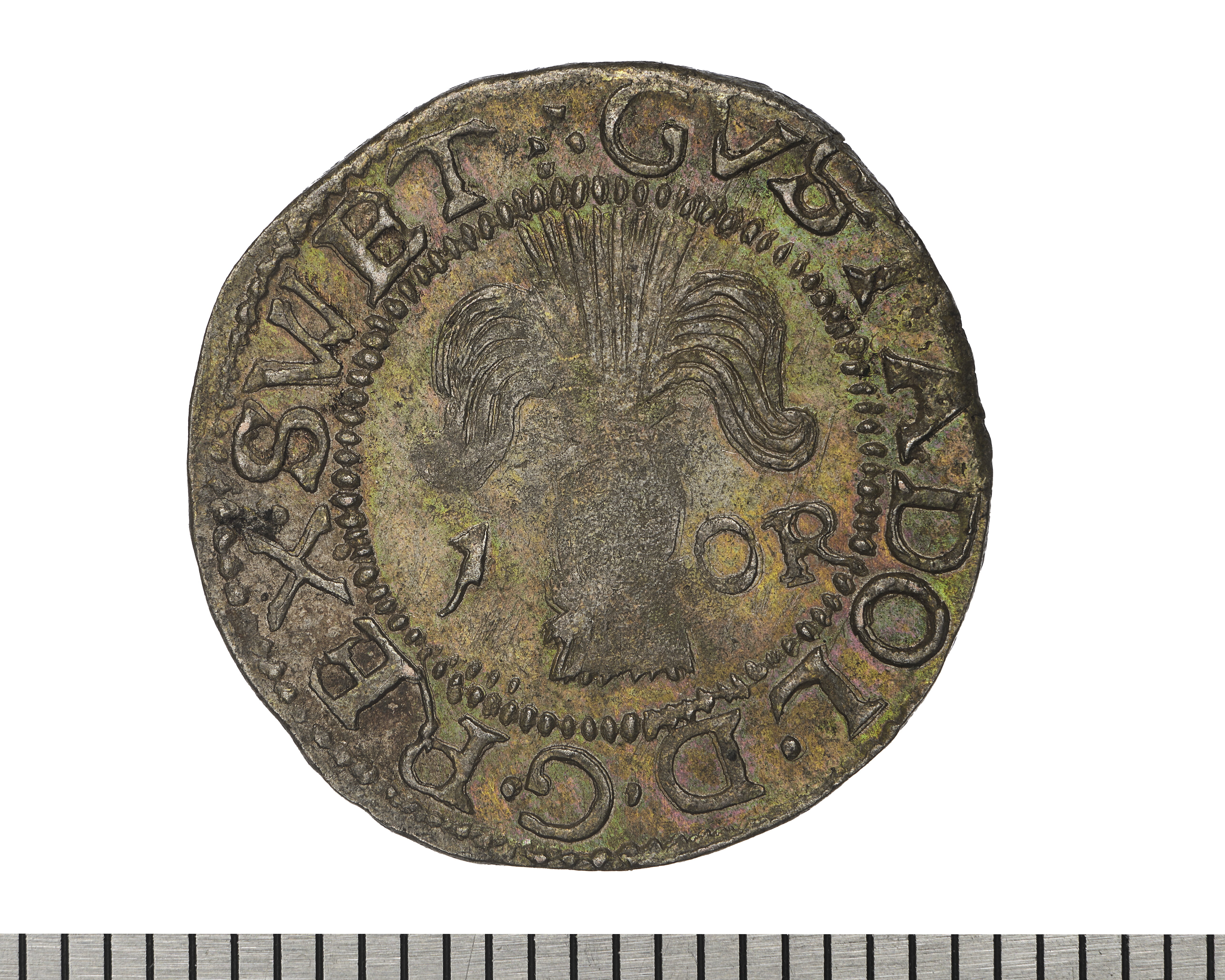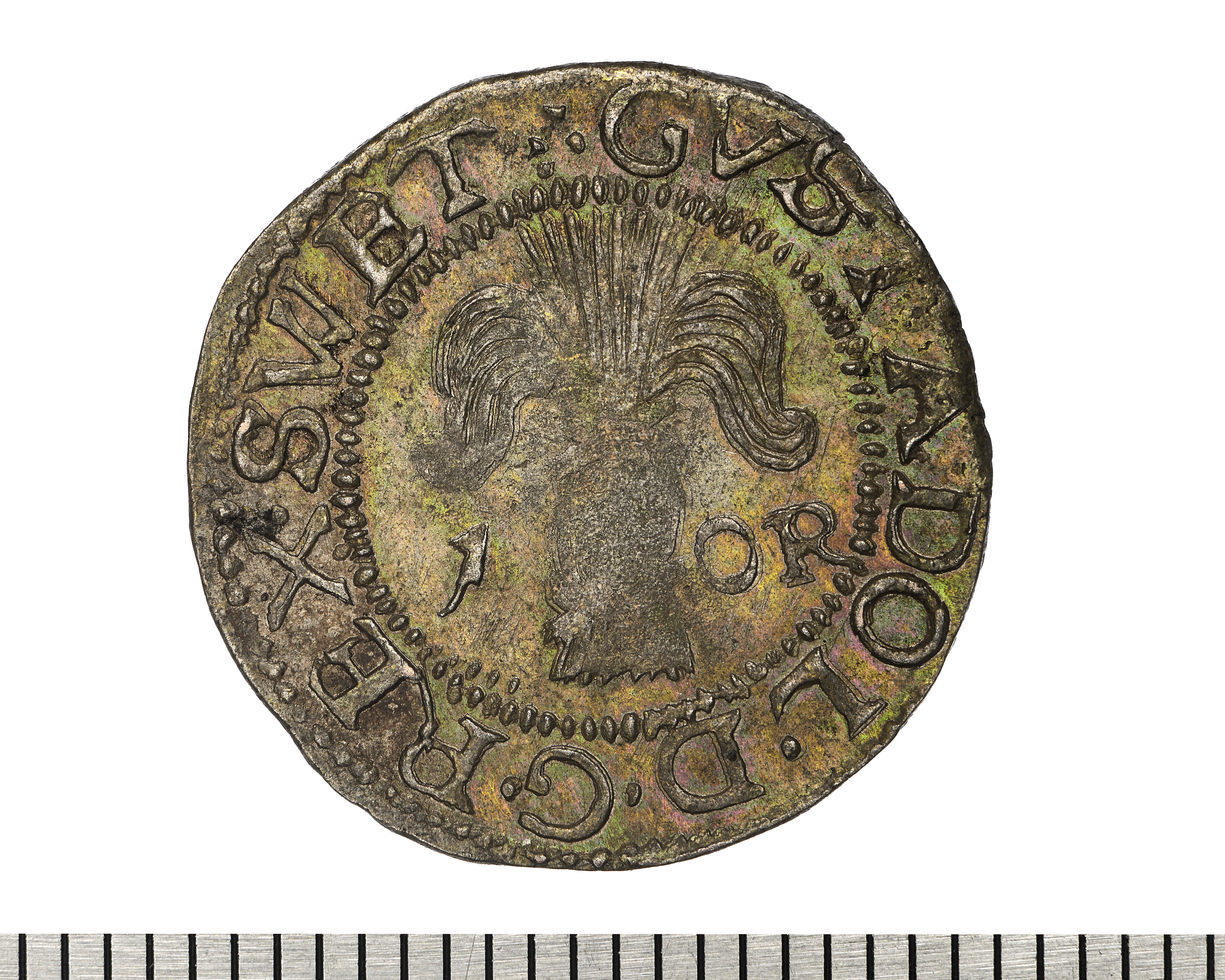 Upphov: Gustav II Adolf av Sverige. Media: Bonnevier, Helena. Ekonomiska museet - Kungliga myntkabinettet/SHM, (CC BY 4.0) Du får bearbeta och dela verket för alla ändamål, även kommersiella, så länge du anger upphovsperson och licensgivare.