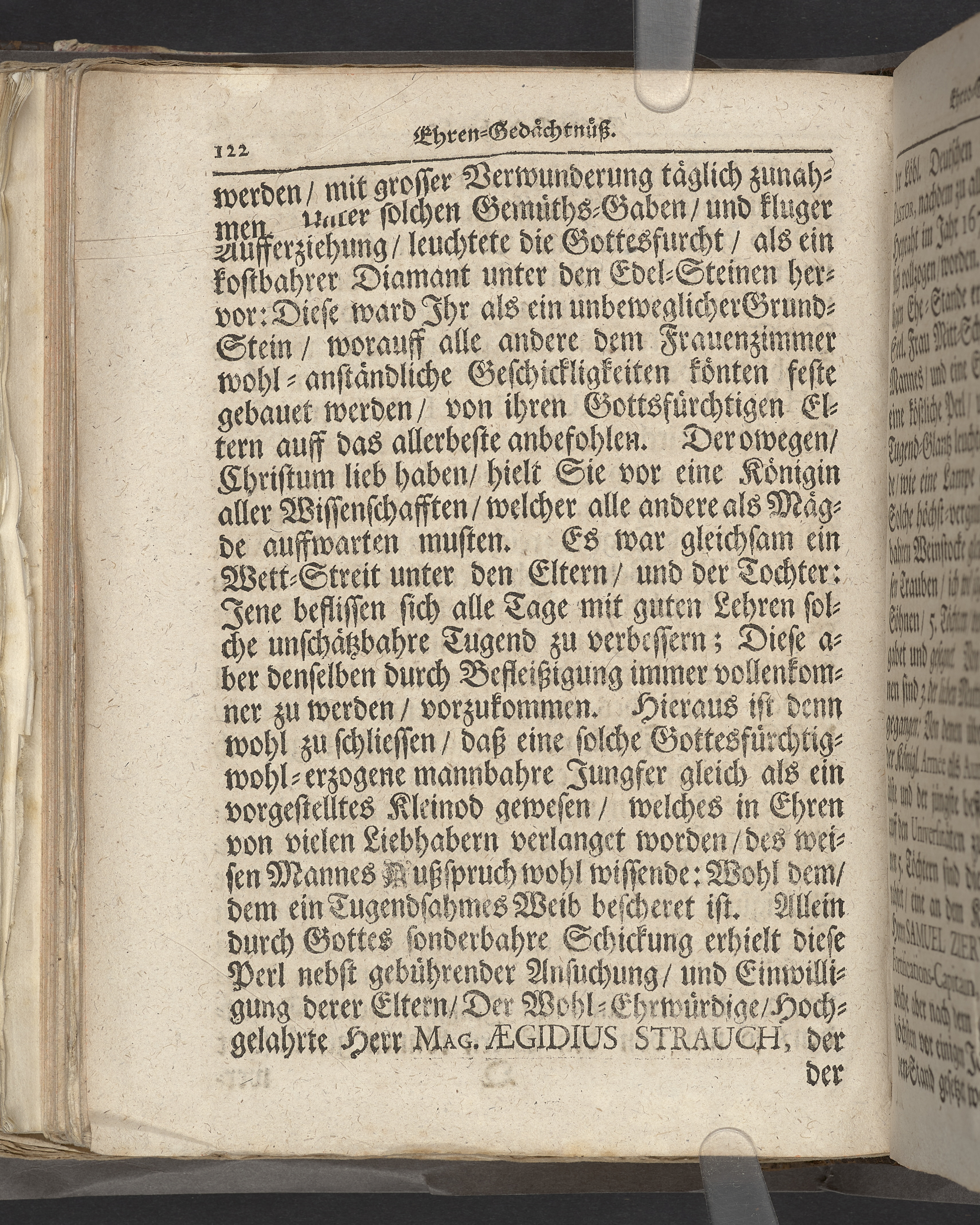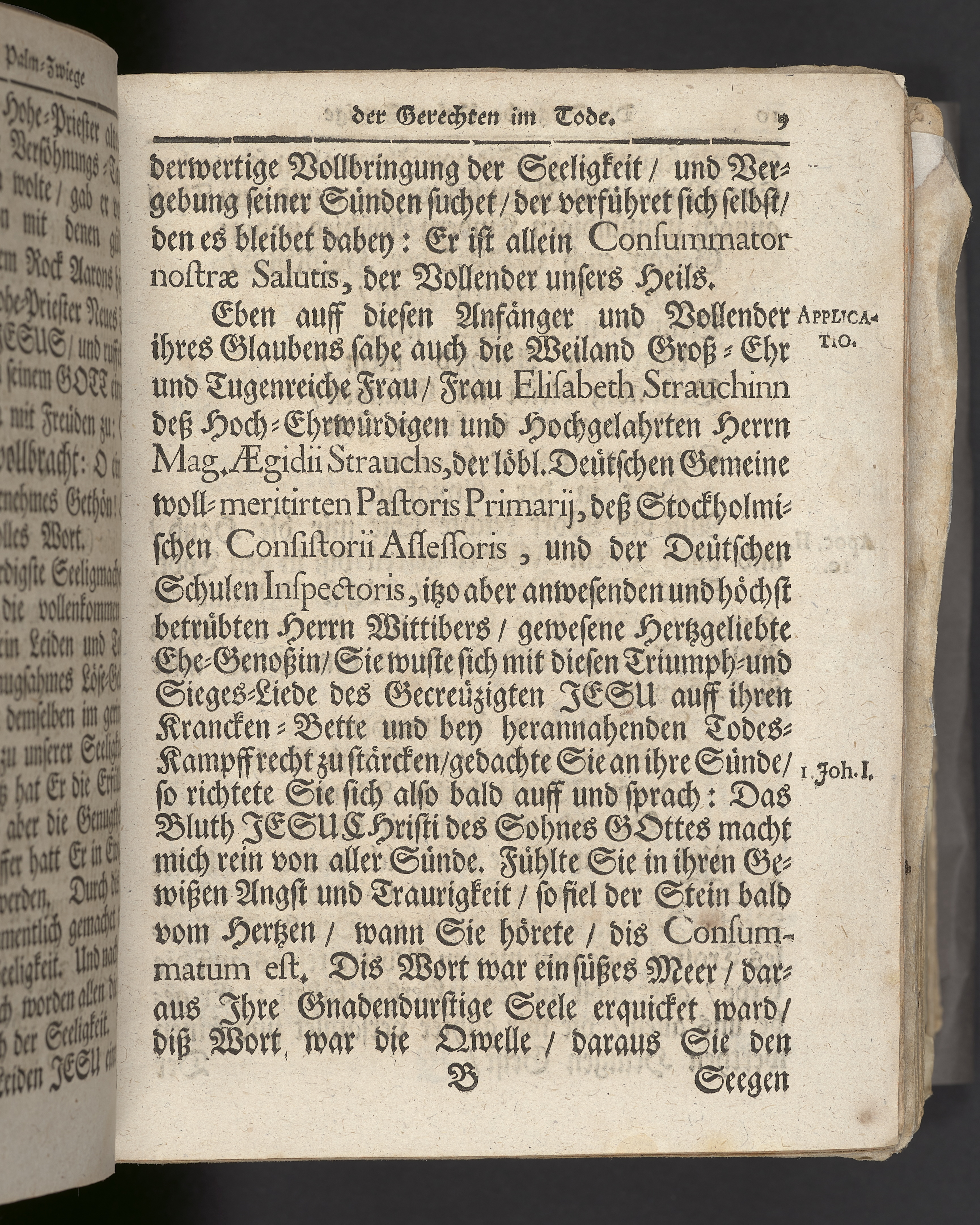 Die siegende Palm-Zweige der Gerecten im Tode, hat an dem Begräbnisz-Tage der... Fr. Elisabeth Strauchin, des... Mag. Aegidii Strauchs... pastoris primarii der löbl. teutschen Gemeine... Ehe-Gattin... anno 1709. den 11. April... in der Haupt-Kirche zu St. Nicolai... fürgestellet Timotheus Lütkemann... Stockholm, druckts Julius Georg Matthiæ...
