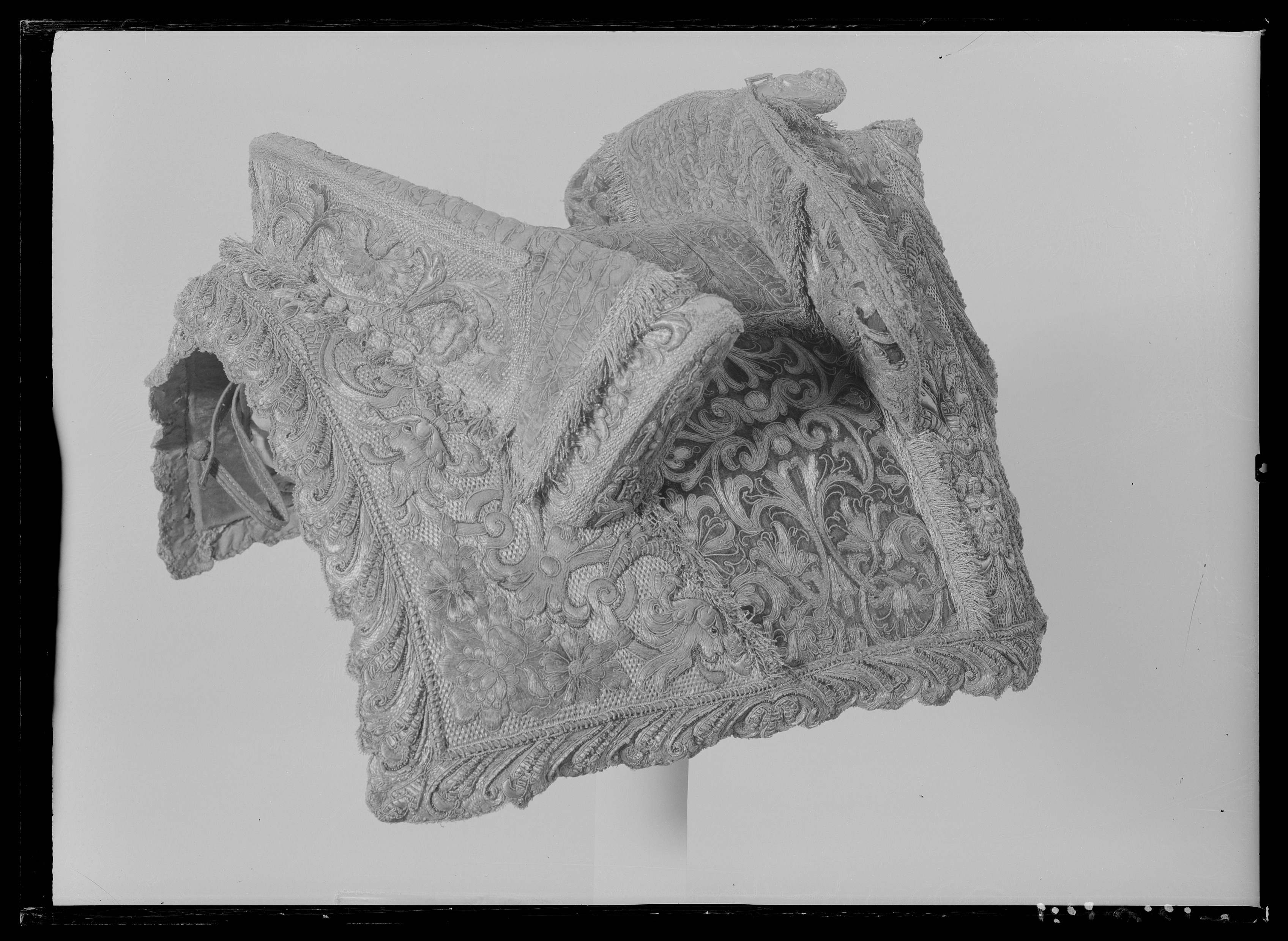 1 Svanskappa lika broderad med sadeln med insatte förgl. hakar