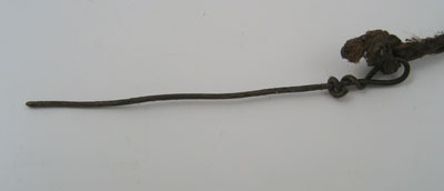 Rensnål av ståltråd med ögla upptill. Fäst vid kruttygets mässingsring med snöre.