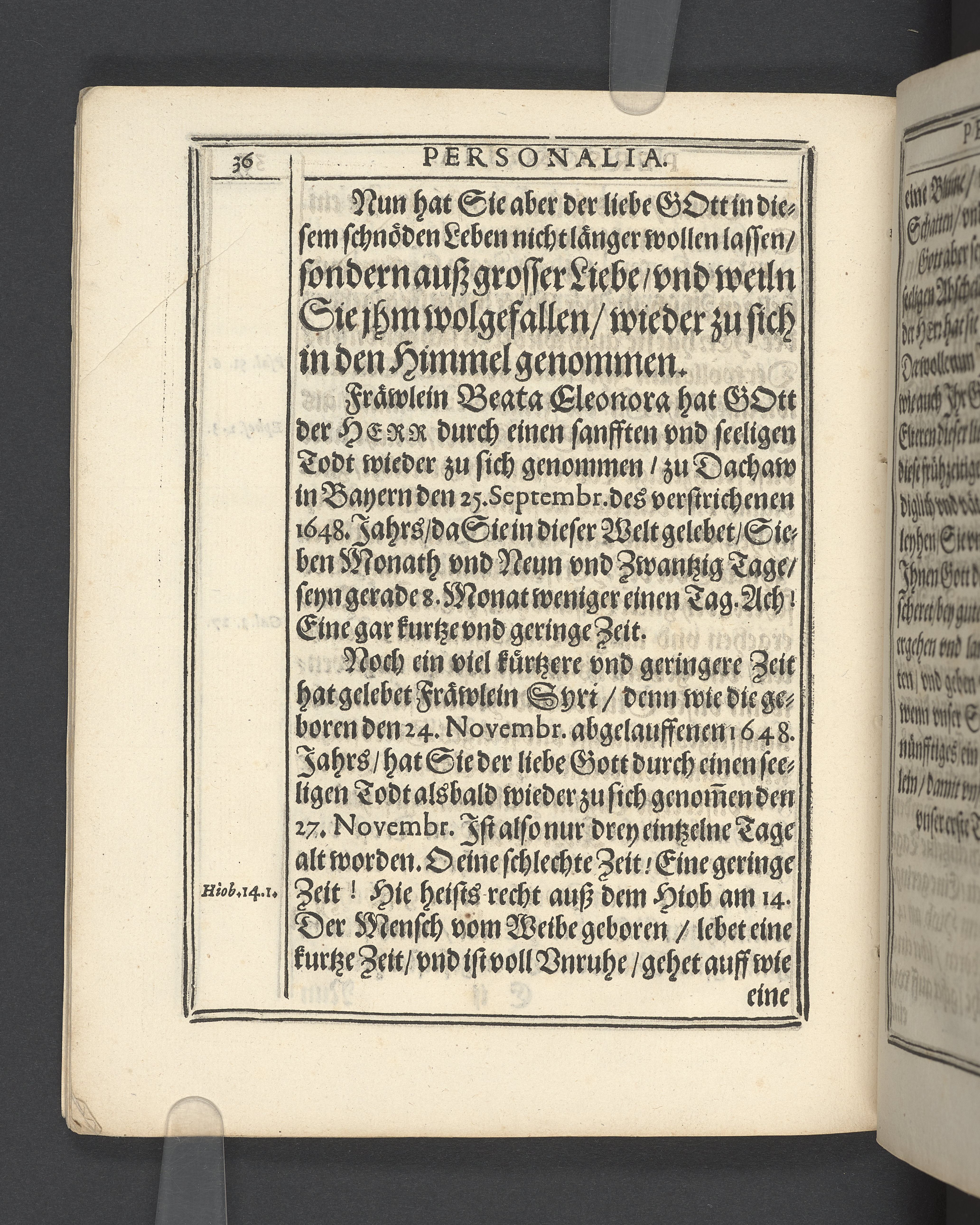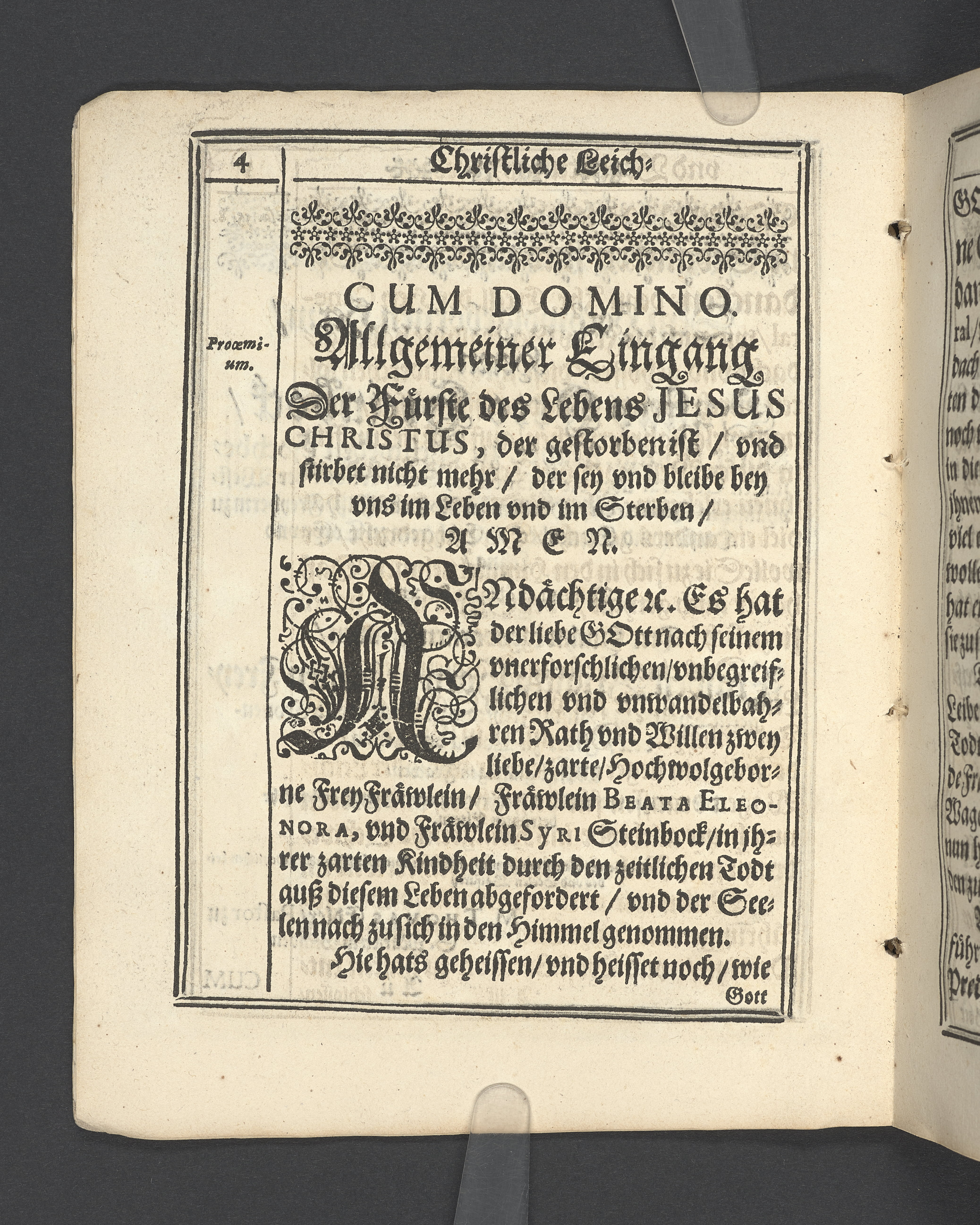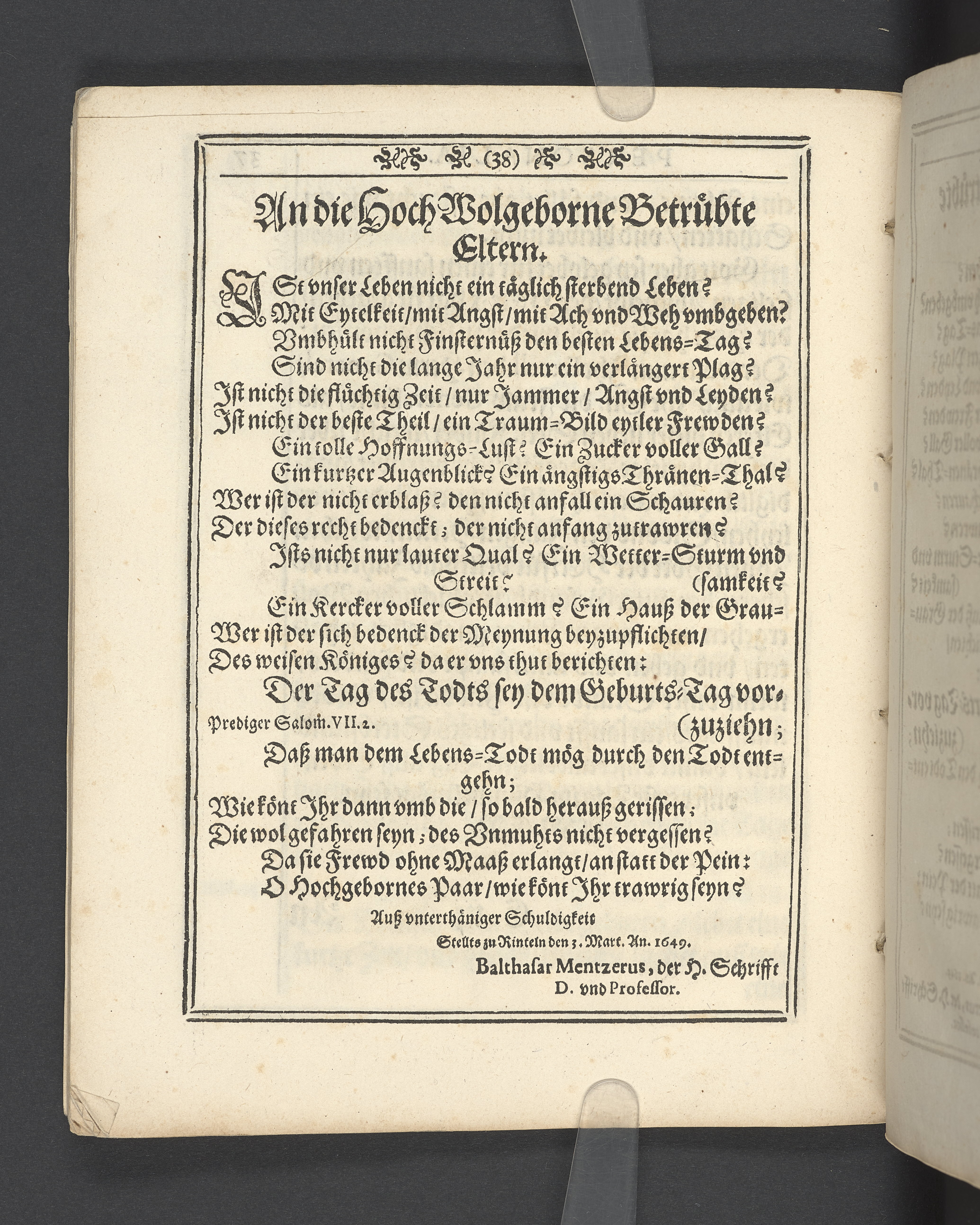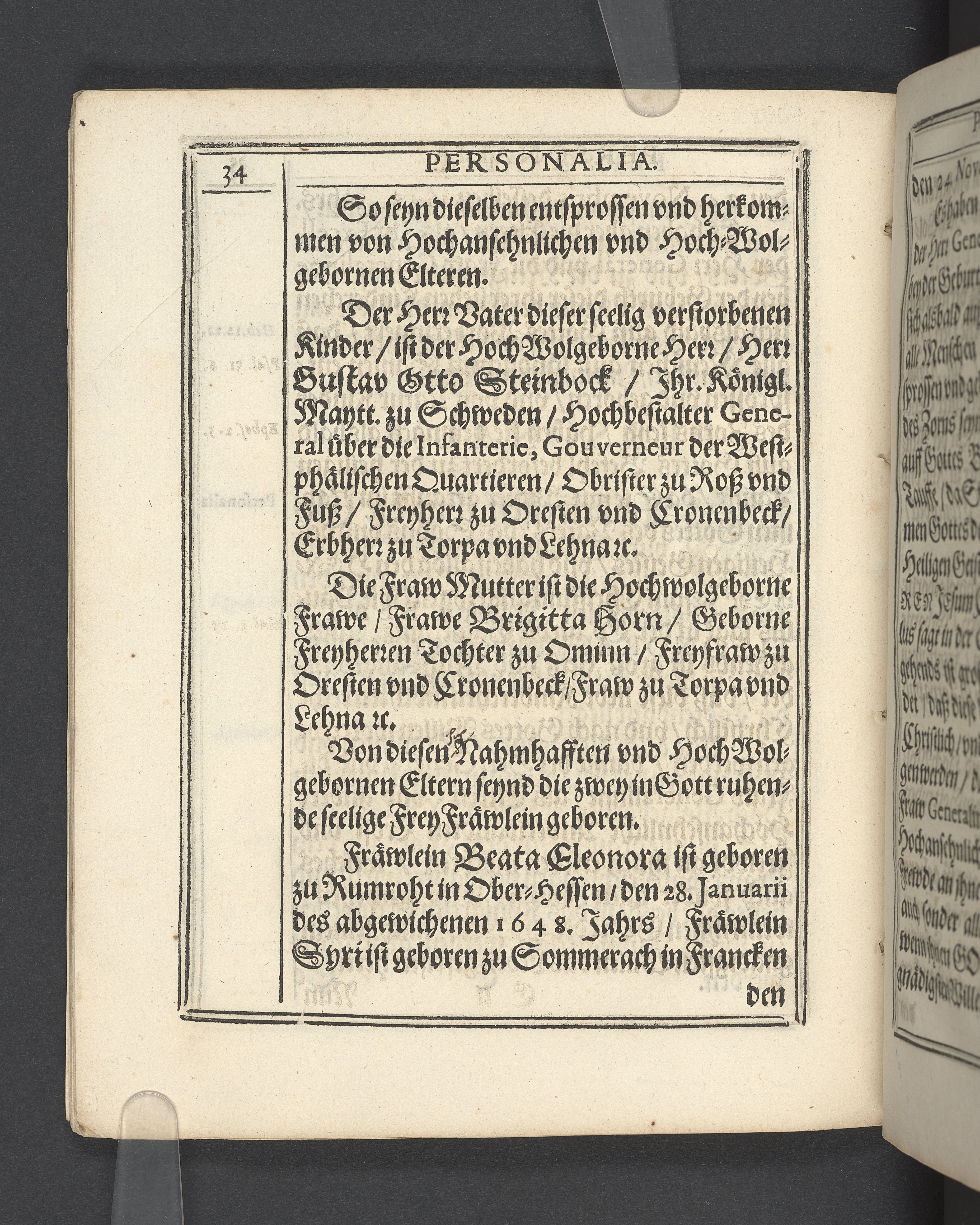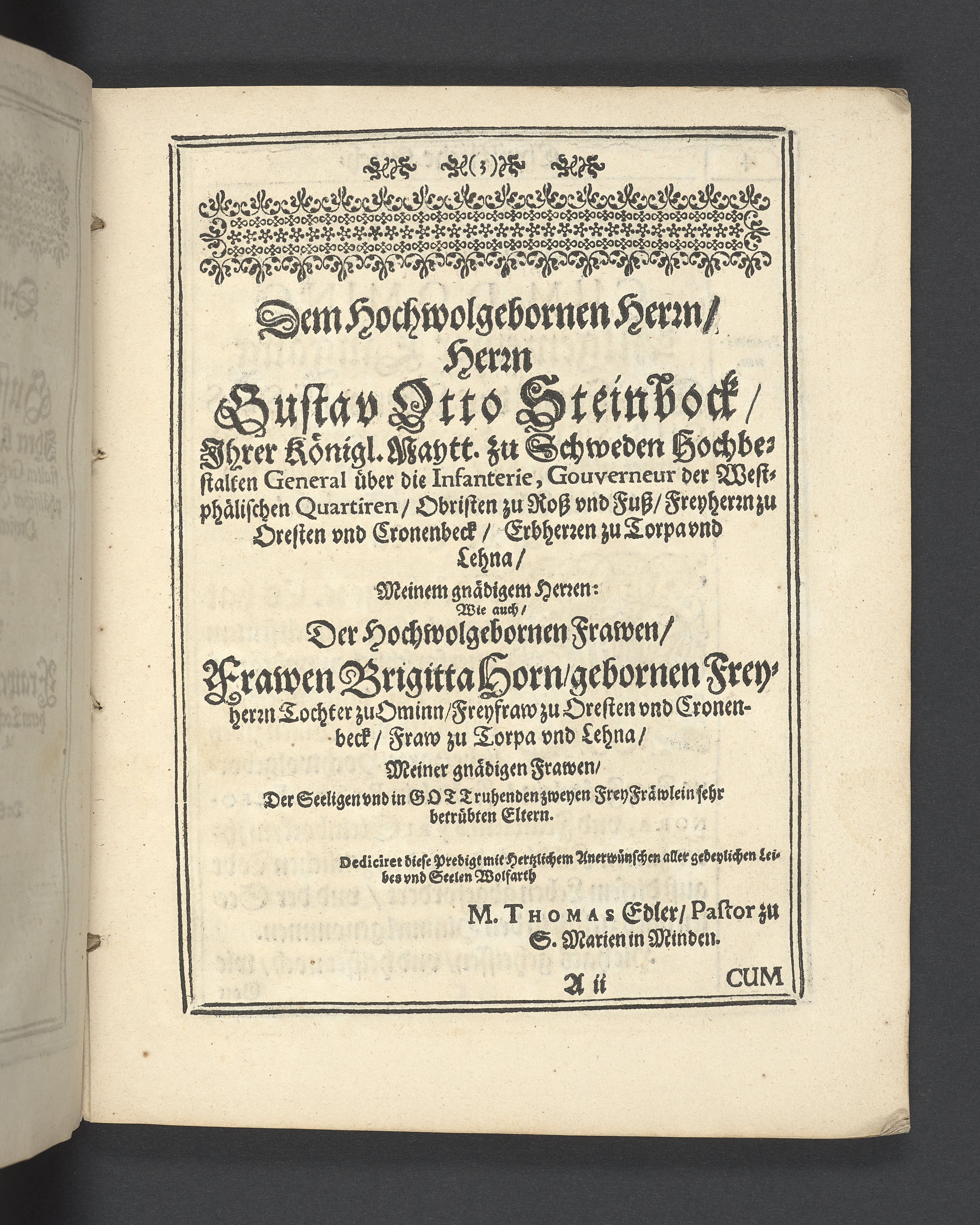 Christliche Leich- vnd Begleitungs Predigt... den 10. Januarij... 1649. Jahr gehalten, wie... Fräwlein Beata Eleonora, vnd Fräwlein Syri, des... Herrn Gustav Otto Steinbock... Kinder... ins Königreiche Schweden zu ihrer Ruhestätt abgeführet worden... zum Druck übergeben von M. Thoma Edler... Rinteln an der Weser, gedruckt bey Petro Lucio... 1649.