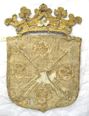 Närkes vapen, broderat till Karl X Gustavs begravning den 4 november 1660. Har troligen suttit på huvudbaneret.