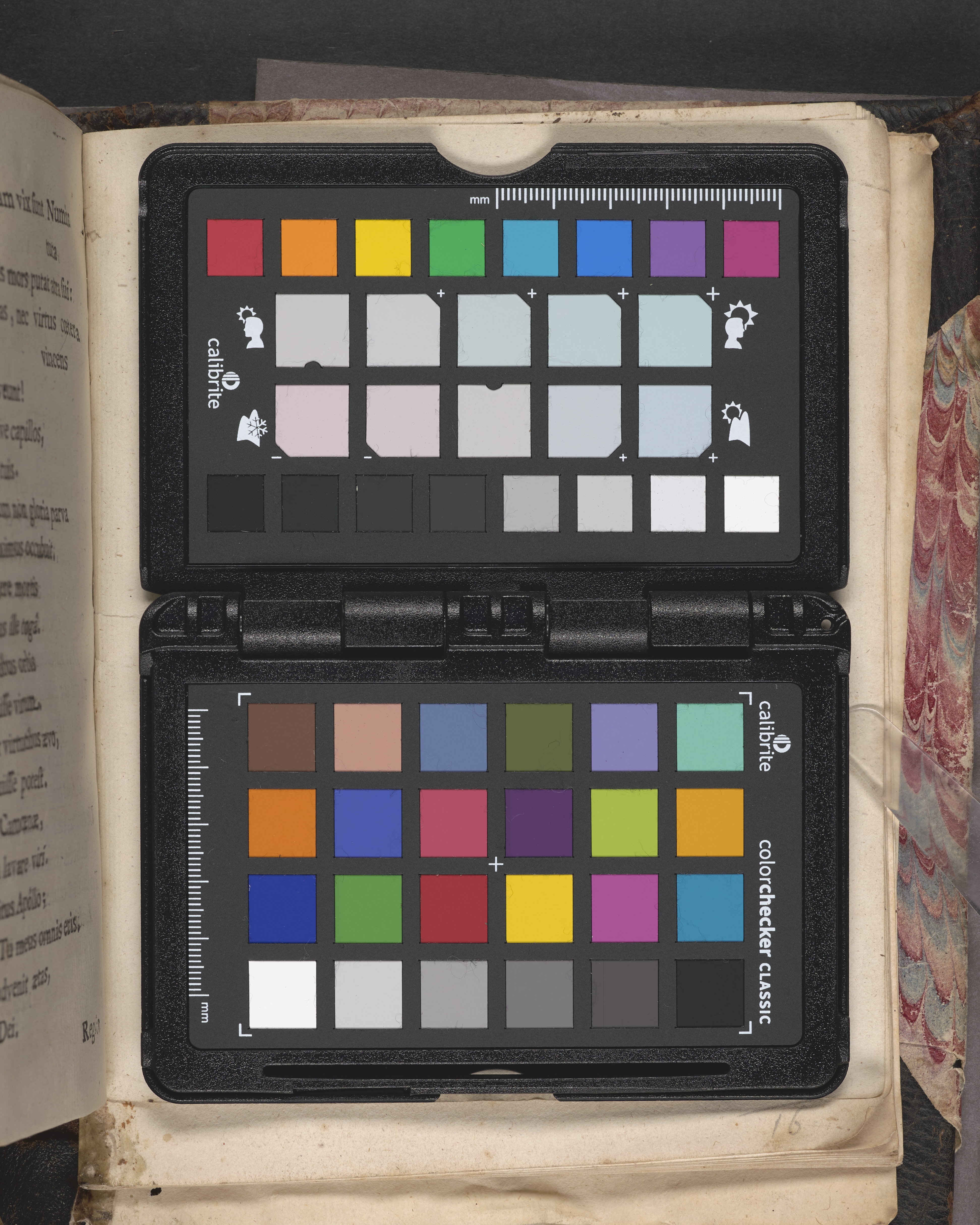 Band m. pärmar av marmorerat papper, rygg och hörn av getskinn. Pärmfyllnad: papp.