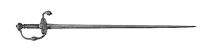 Blank, tveeggad, starkt avsmalnande till en spetsig udd samt med rombiskt tvärsnitt och plana