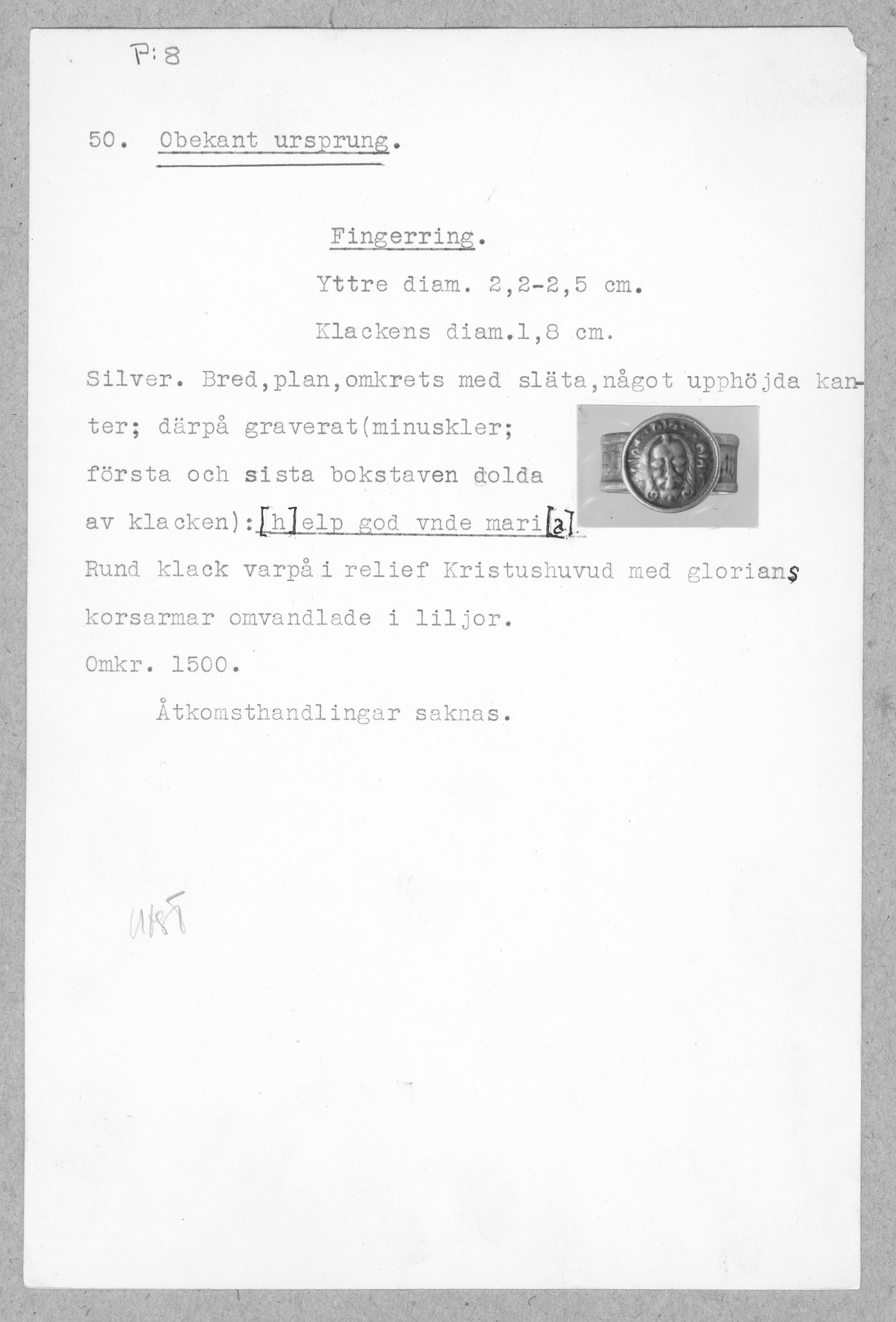 | Föremålsnummer |