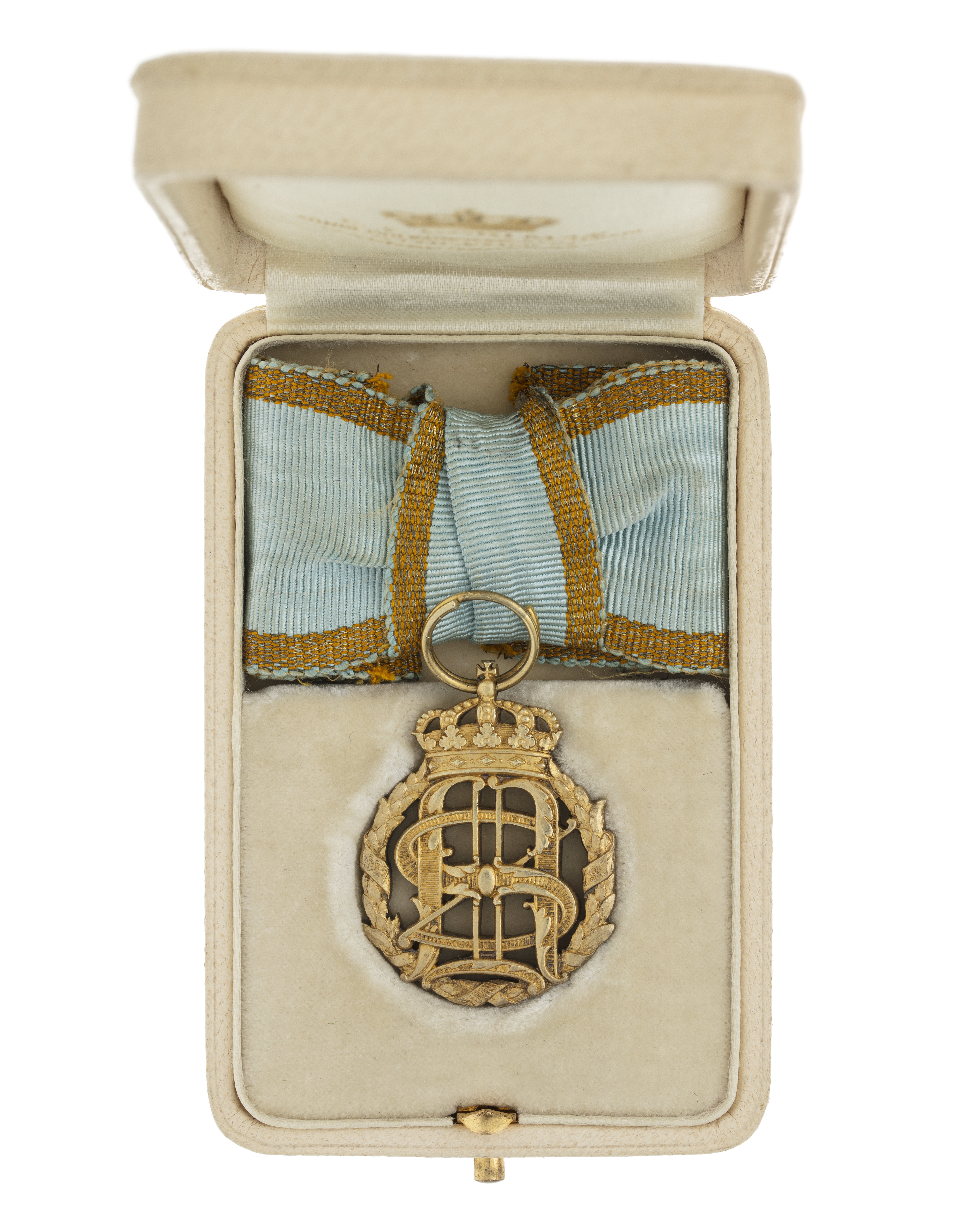 Band till miniartyr av Oscar II:s och Sofias guldbröllopsminnestecken 1907.