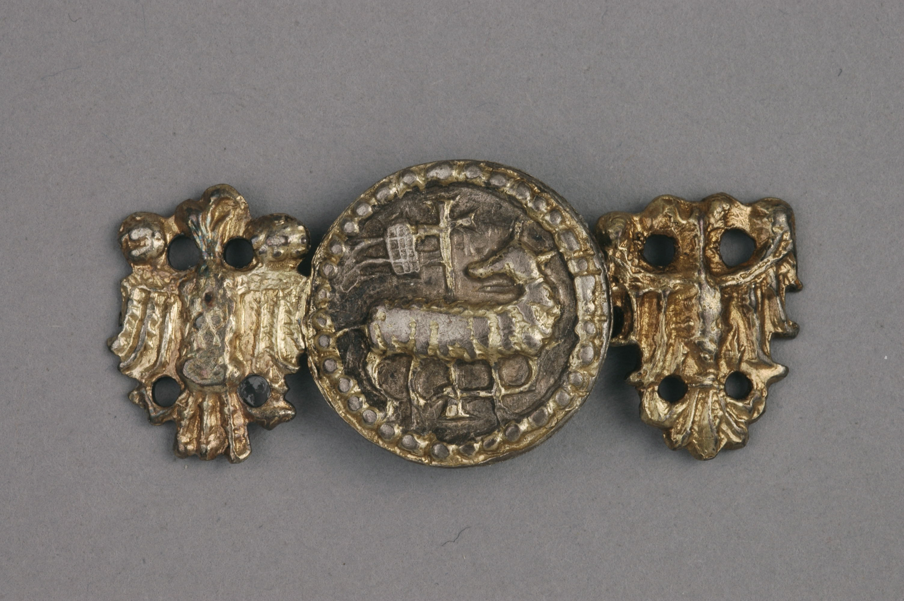 Häkta av förgyllt silver. I det runda mittstycket finns ett lamm och korsfanan avbildad. Kallas även för Guds lamm, eller Agnus Dei och är en ofta använd Kristussymbol då lammet symboliserar Kristus som bärare av mänsklighetens synd. Sedan 1320-talet har Guds lamm ingått i Gotlands vapen. Mittstycket av häktan är flankerat av två dubbelhövdade heraldiska örnar med lyfta vingar.