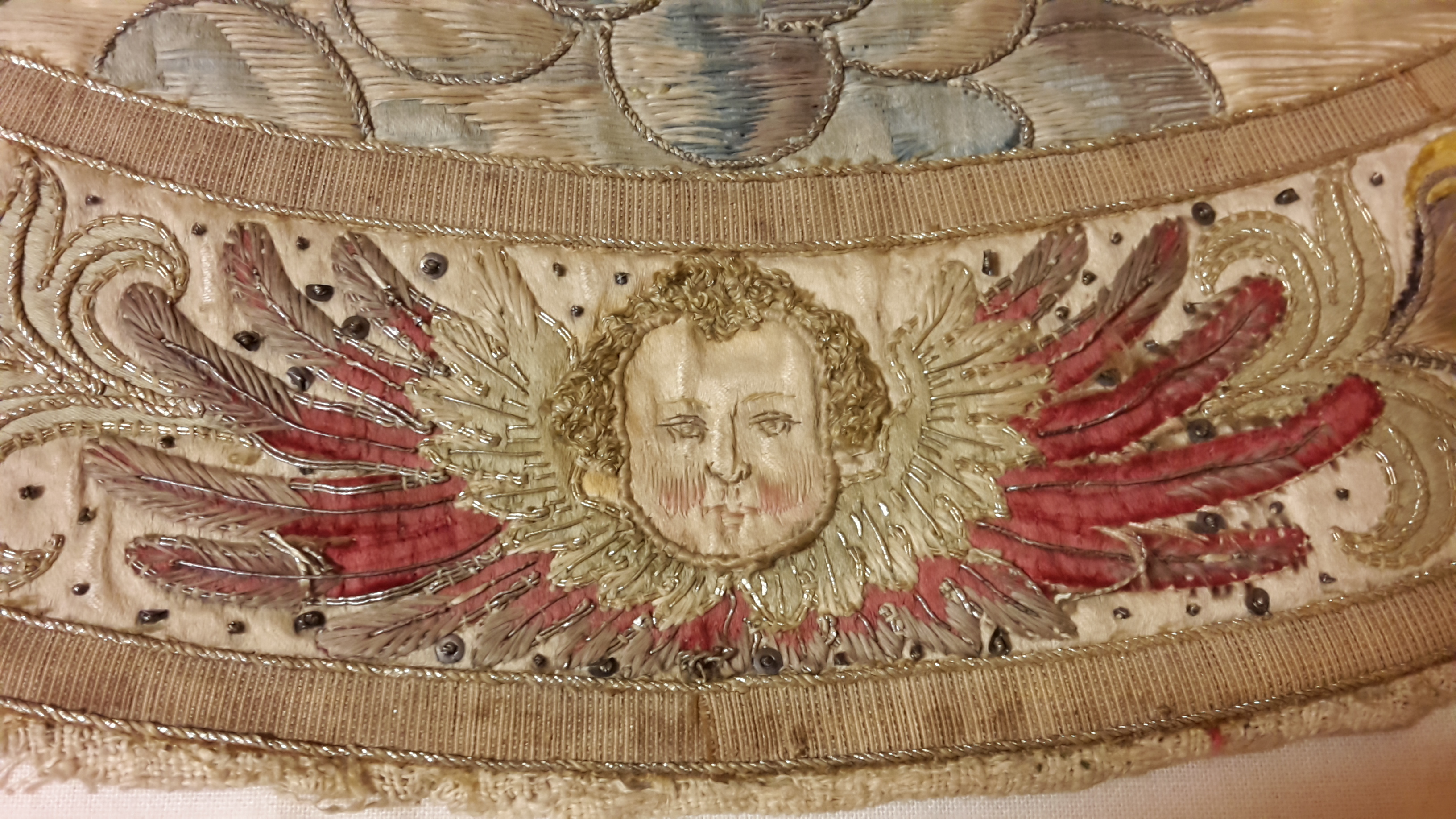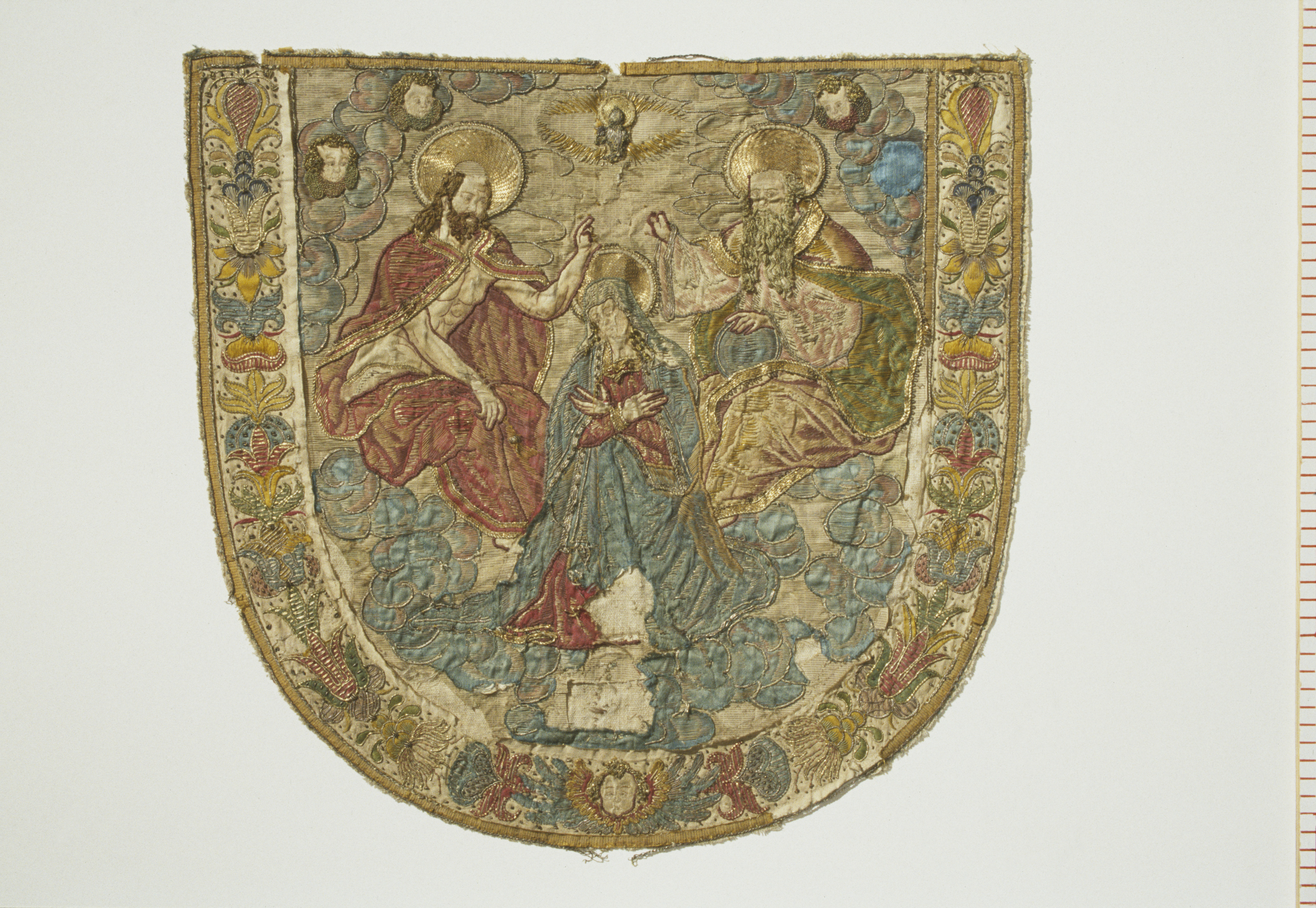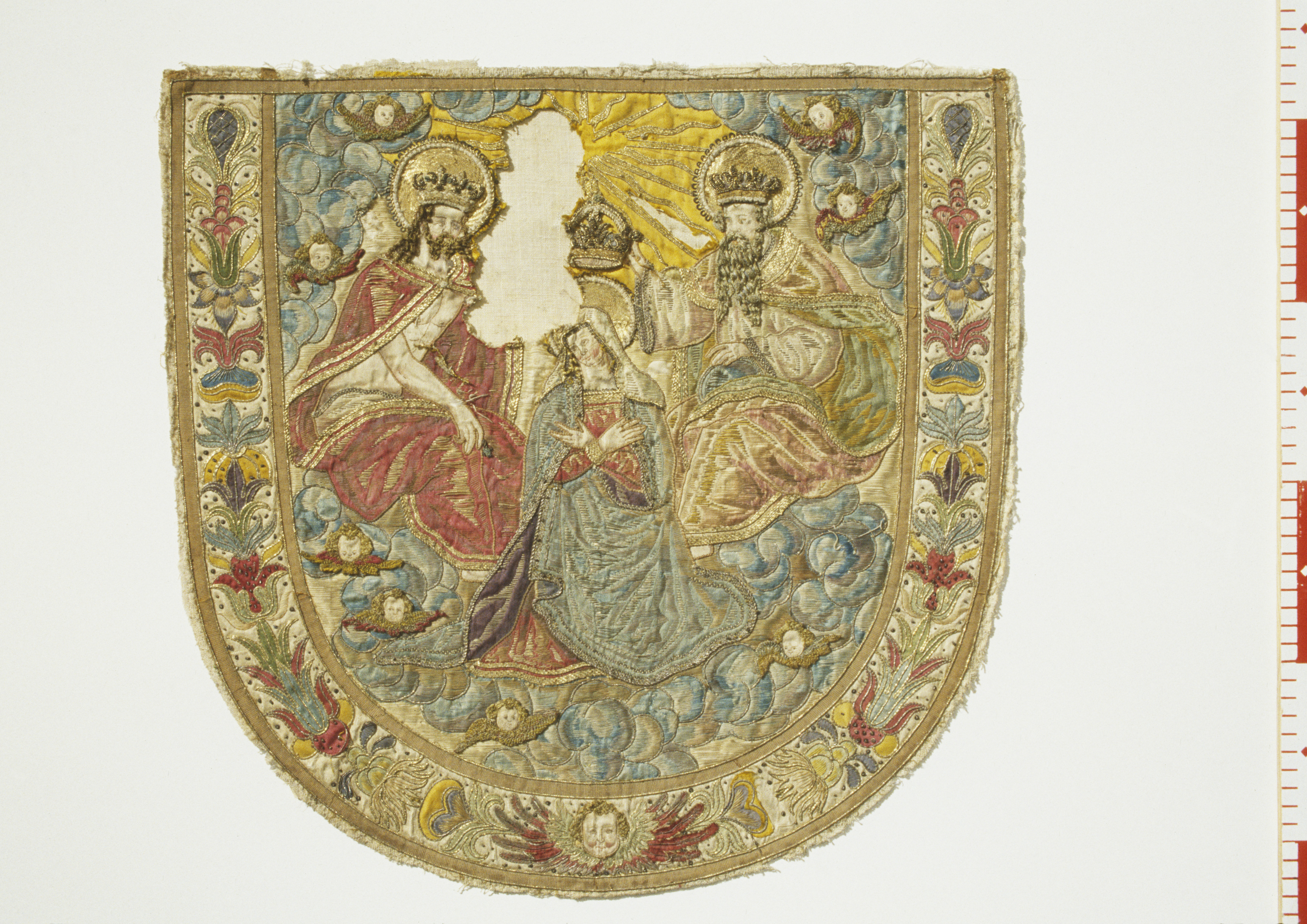 Applikations, guld-, silver- och silkebroderi. Marie kröning. Polen. Gåva 1886.
