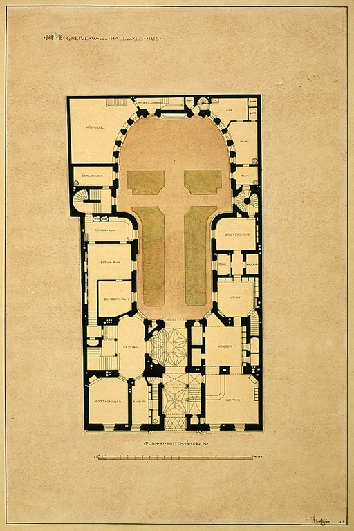 Nr 1. Grefve W von Hallwyls hus. Plan af källarvåningen. Huvudritningar