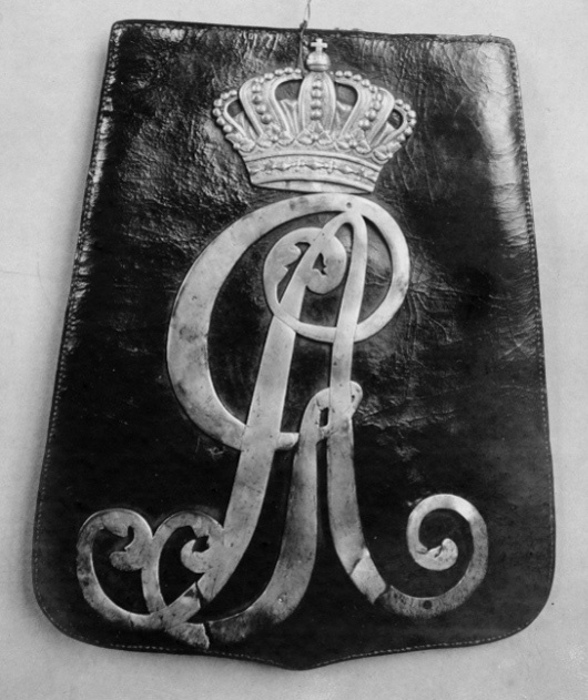 Lock av svärtat läder fodrat med ljusbrunt skinn. Upptill på insidan med bläck i skrivstil: "Frants" samt rester av röd lack. På utsidan GA i försilvrad mässing under sluten krona (Gustav IV Adolfs monogram).