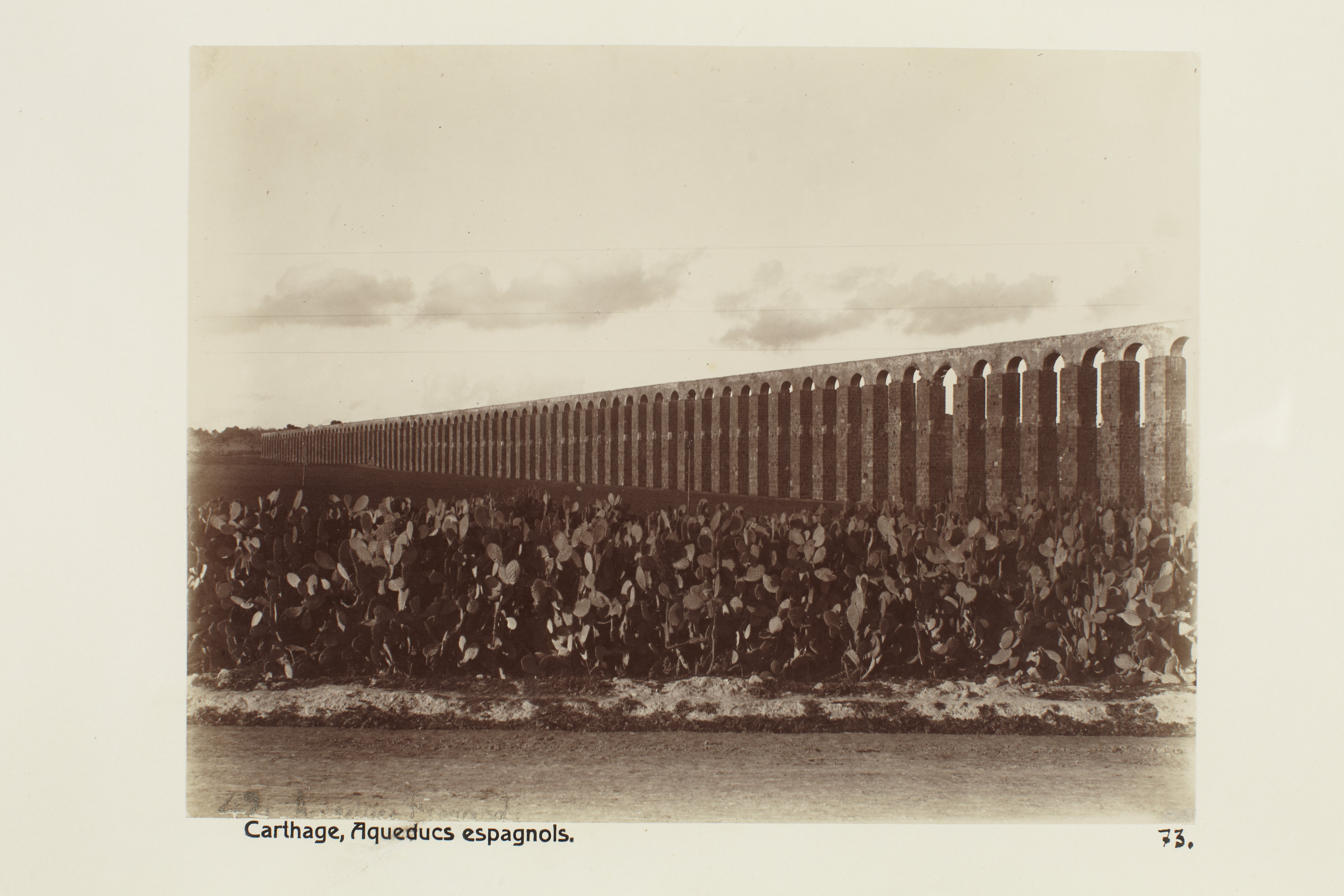 KARTHAGO, Tunisien. Spanska akvedukter. Foto från resa genom Algeriet och Tunisien samt åter över Schweiz, 11 februari - 19 maj 1889. Samtliga foton i gruppen LXVI:F. är inköpta av Wilhelmina von Hallwyl i Alger, Biskra, Tunis, Constantine, Oran och Blidah vid hennes vistelse i nämnda städer tillsammans med sin make, Walther von Hallwyl, sin mor, Johanna Kempe, f. Wallis, dottern Irma samt fröknarna Caroline Pflaum och Ida Uhse. Uppgifterna kommer från fröken Ida Uhses reseanteckningar.