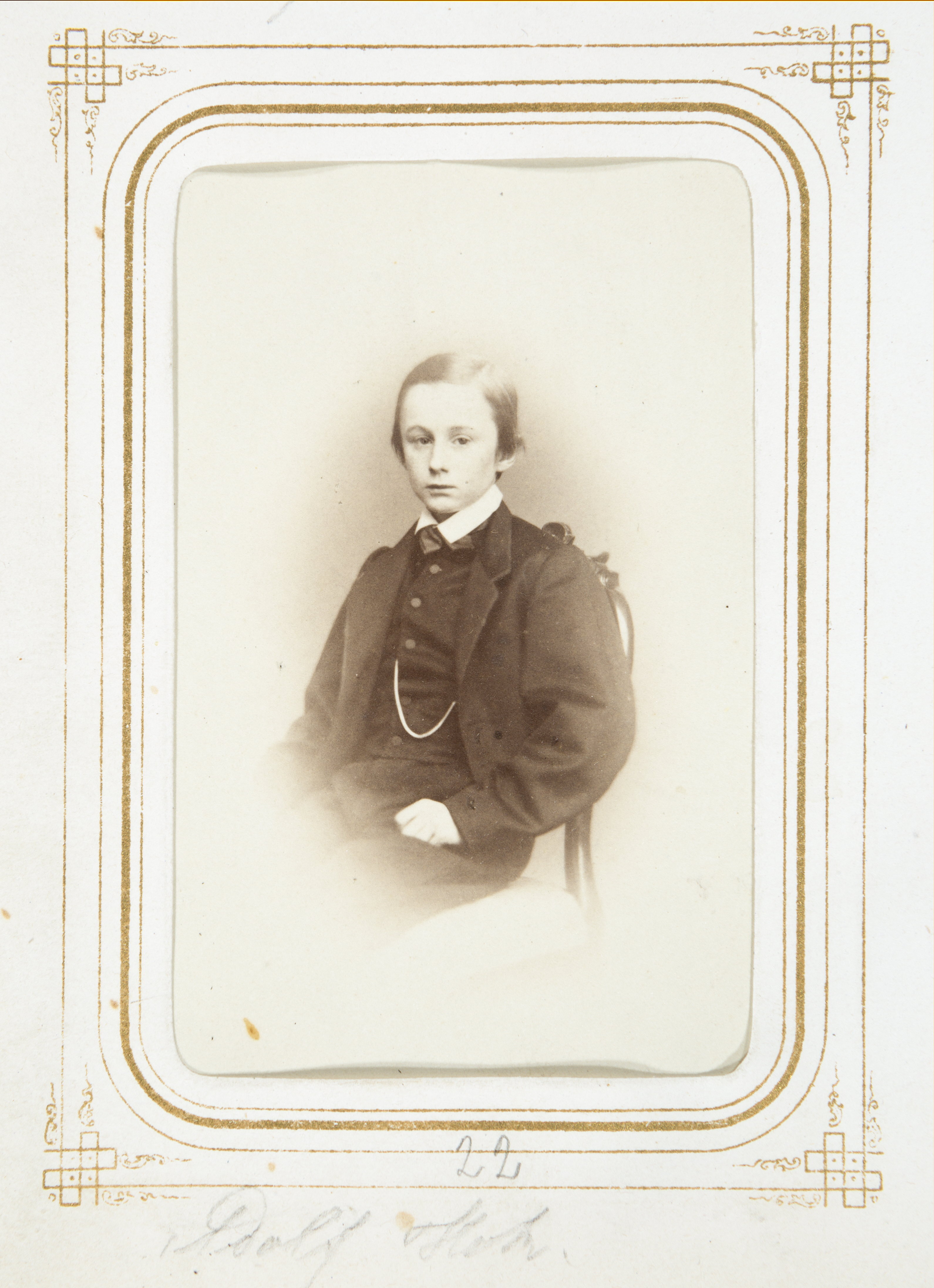 Fotografiporträtt i album. Adolf Hök.
