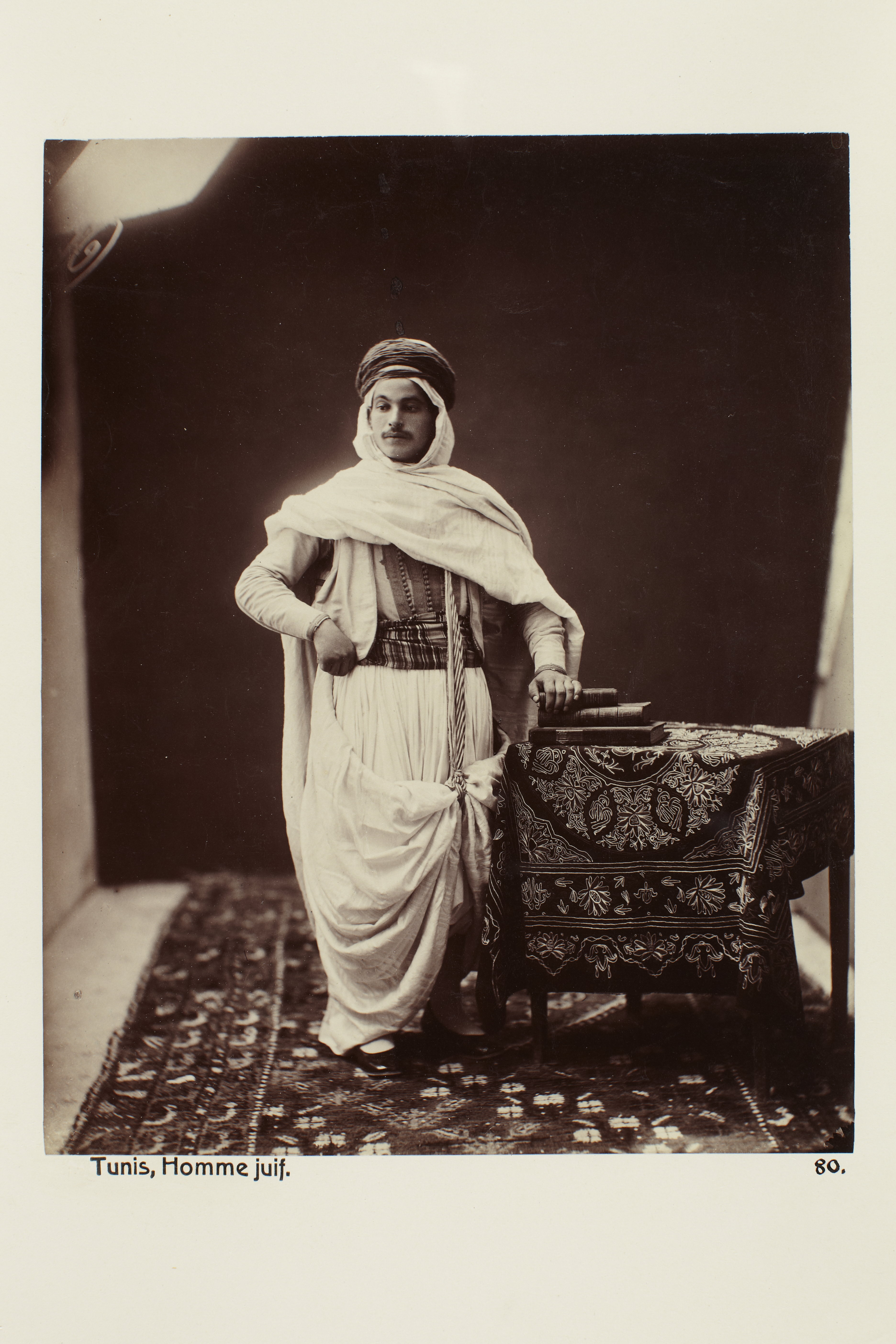 TUNIS, Tunisien. Judisk man. Foto från resa genom Algeriet och Tunisien samt åter över Schweiz, 11 februari - 19 maj 1889. Samtliga foton i gruppen LXVI:F. är inköpta av Wilhelmina von Hallwyl i Alger, Biskra, Tunis, Constantine, Oran och Blidah vid hennes vistelse i nämnda städer tillsammans med sin make, Walther von Hallwyl, sin mor, Johanna Kempe, f. Wallis, dottern Irma samt fröknarna Caroline Pflaum och Ida Uhse. Uppgifterna kommer från fröken Ida Uhses reseanteckningar.