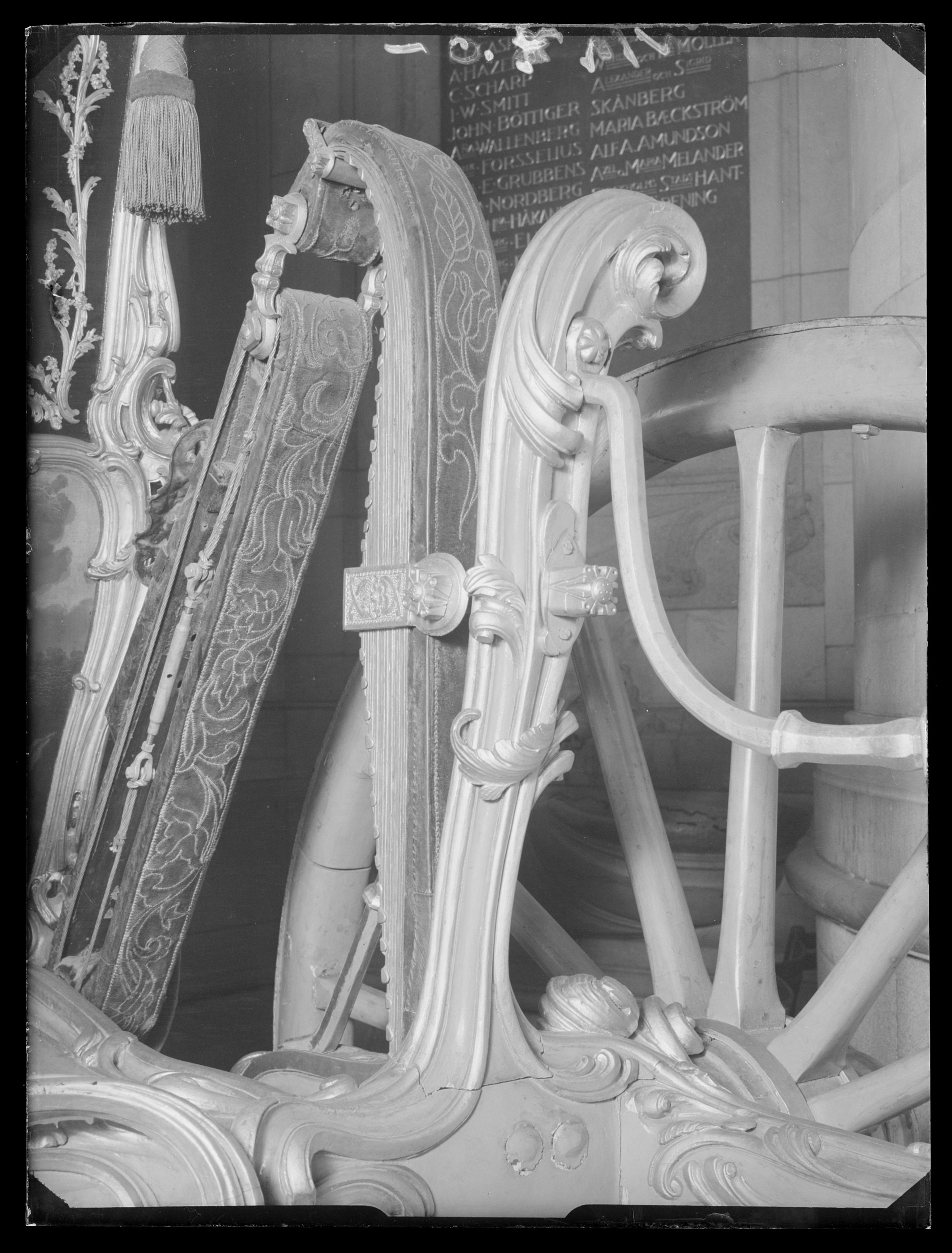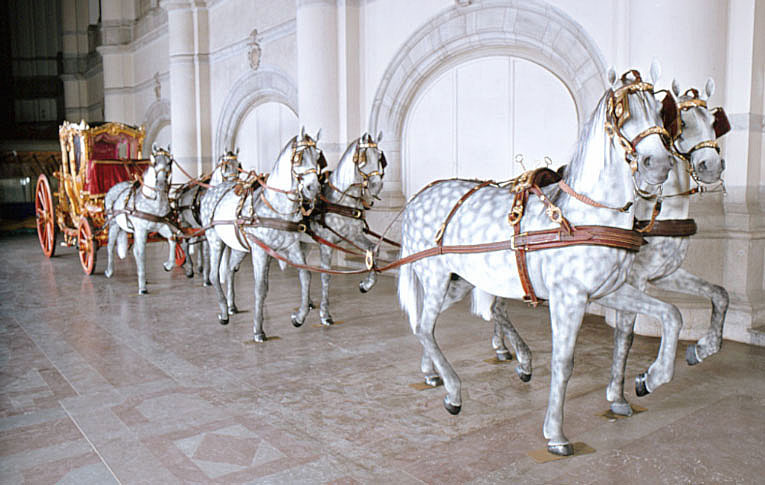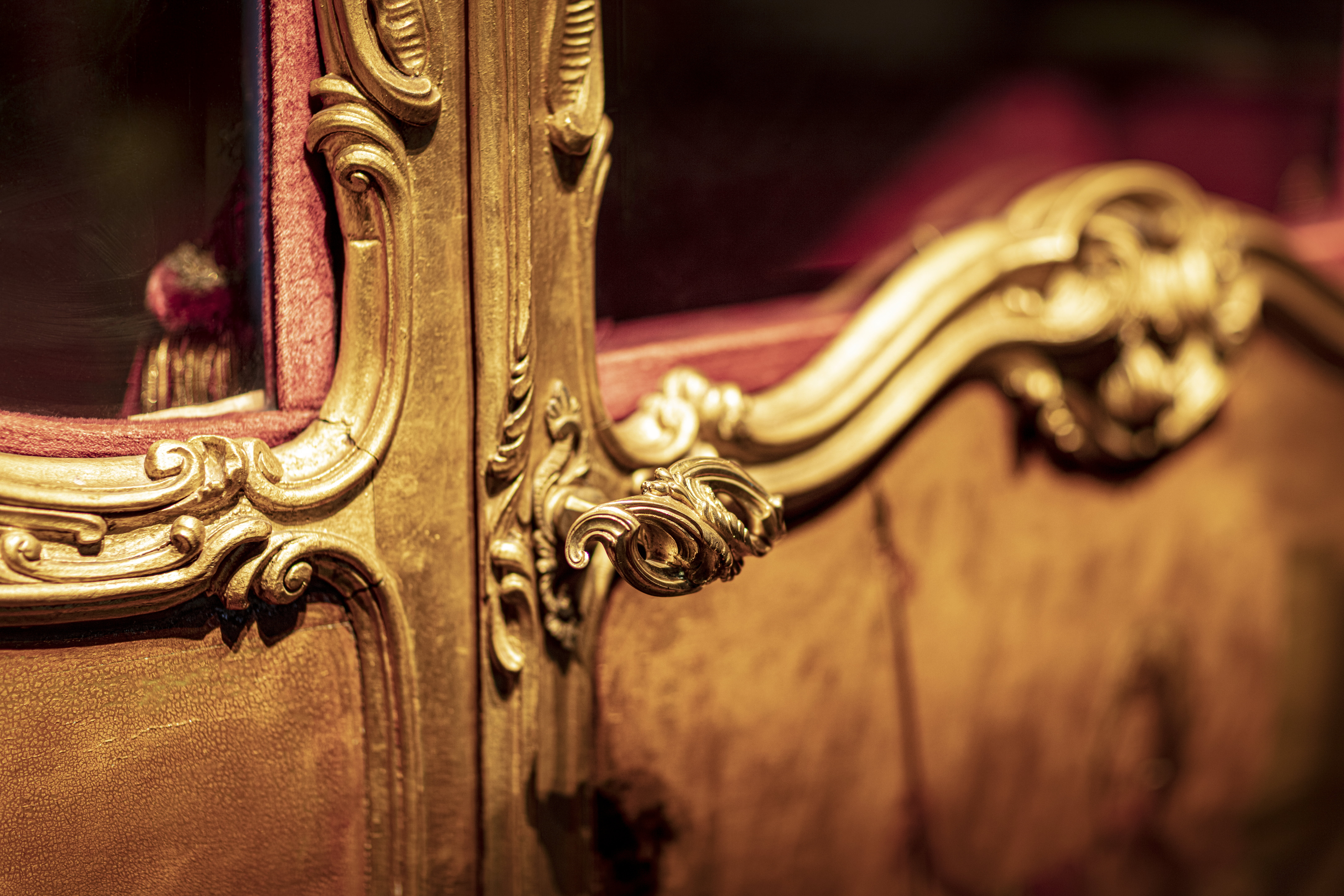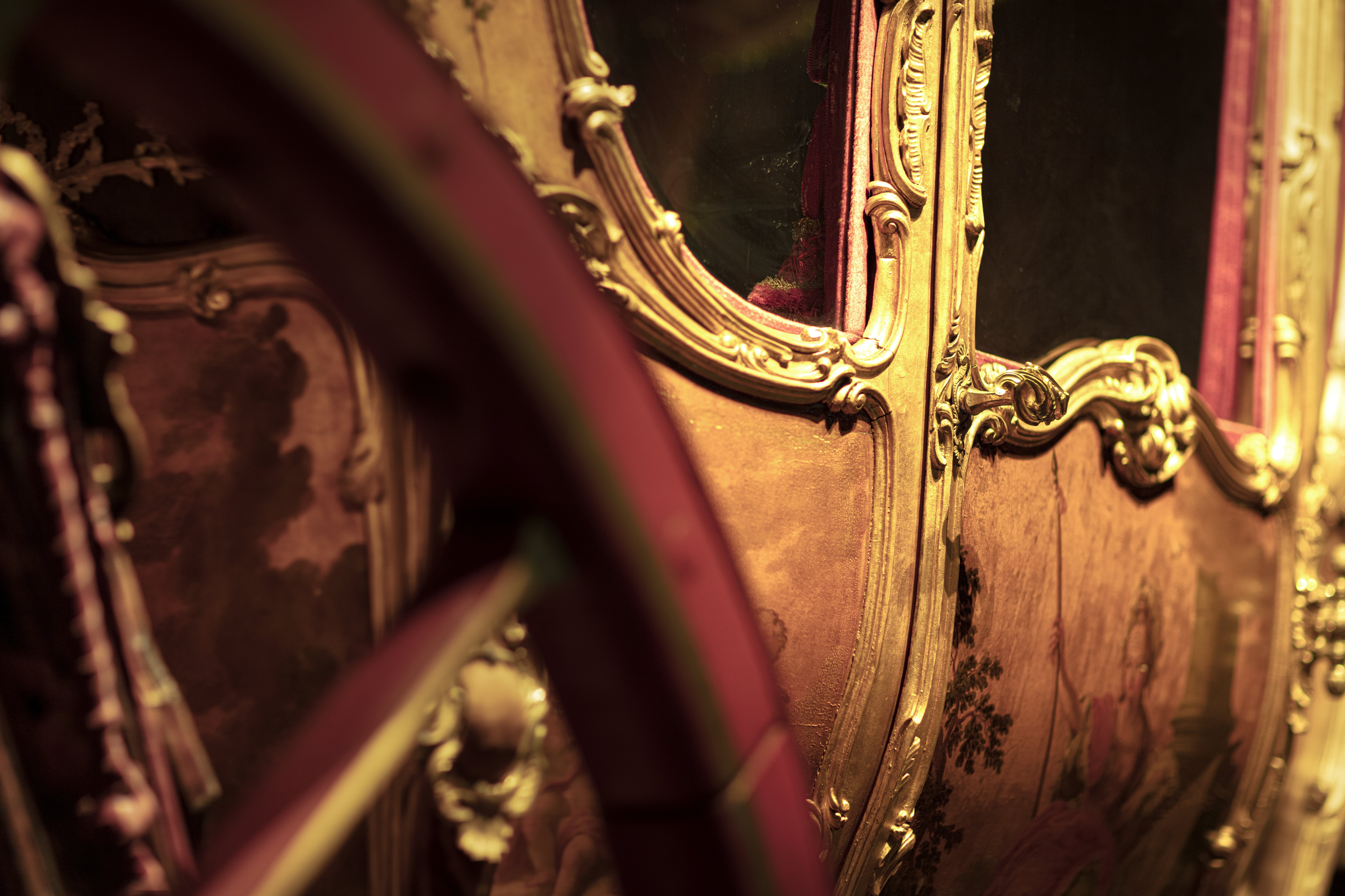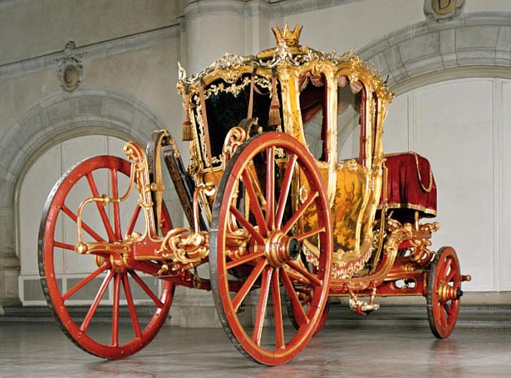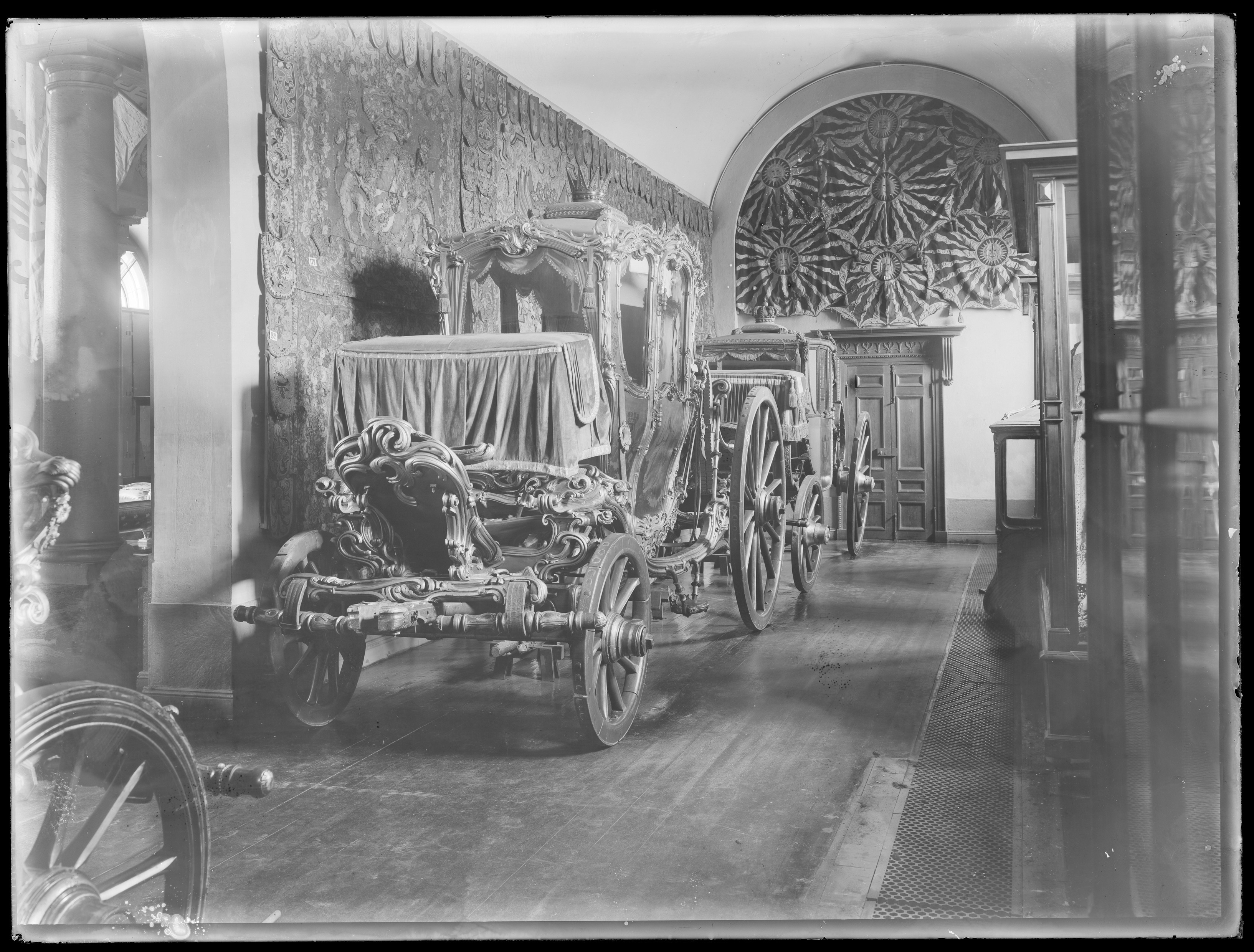 Hornska vagnen, 7-glas statsvagn, berlinare, förgylld, skulpterad och rnålad i rokoko.