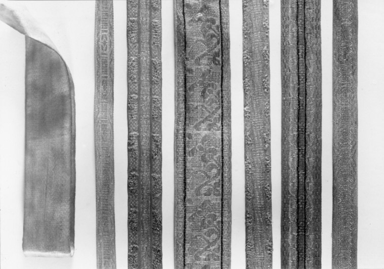 En Bukjord, af Citronfärgat hvitt och svart Silke, bestående i 3 stycken, Söljorne därvid af Jern.