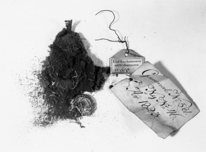 Böglorne, som varit af rent massivt Silfver äro efter framledne Hans Excellence RIksRådet och Öfwerste Marschalkens Högwälborne Herre Grefwe Magnus Julii De la Gardie Ordres, som ses fol. 655 utlefvererade till KlädKammare-Förvalten Svahn emot dess Qvittence samma Folio.