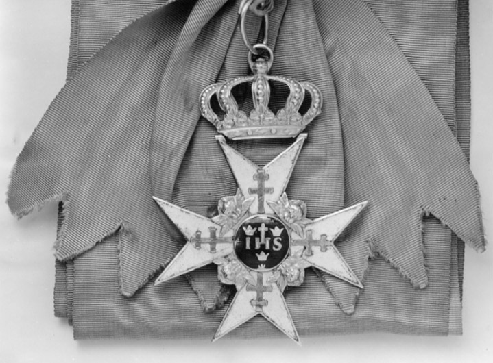 Ordensband för riddare och kommendör av Serafimerorden, Sverige.