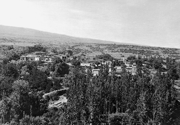 Vy över byn Banias. Text på originalet: "Vue générale du village the Banias./General view of the village of Banias." Fotografierna LXVI:N.01.-180. kommer från resan till Palestina och Syrien som Wilhelmina och Walther von Hallwyl gjorde den 30 mars-27 april 1901. De lämnade Sverige den 5 november 1900 för Egypten, där de stannade till den 28 mars 1901, då de fortsatte till Palestina. Med på resan var Wilhelminas sällskapsdam, fröken Ida Uhse. Den 27 april fortsatte de till Turkiet och Mindre Asien. De mindre fotografierna (utom de från Samos) LXVI:N.90.-100. är tagna av Wilhelmina själv, under en resa till häst från Jerusalem till Damaskus 8-20 april 1901. Övriga fotografier är inköpta av Wilhelmina i Jerusalem, Damaskus och Beirut. Alla uppgifter kommer från Ida Uhses reseanteckningar.