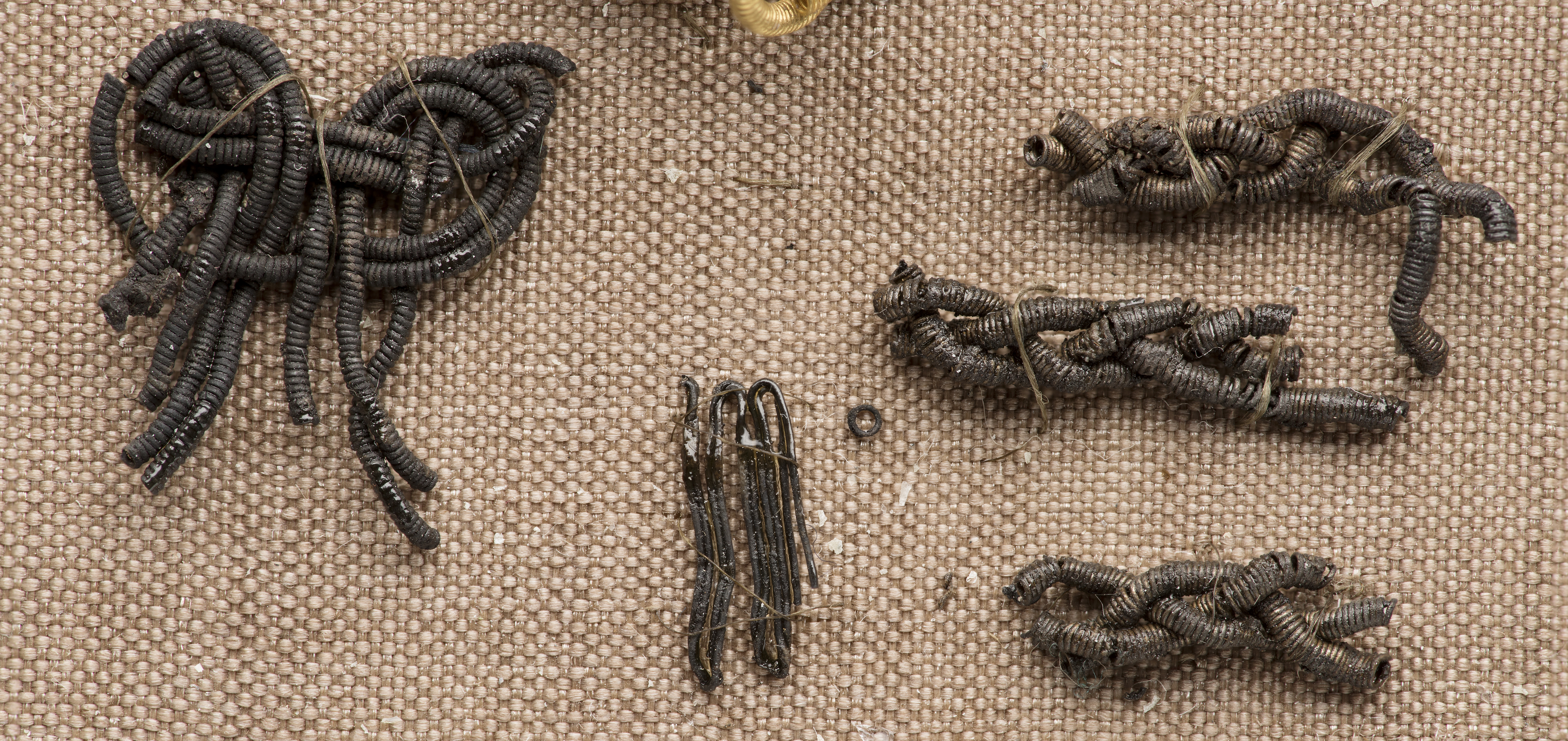 Passementeri av guldspiraler samt rester av silverspiraler. Taf. 28:8-9