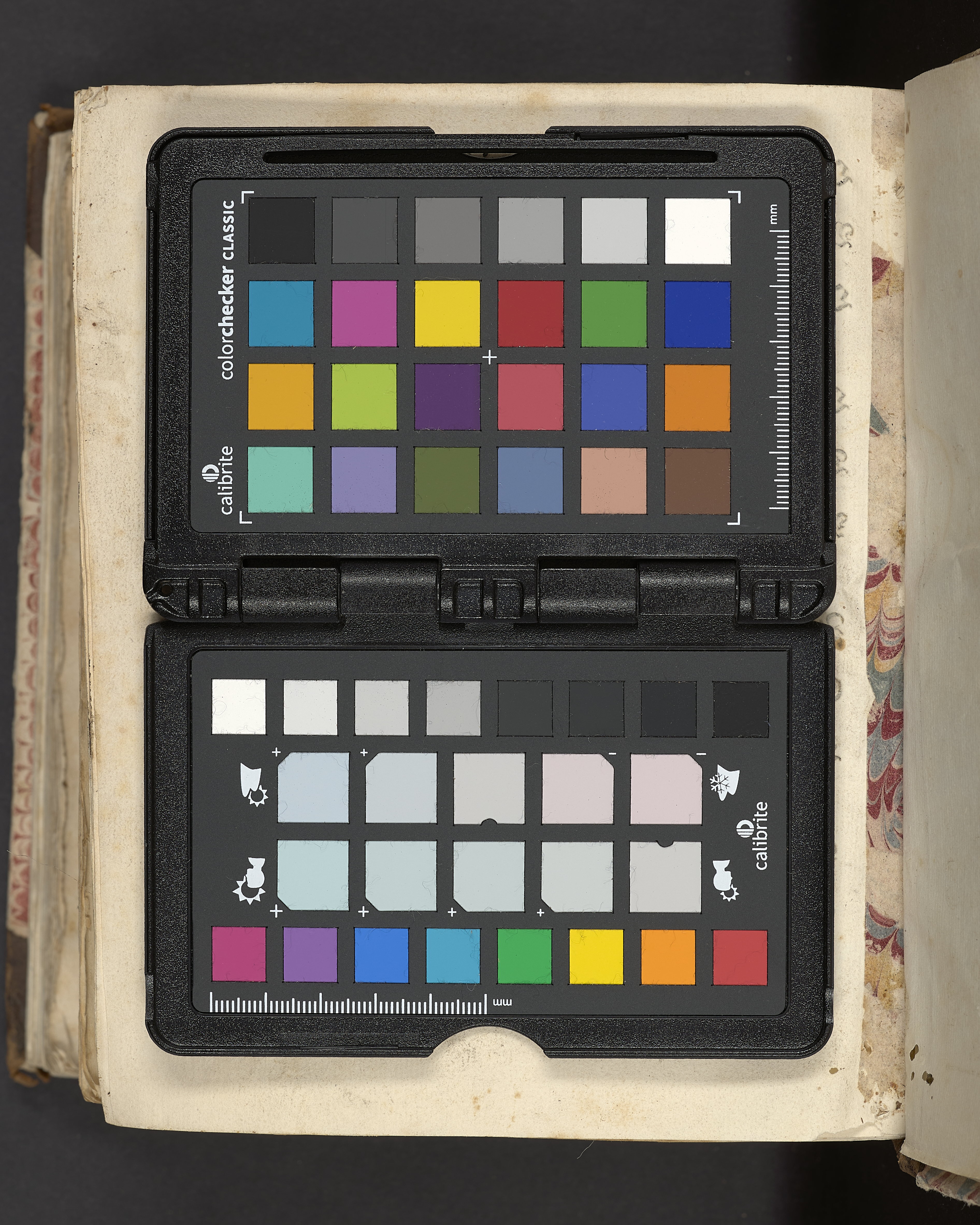 Band m. pärmar av marmorerat papper, rygg och hörn av kalvskinn. Pärmfyllnad: papp. Inlagan består av enskilda skrifter som tillsammans häftats på tre bind, fast rygg. Variationer i papperskvalitet och storlek. 29 skrifter samlade i en volym.