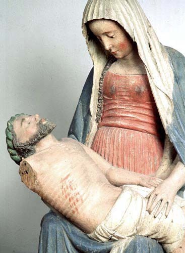 Kondition: god, Kristus högra arm förlorad. Färg: sekundär, sannolikt 1800-tal.
