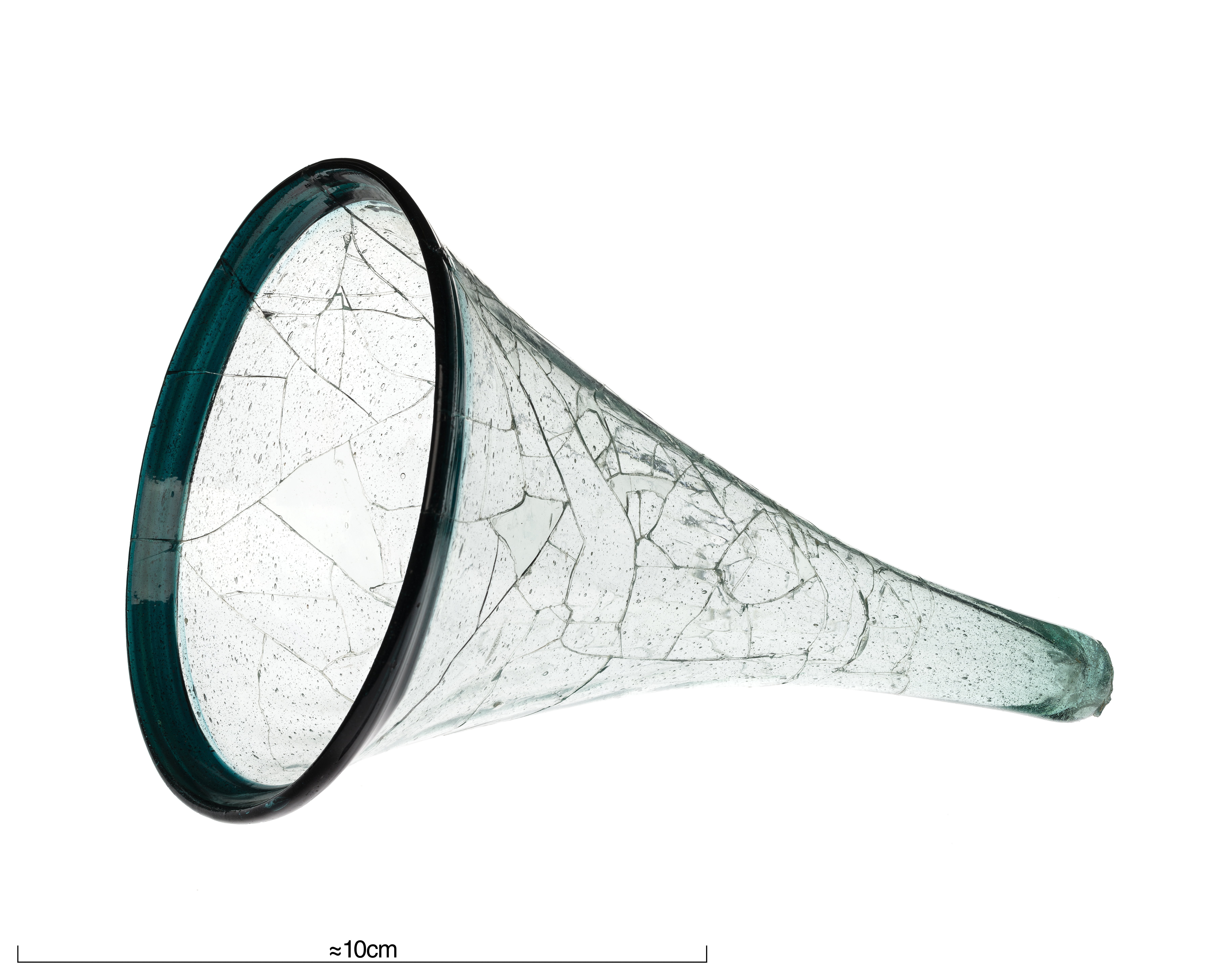 Ljusgrönt glas med mörkgrön mynningsrand.