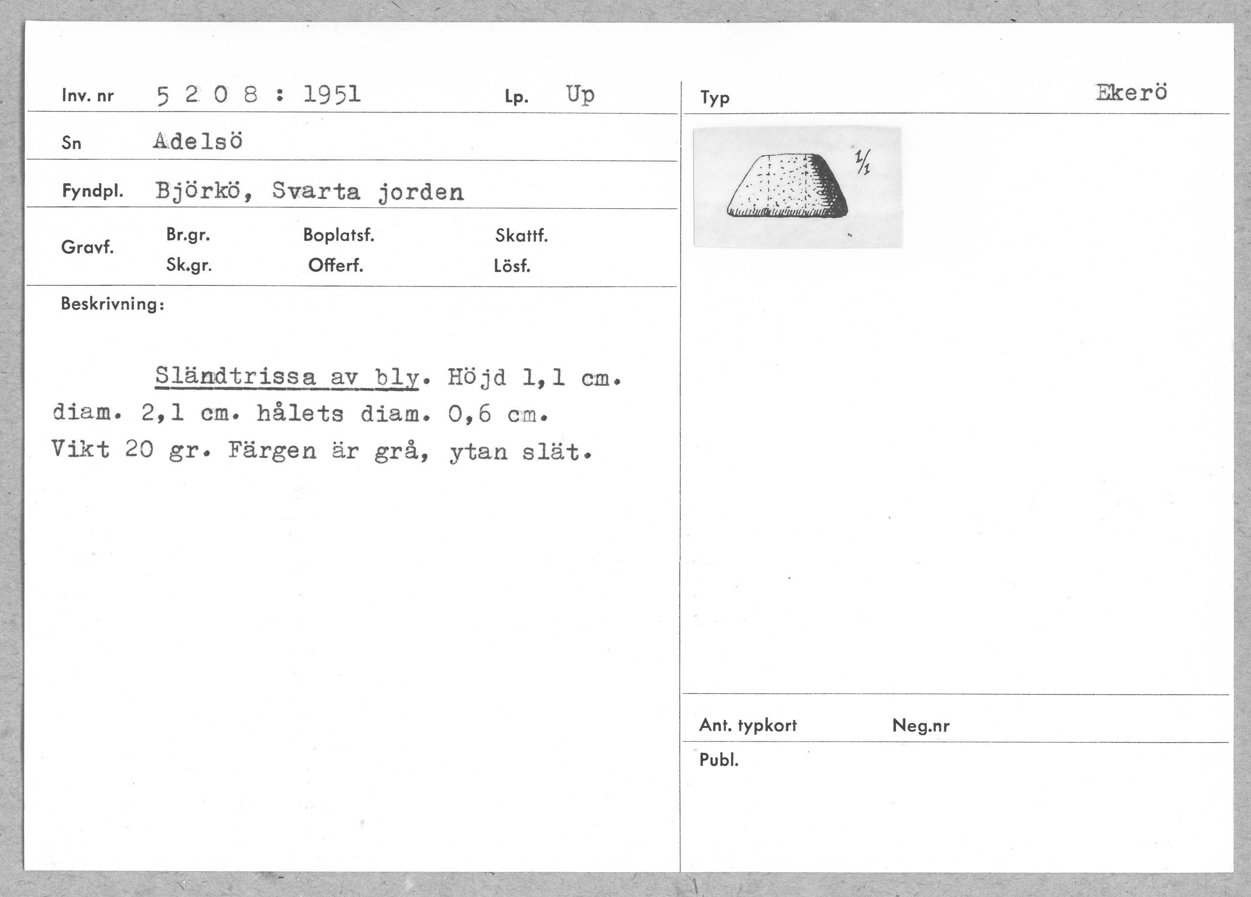 | Föremålsnummer |