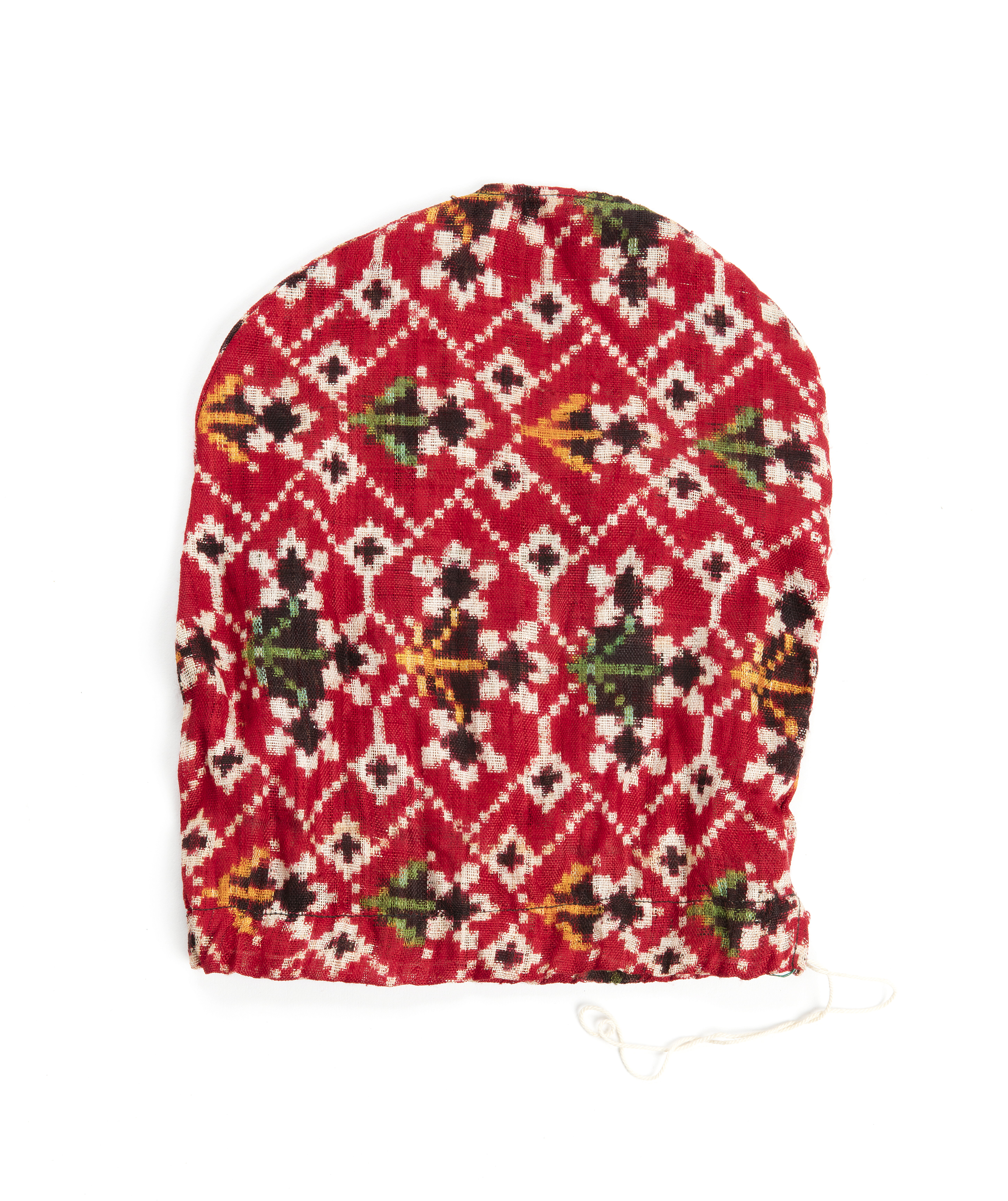 Rundat fodral av rött silke med mönster i genomgående tryck, geometriska figurer i vitt, svart, grönt och gult. Nedtill hål för den smala delen av krisens balja. Fodralet är avsett att omsluta fästet och baljans ganja. Dragsko med tvinnad, vit bomullstråd. Krisen är tillverkad i Djokjakarta på Java 1928 på befallning av Sultanen av Djokjakarta (Djokarta) efter modell från furstendömet Mataram. Gåva till Gustaf V av Sultanen av Djokjakarta 1933.