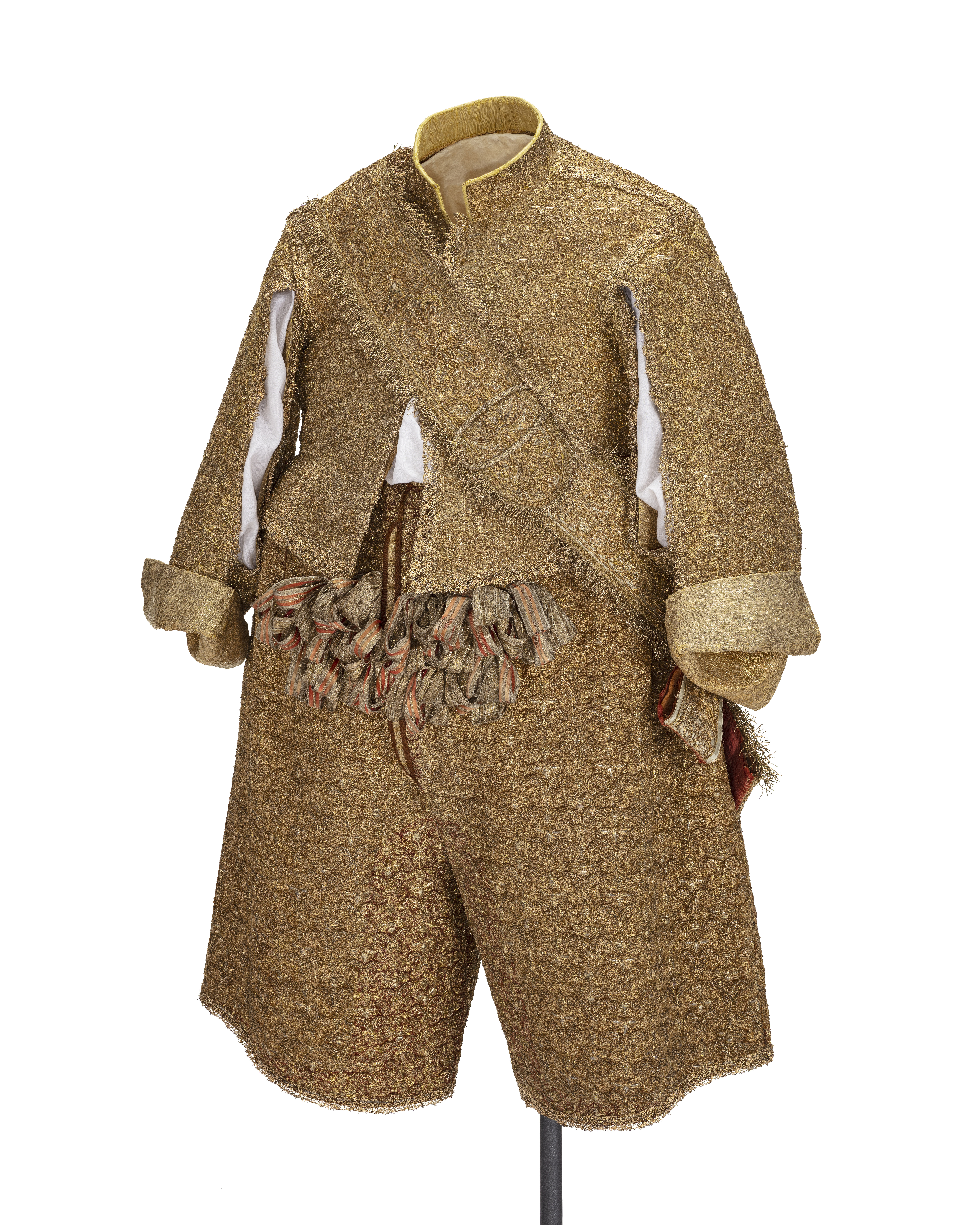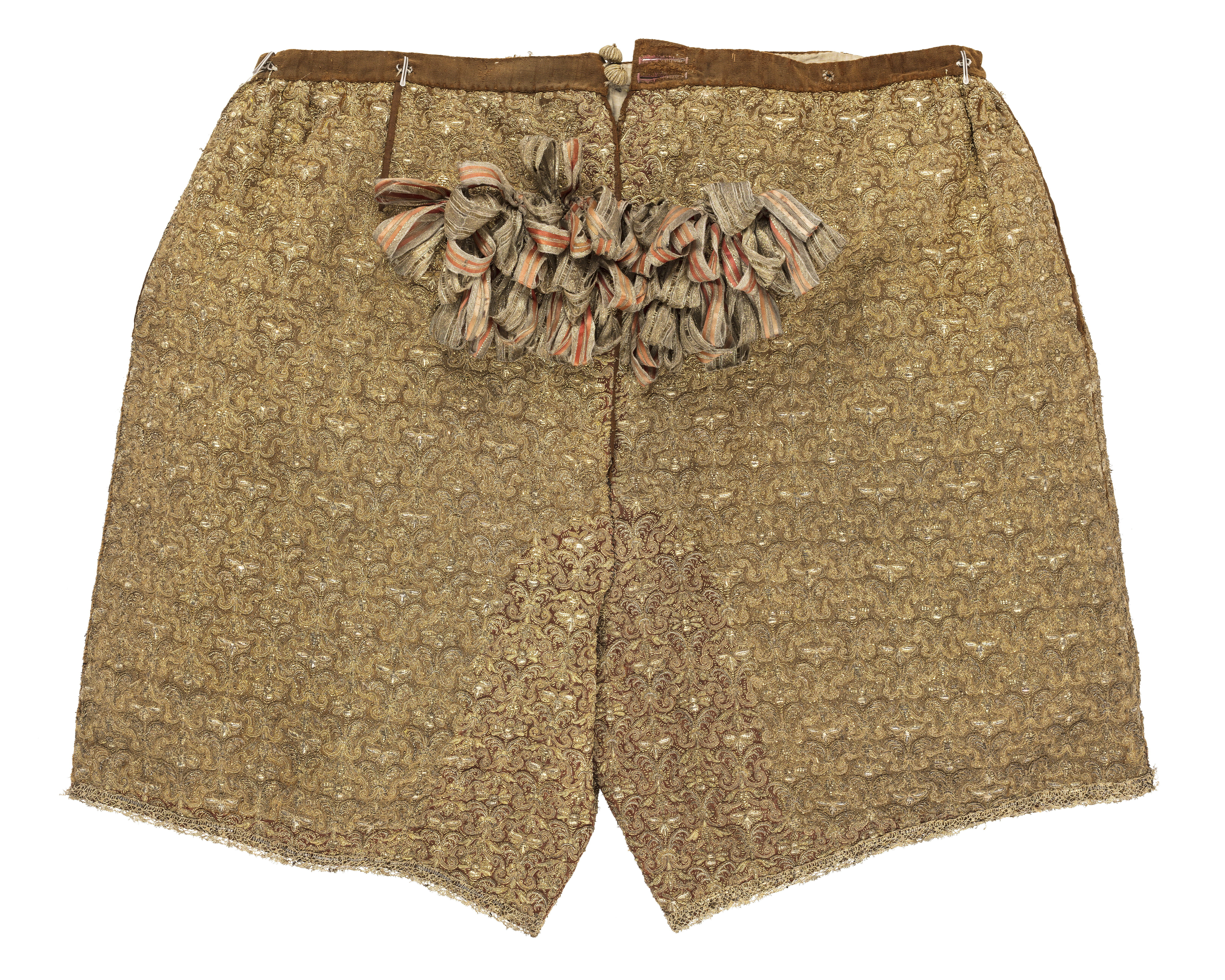 Byxor av guldlamé helt täckt av guldbroderi, burna av Karl X Gustav (1622-1660) i samband med kröningen.