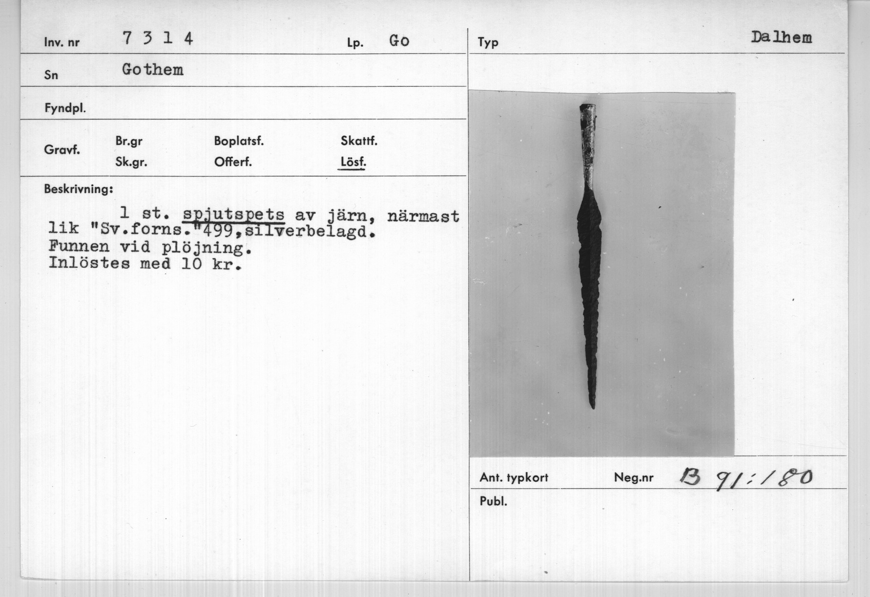 | Föremålsnummer |