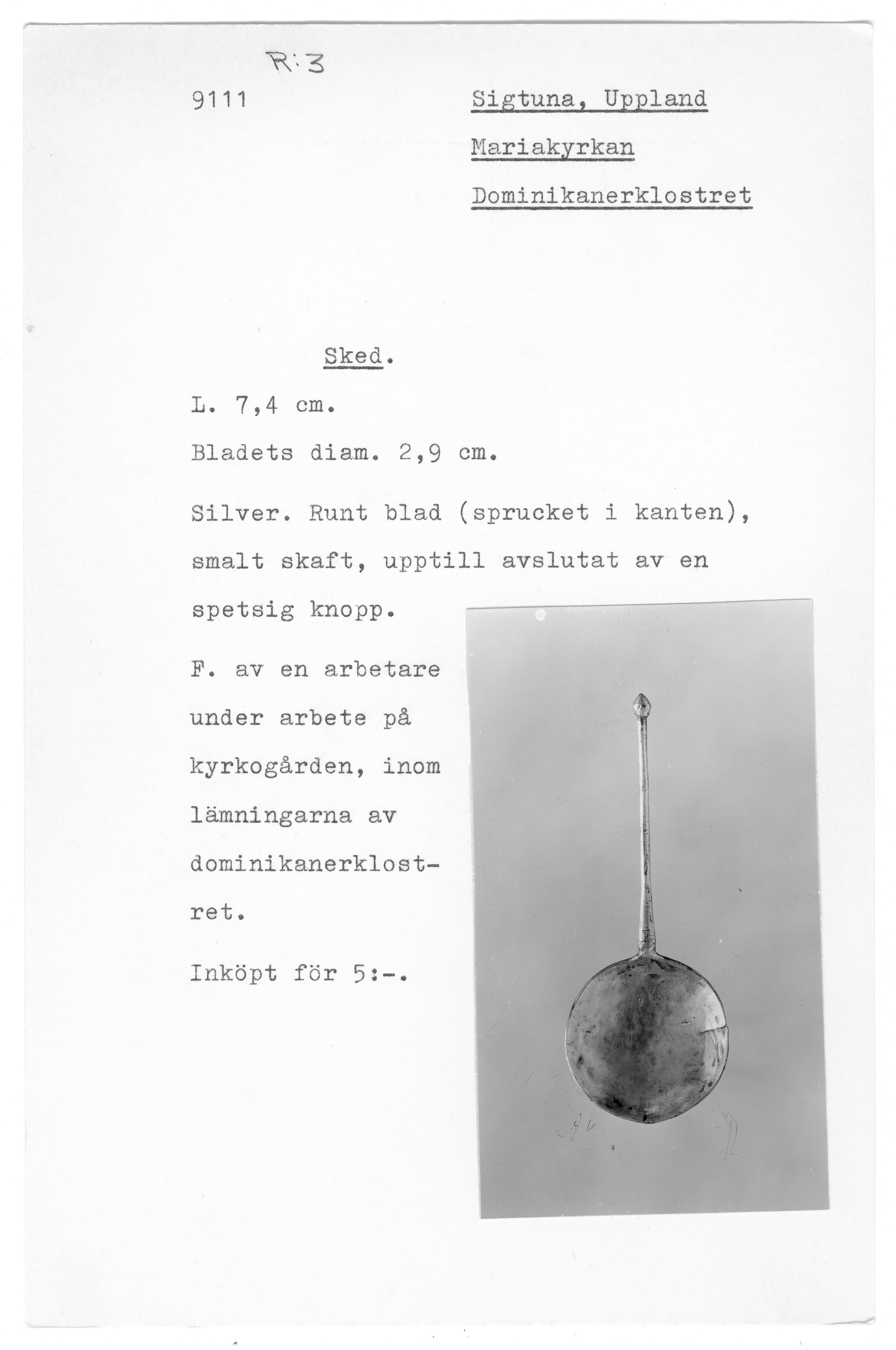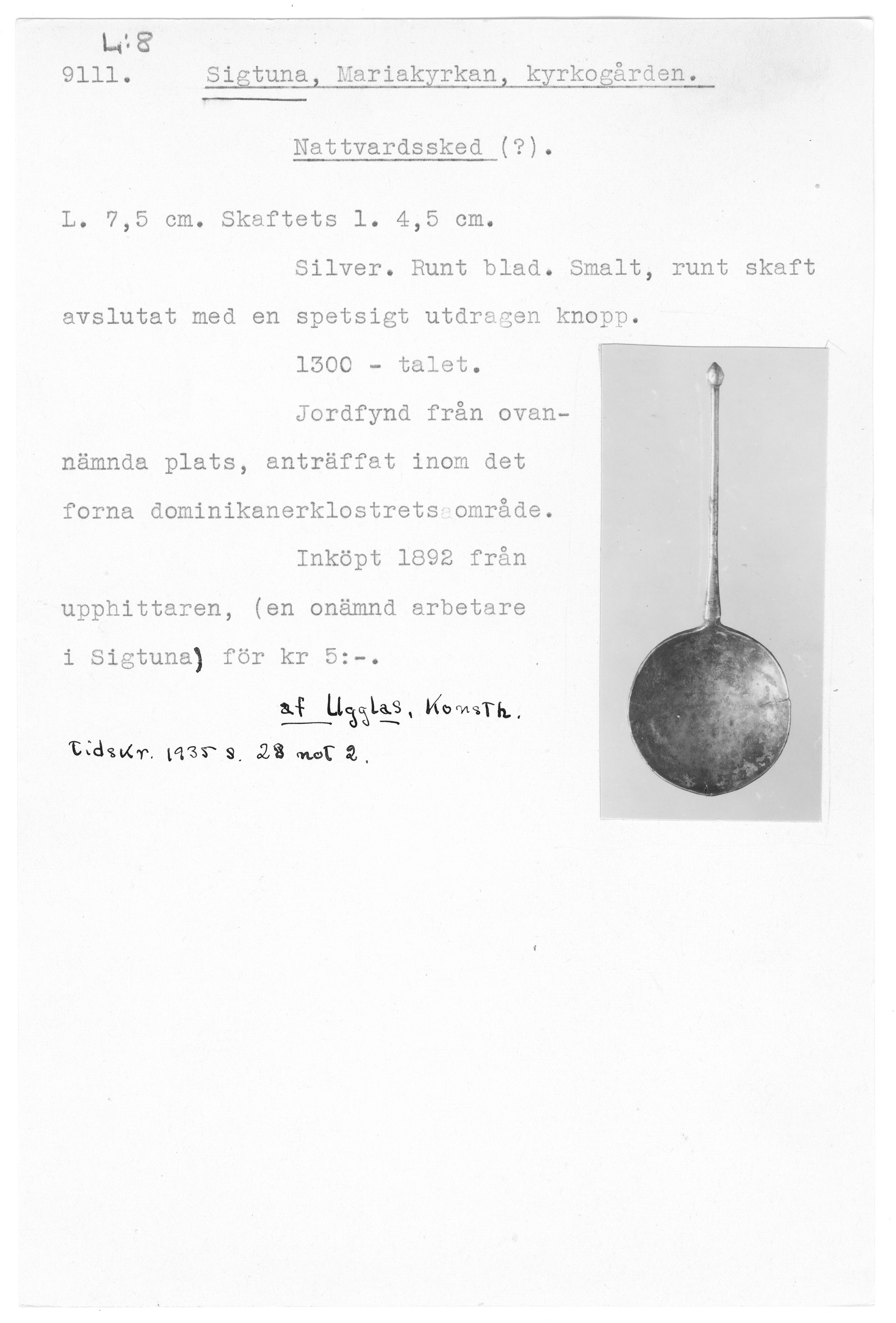 | Föremålsnummer |