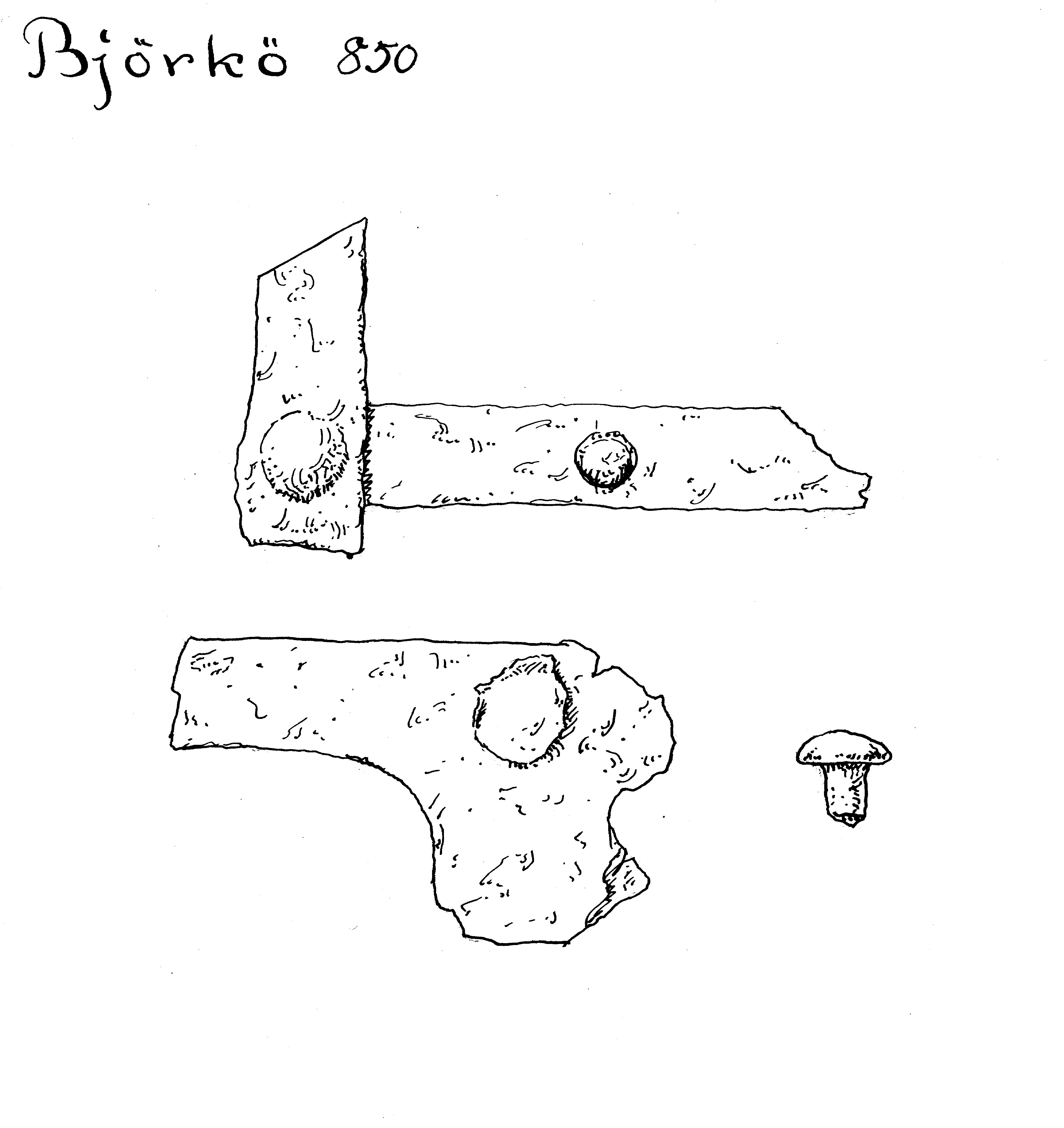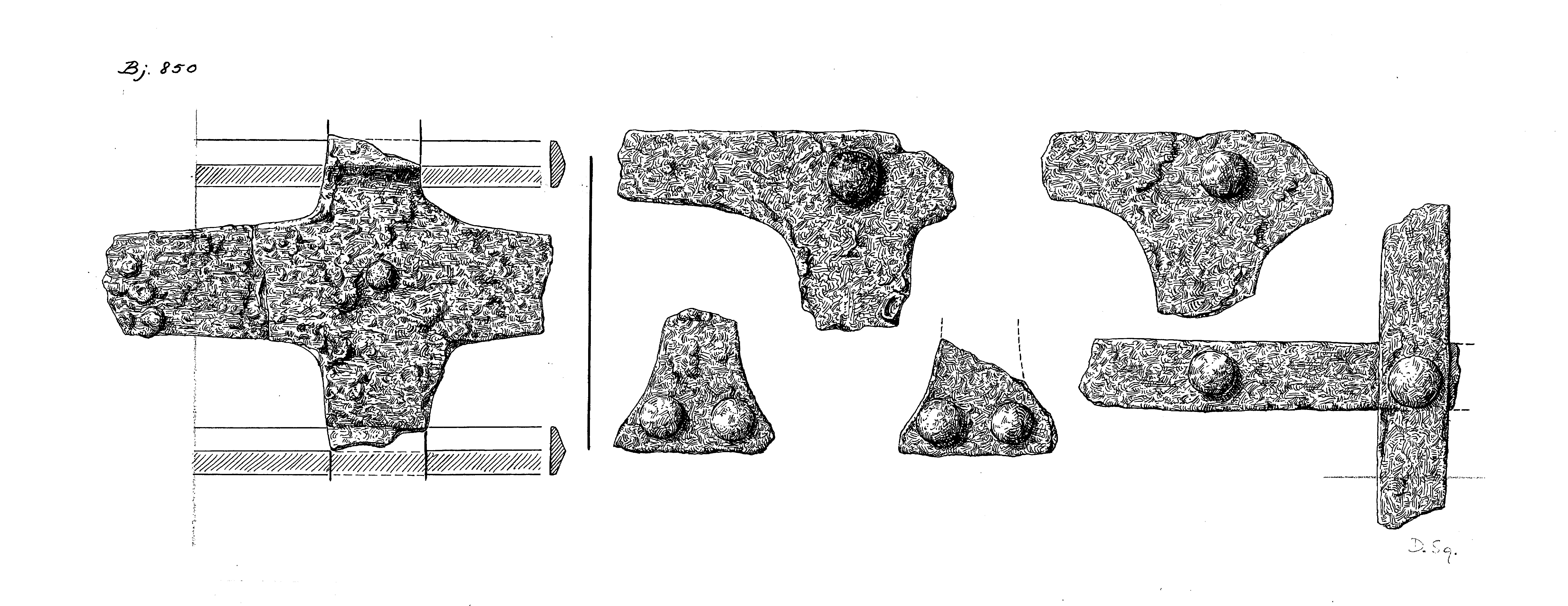 Ett 50-tal järnbeslag från skrinet i Bj 850.