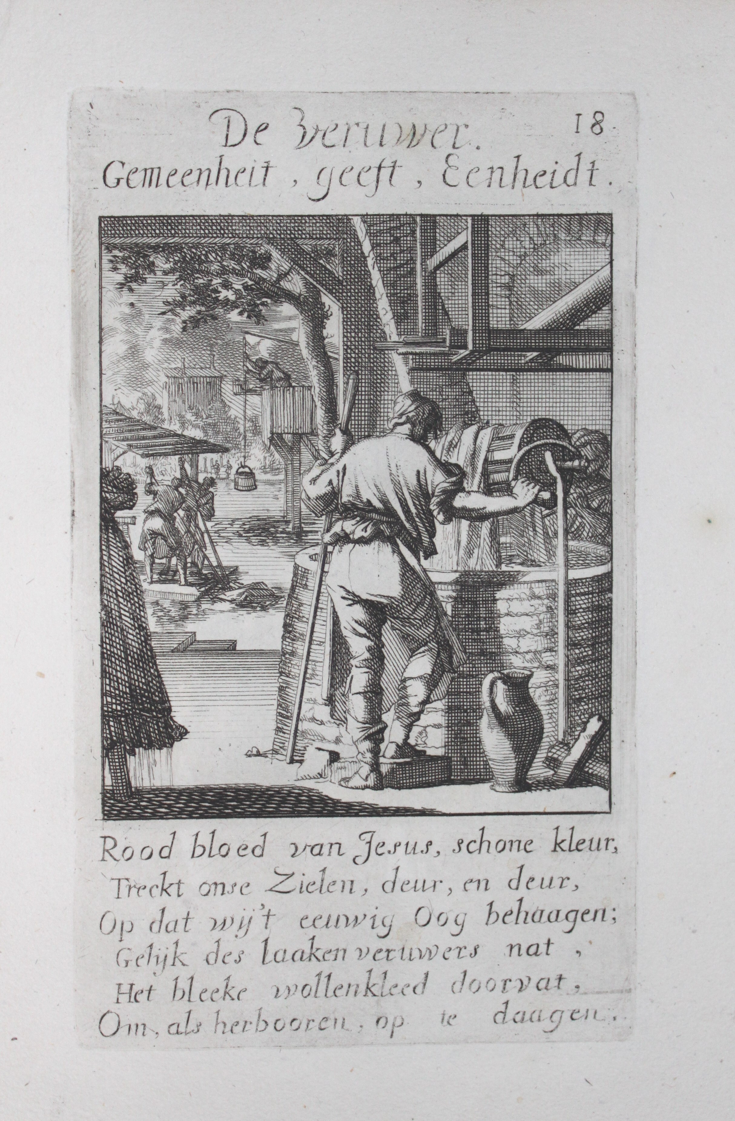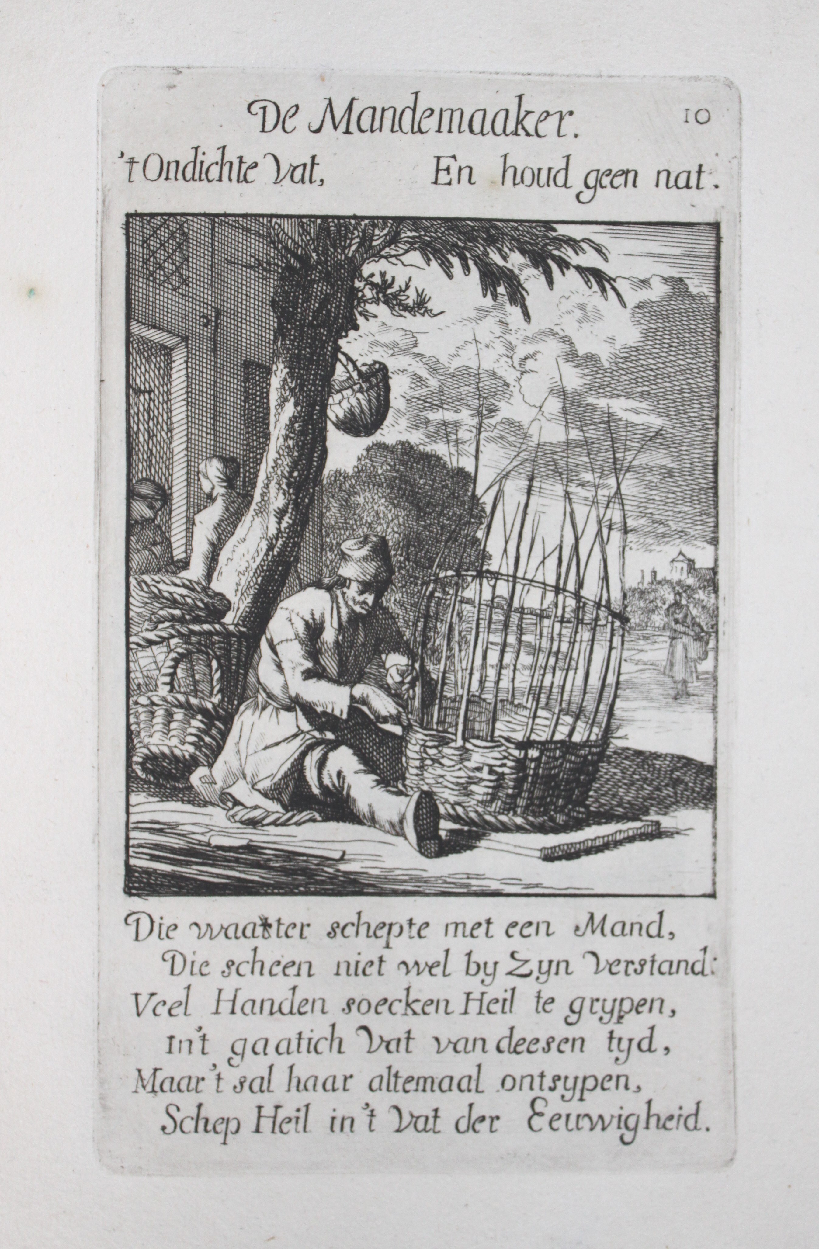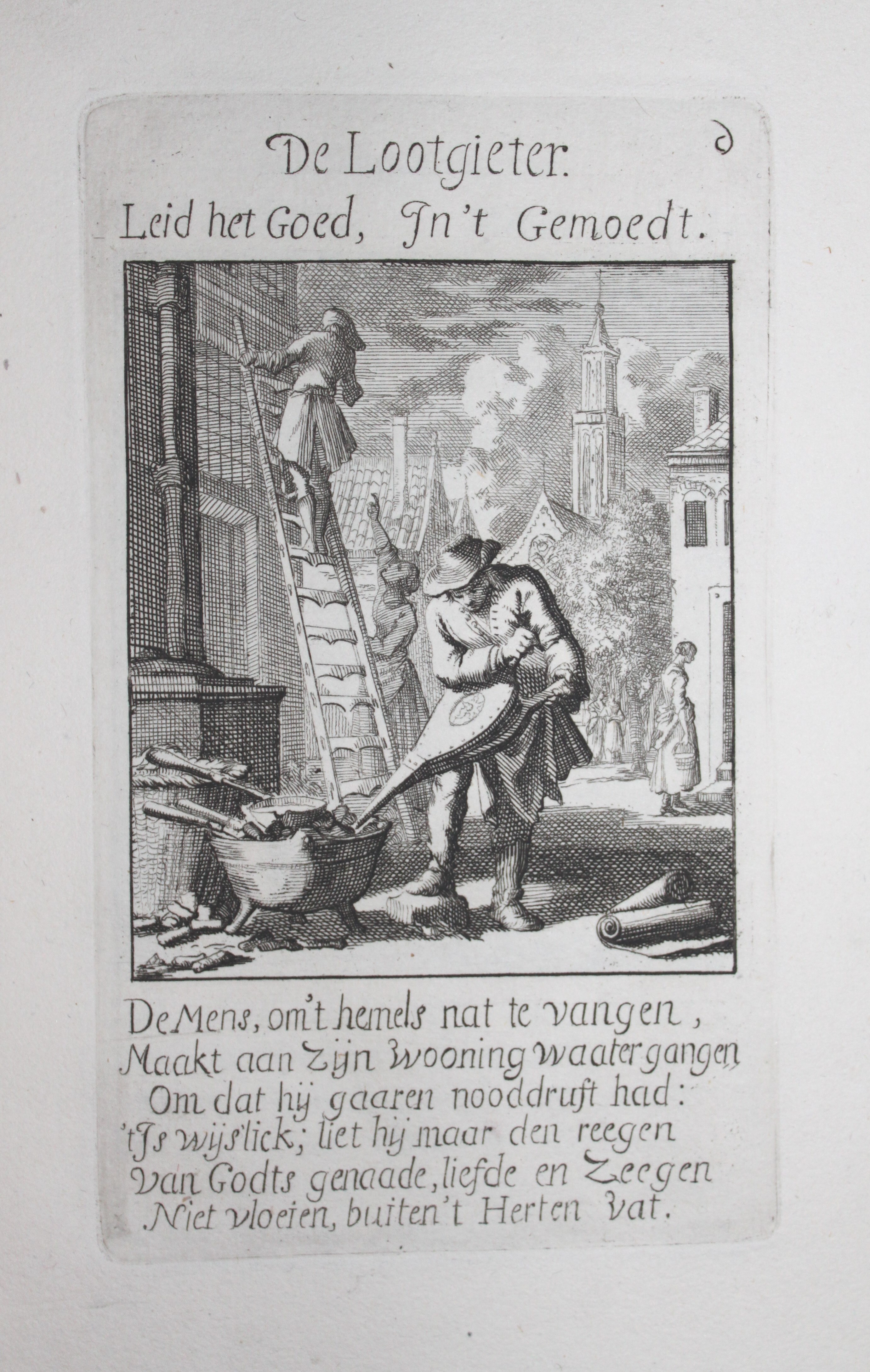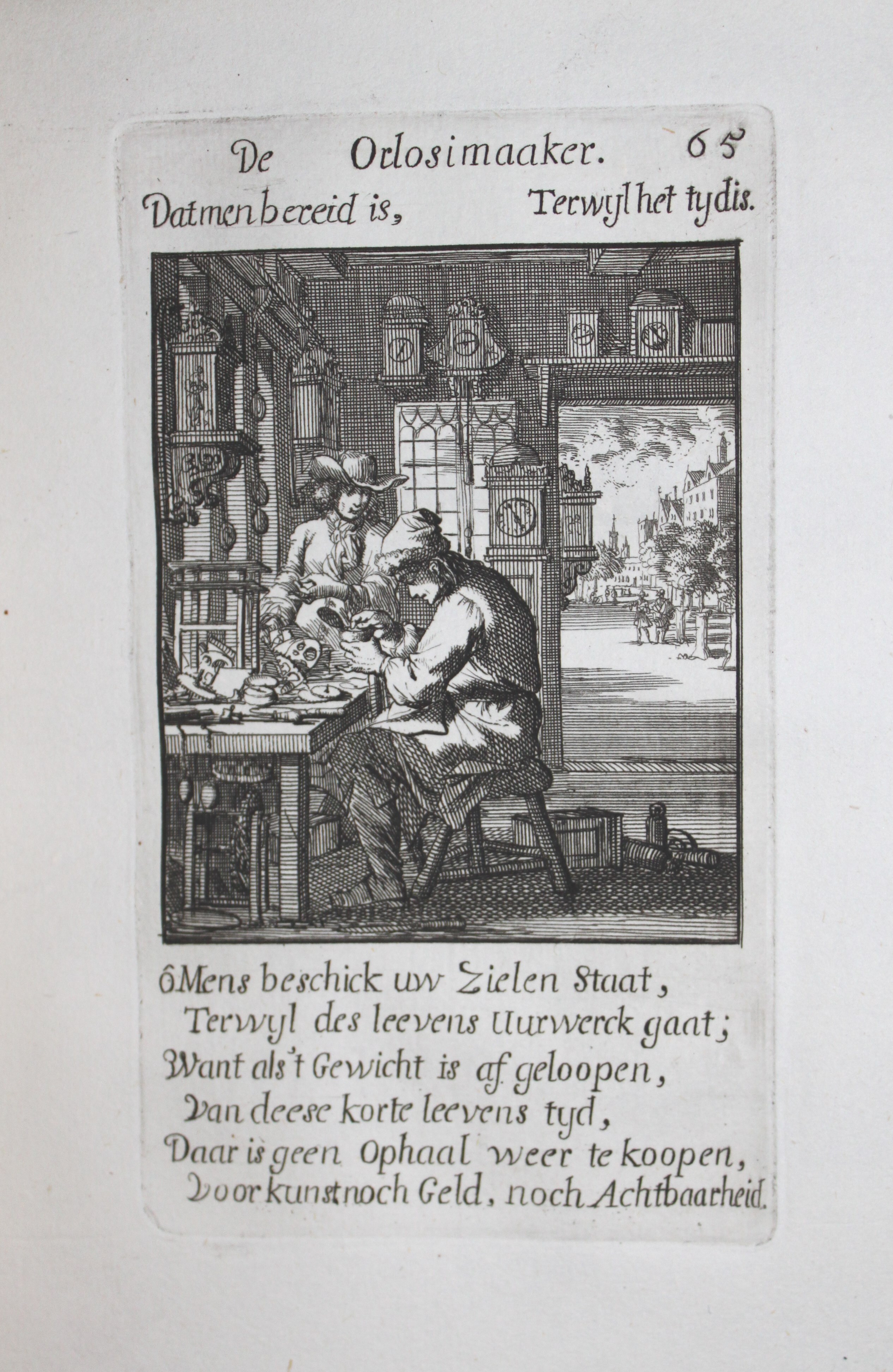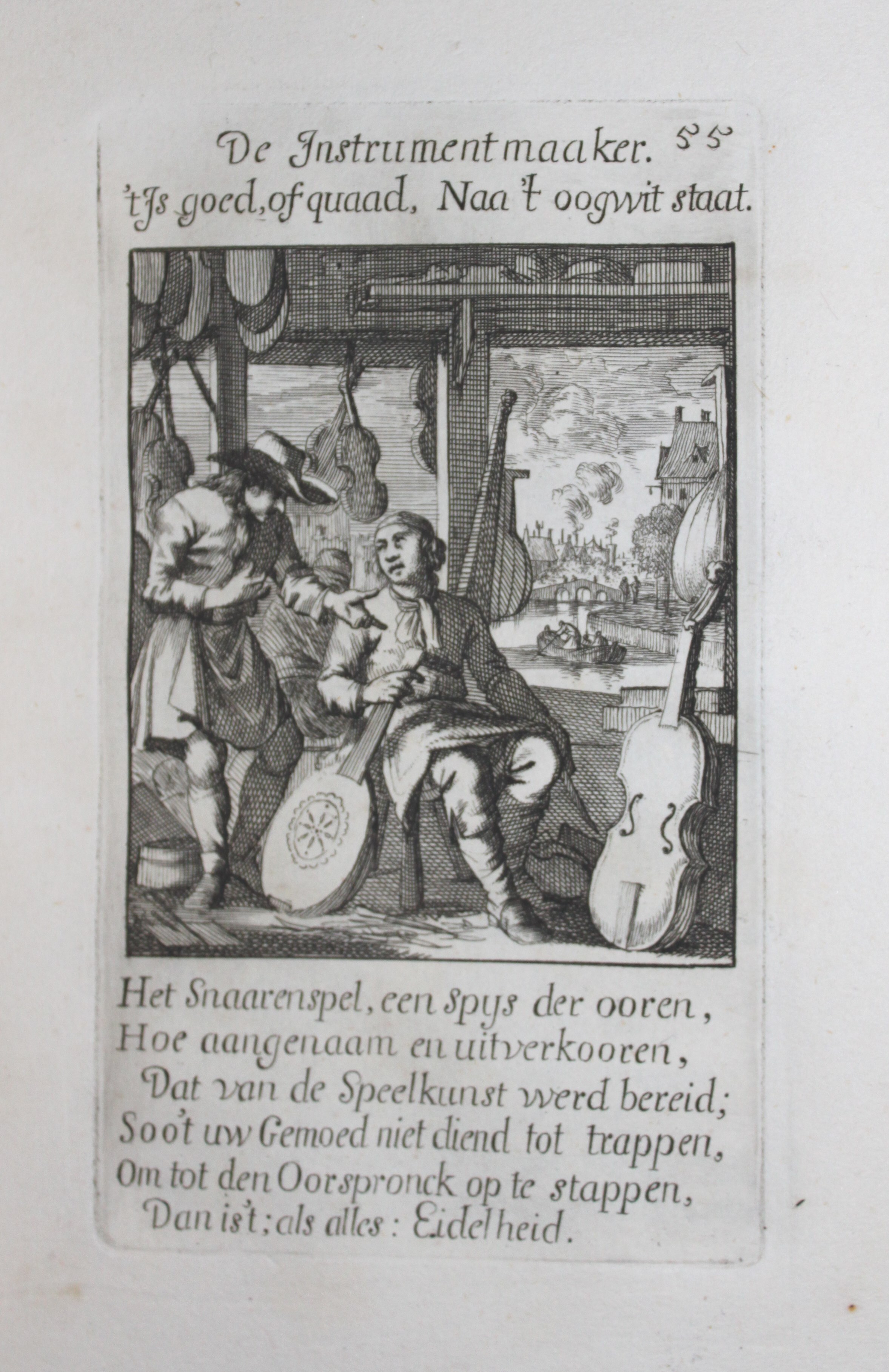 Het menselyk bedryf vertoond in 100 verbeeldingen van ambachten, konsten, hanteeringen en bedryven; met versen ... t' Amsterdam. Gedaan door Johannes, en Caspaares Luiken. 1694.