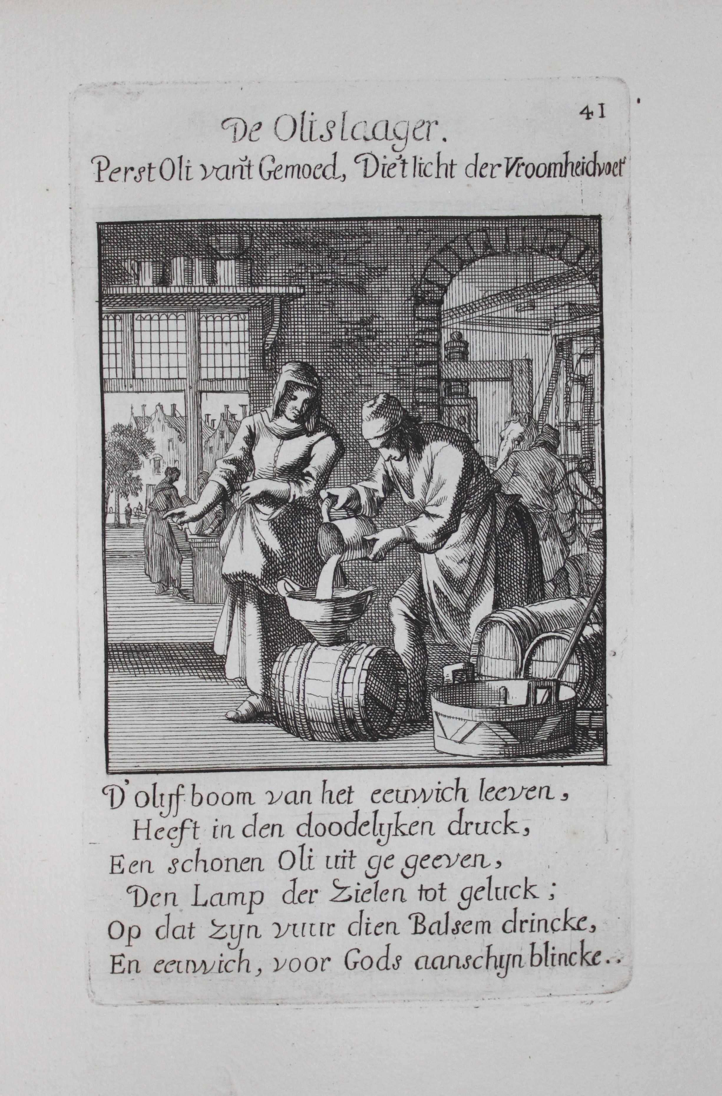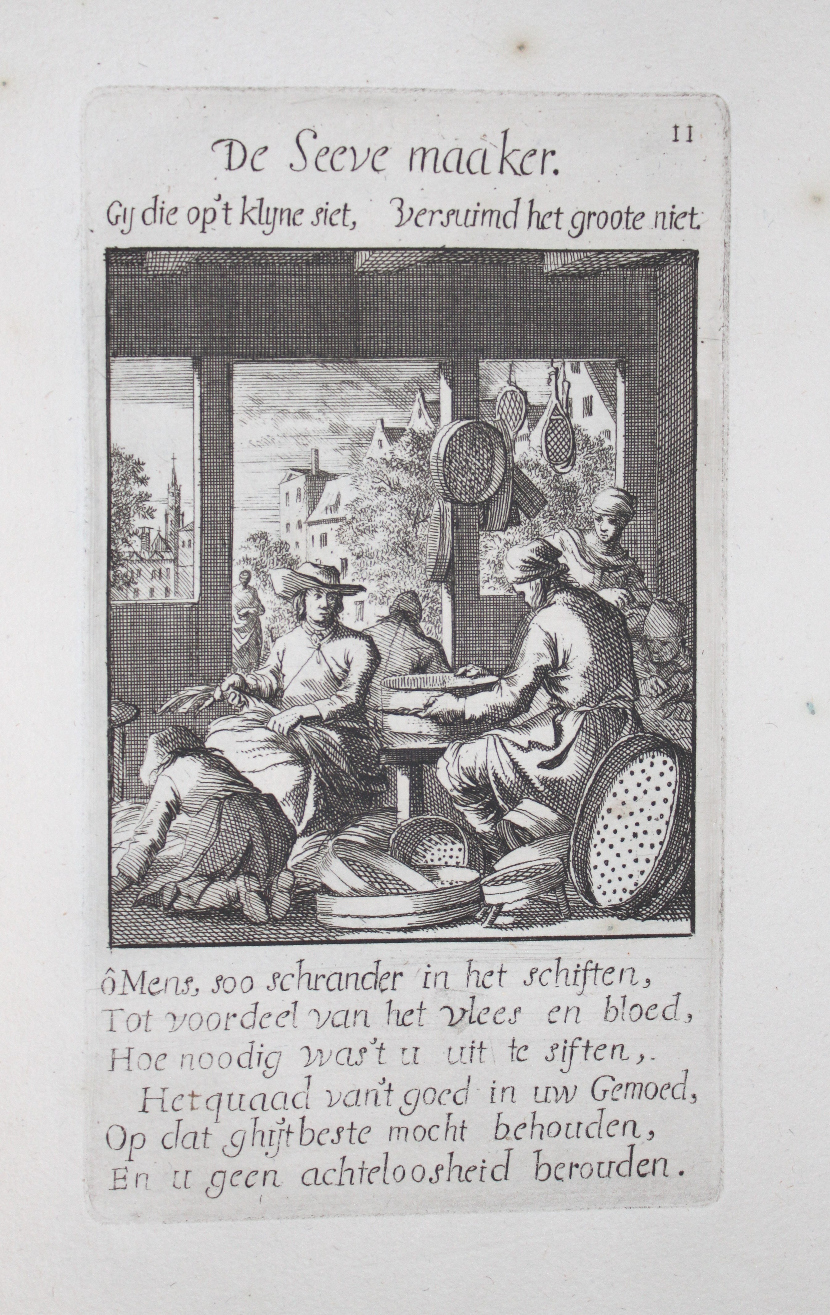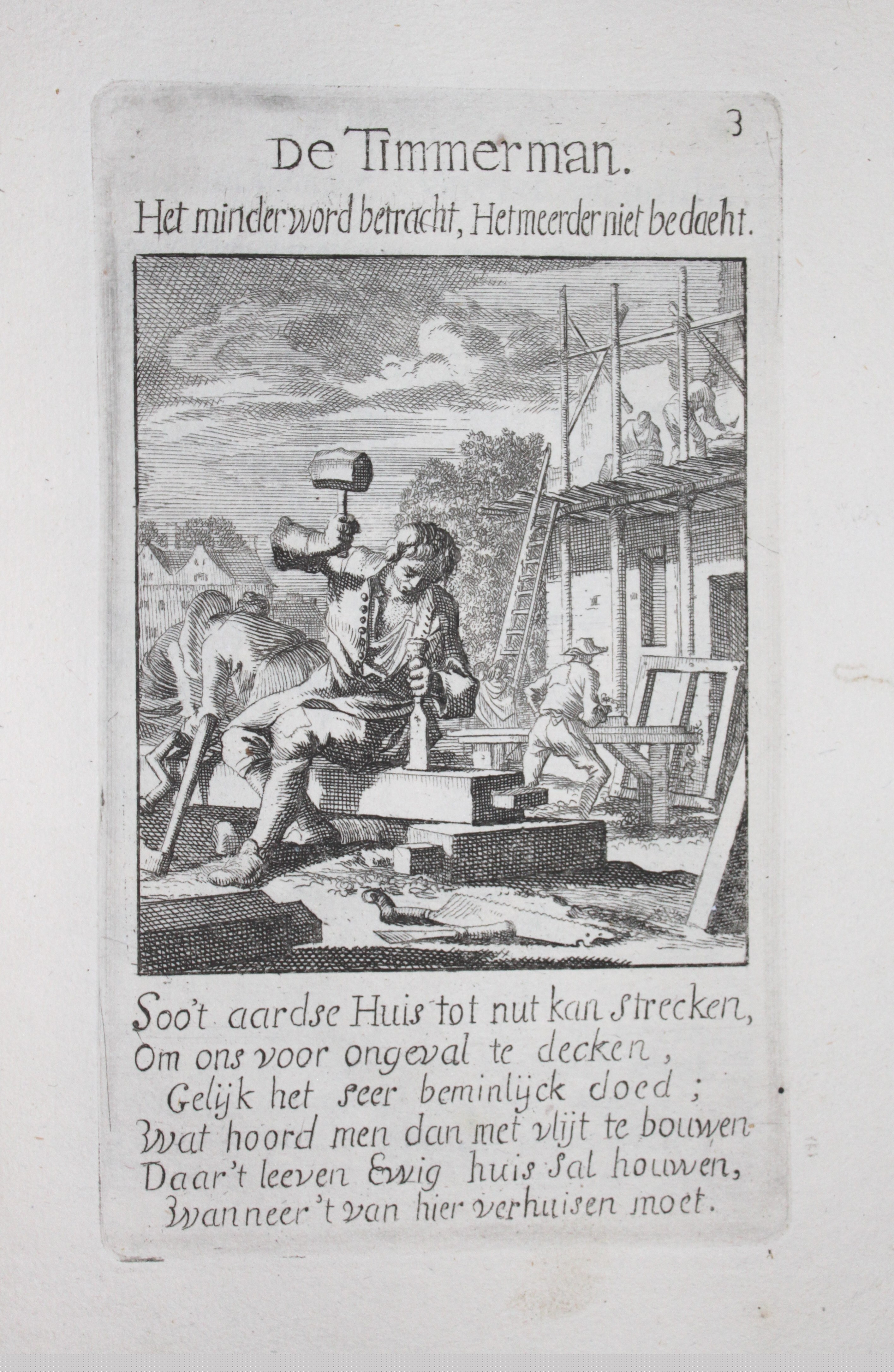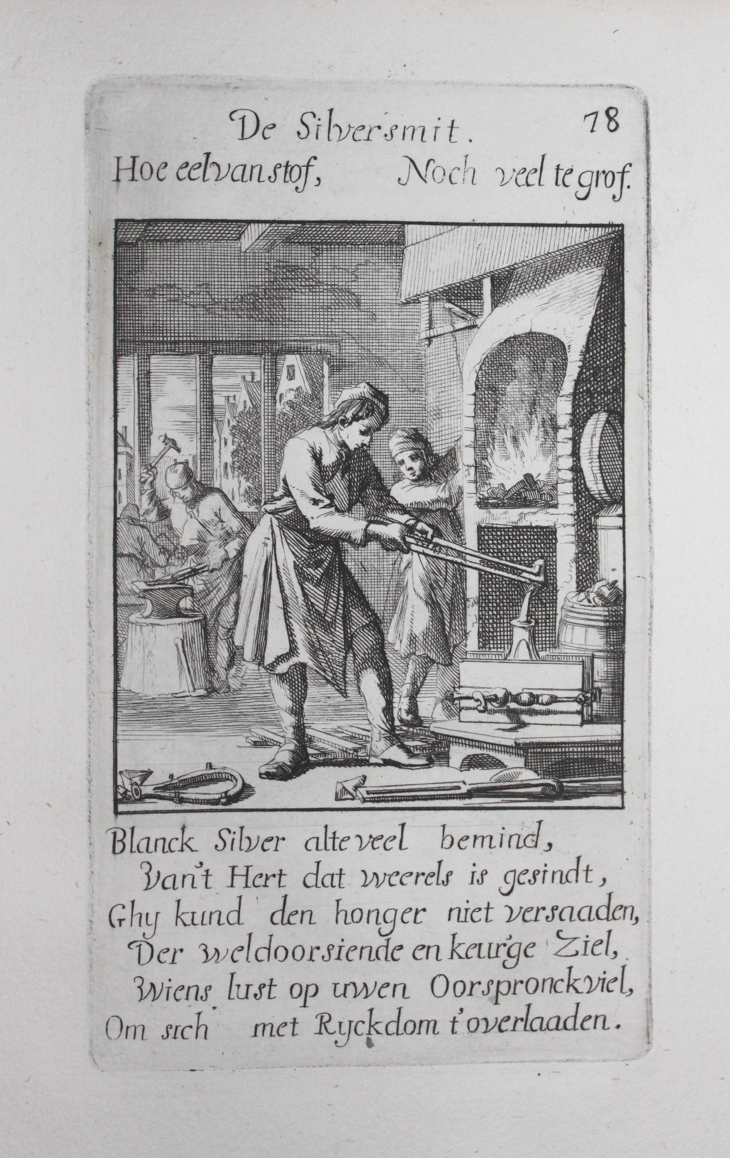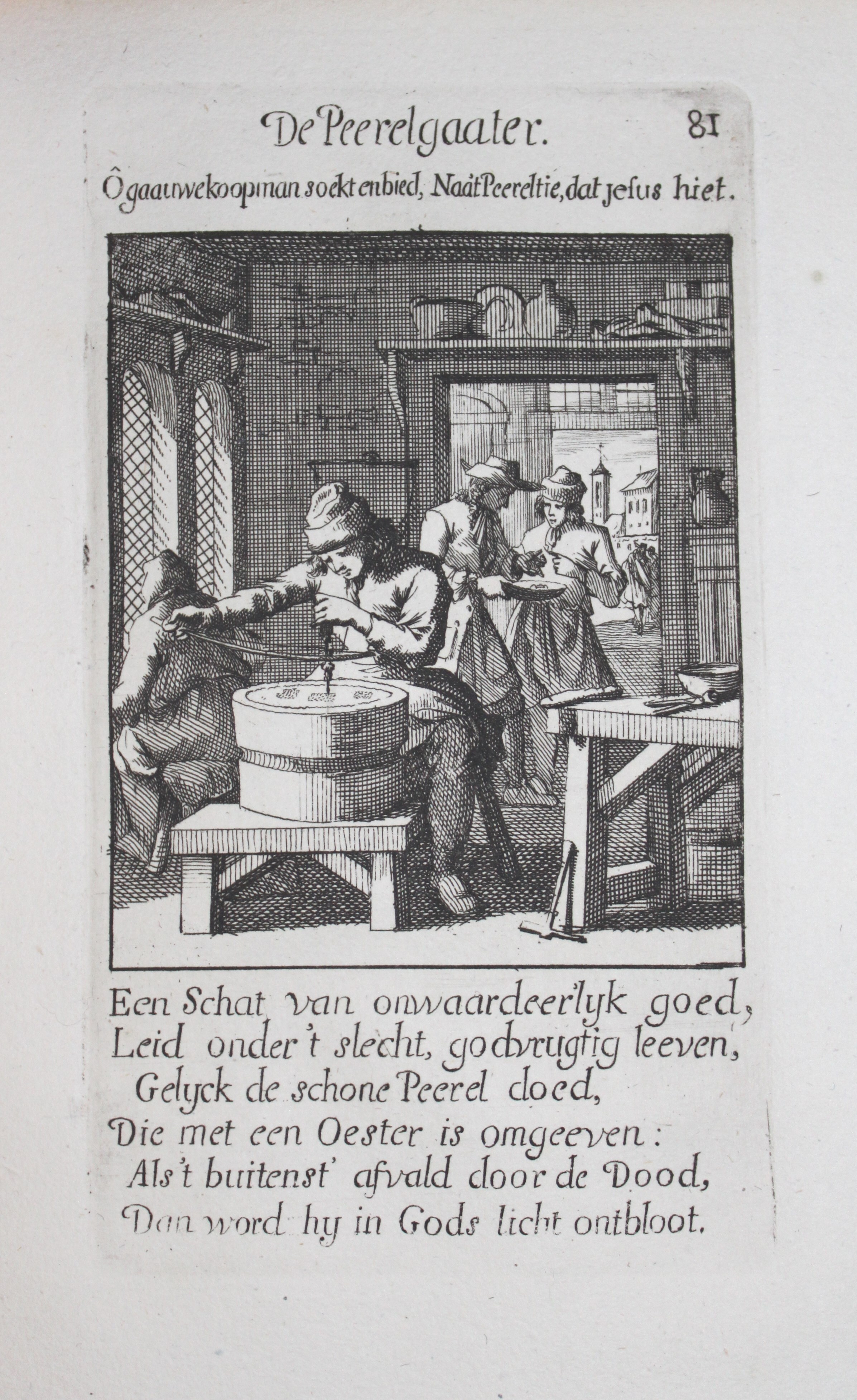 Het menselyk bedryf vertoond in 100 verbeeldingen van ambachten, konsten, hanteeringen en bedryven; met versen ... t' Amsterdam. Gedaan door Johannes, en Caspaares Luiken. 1694.