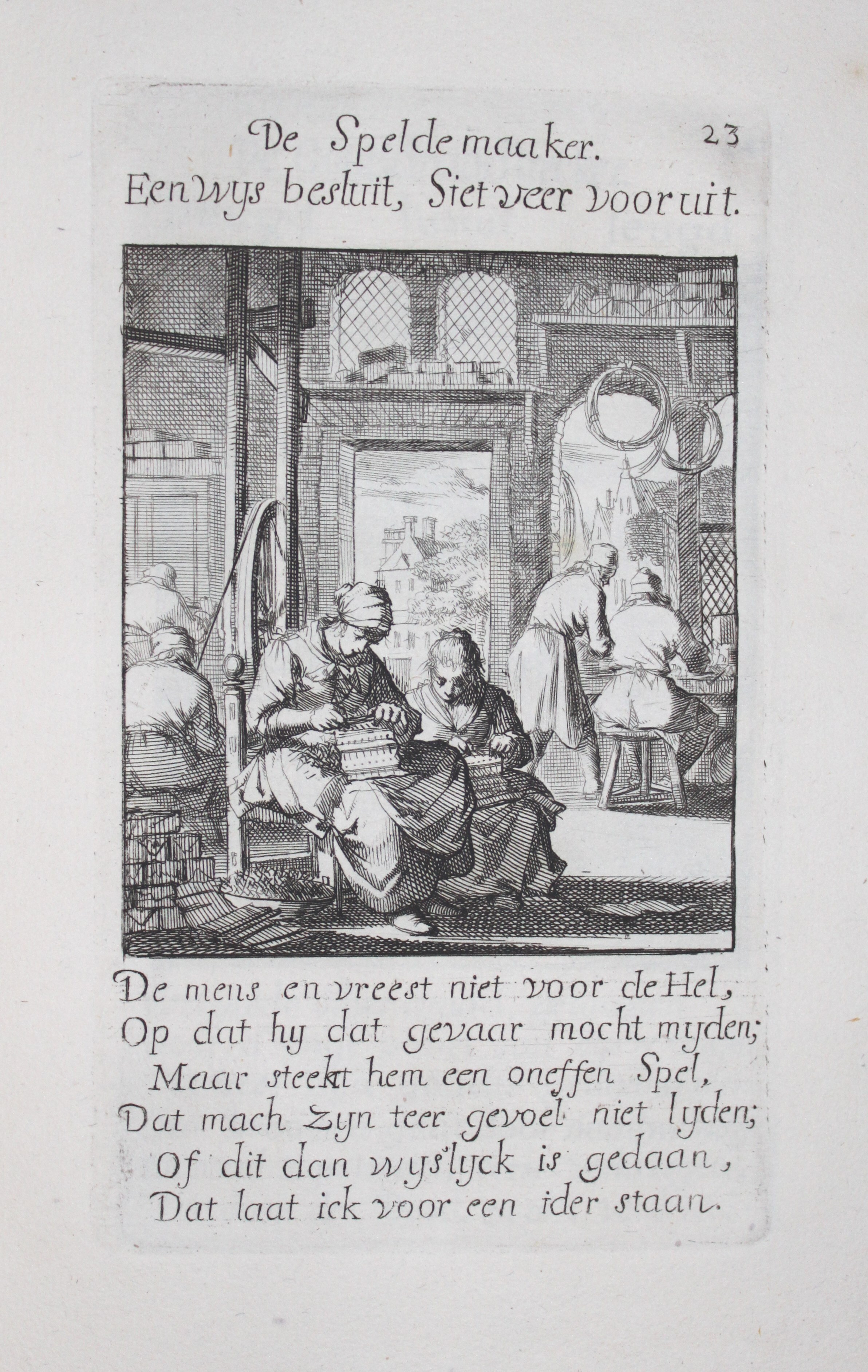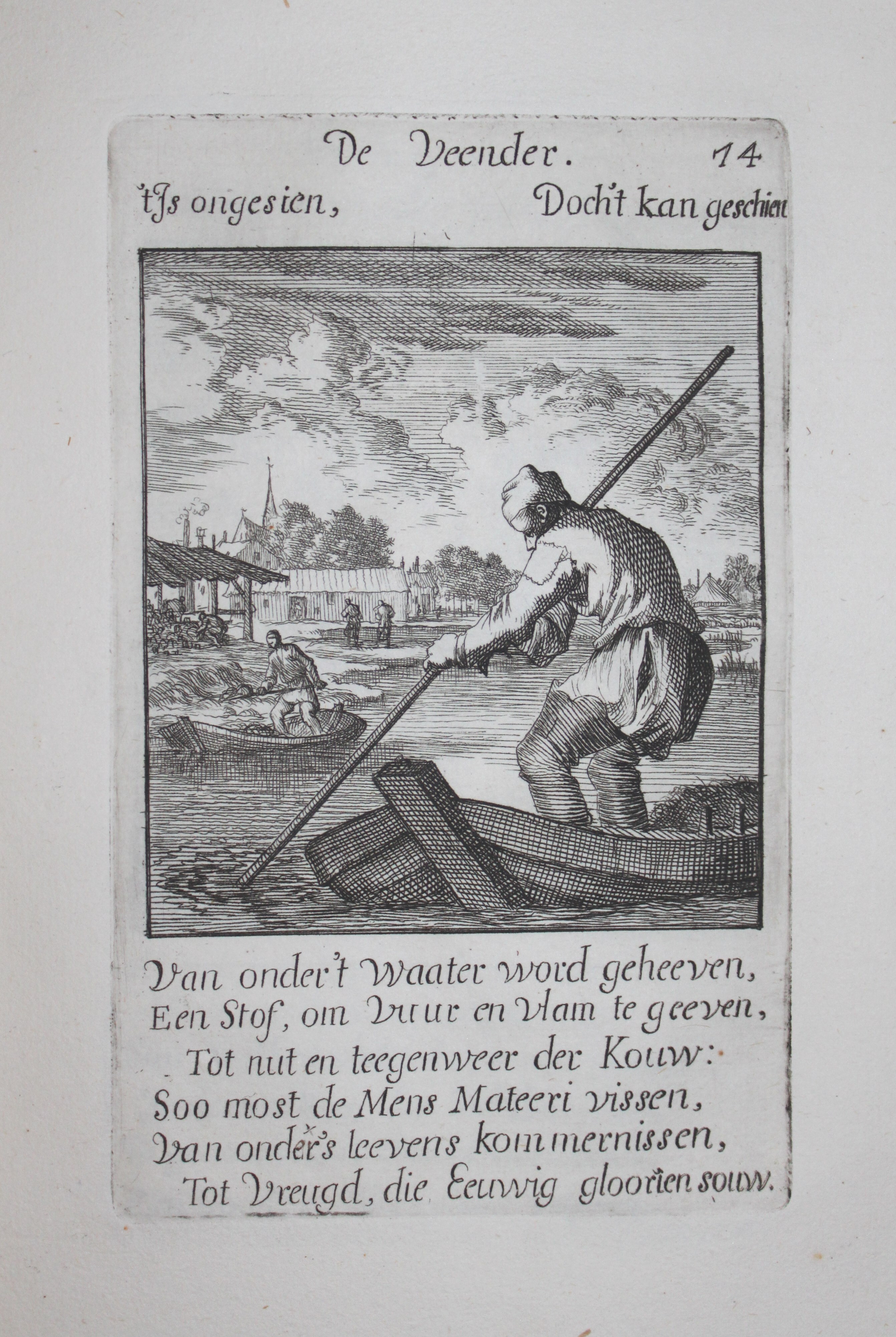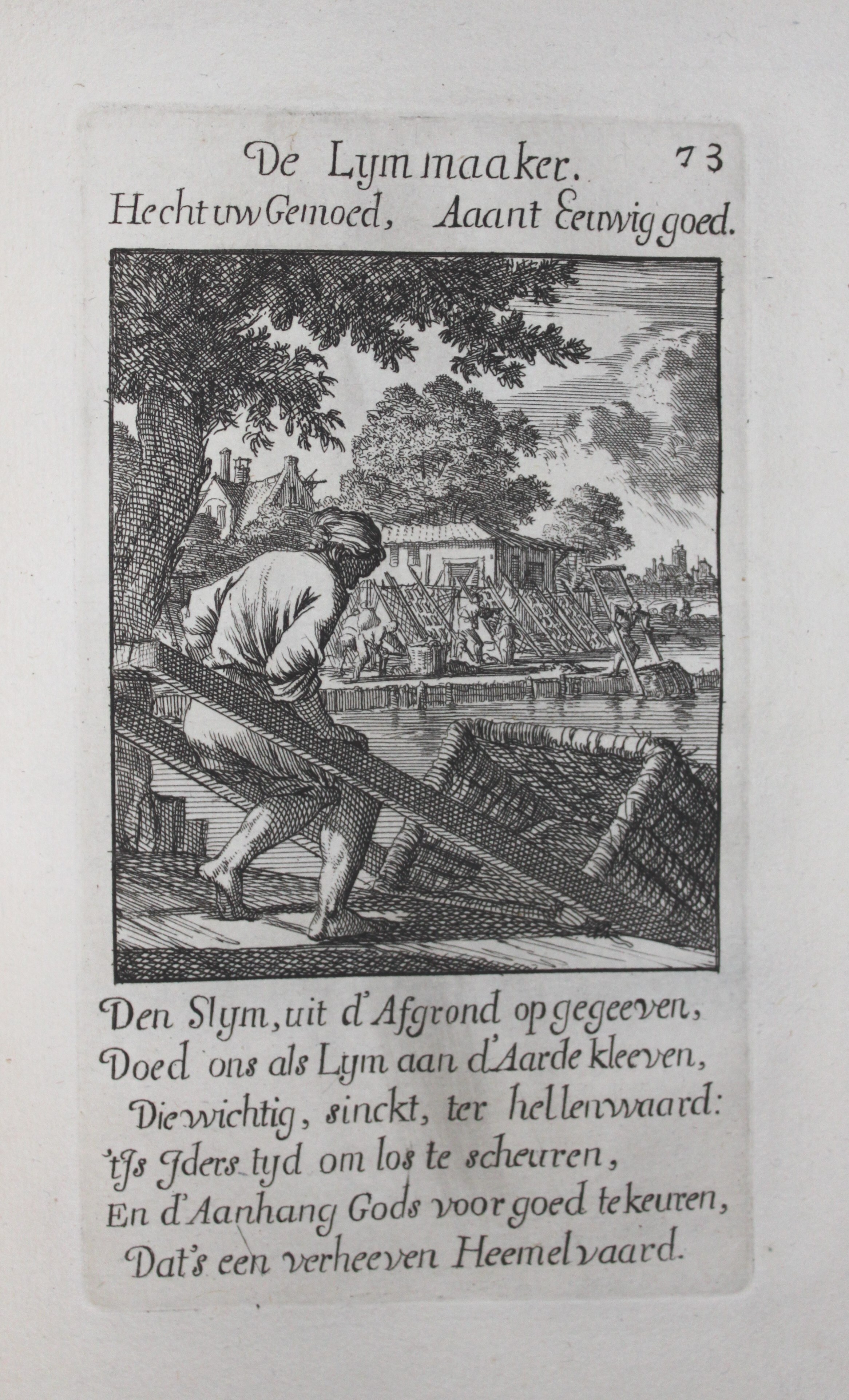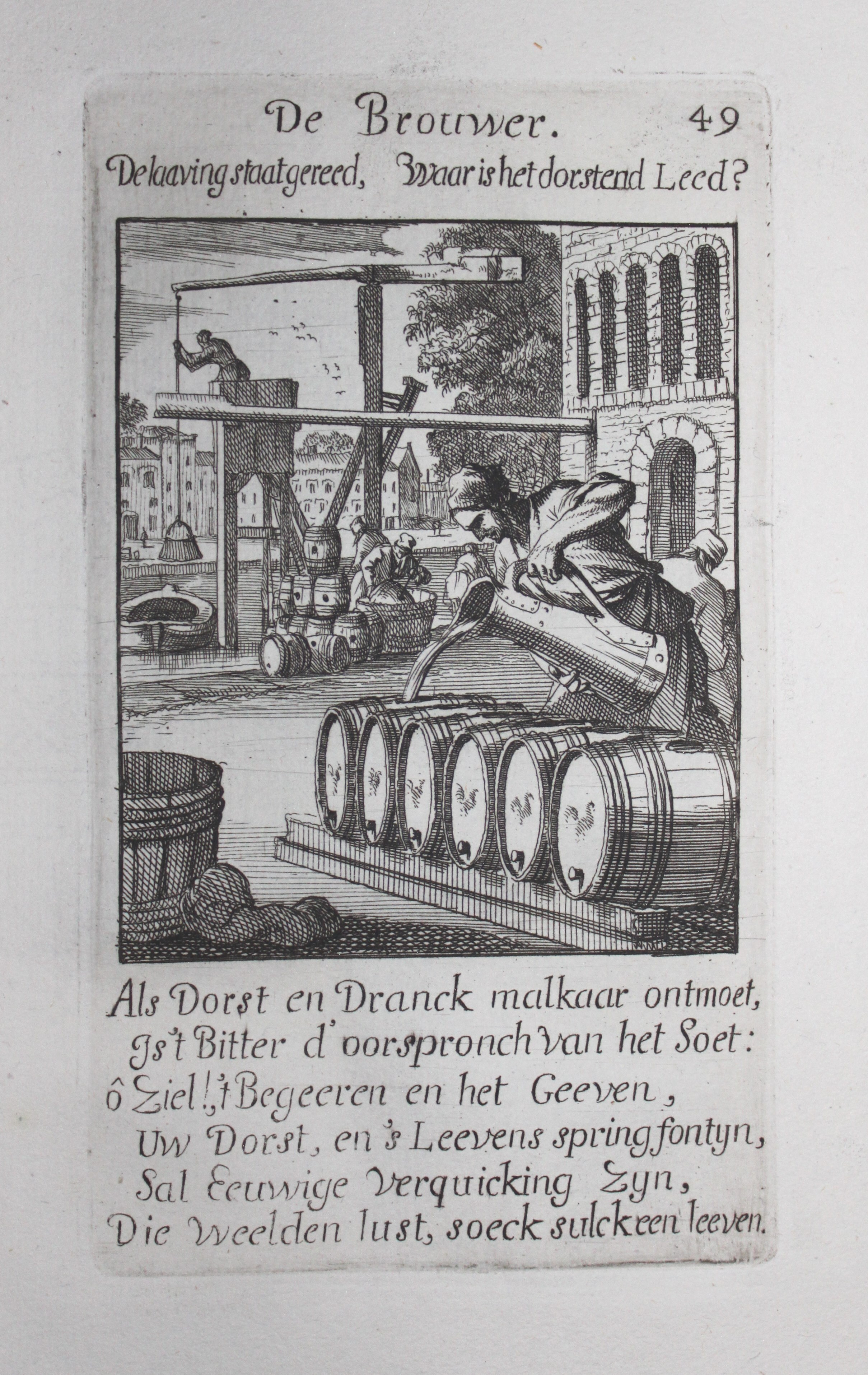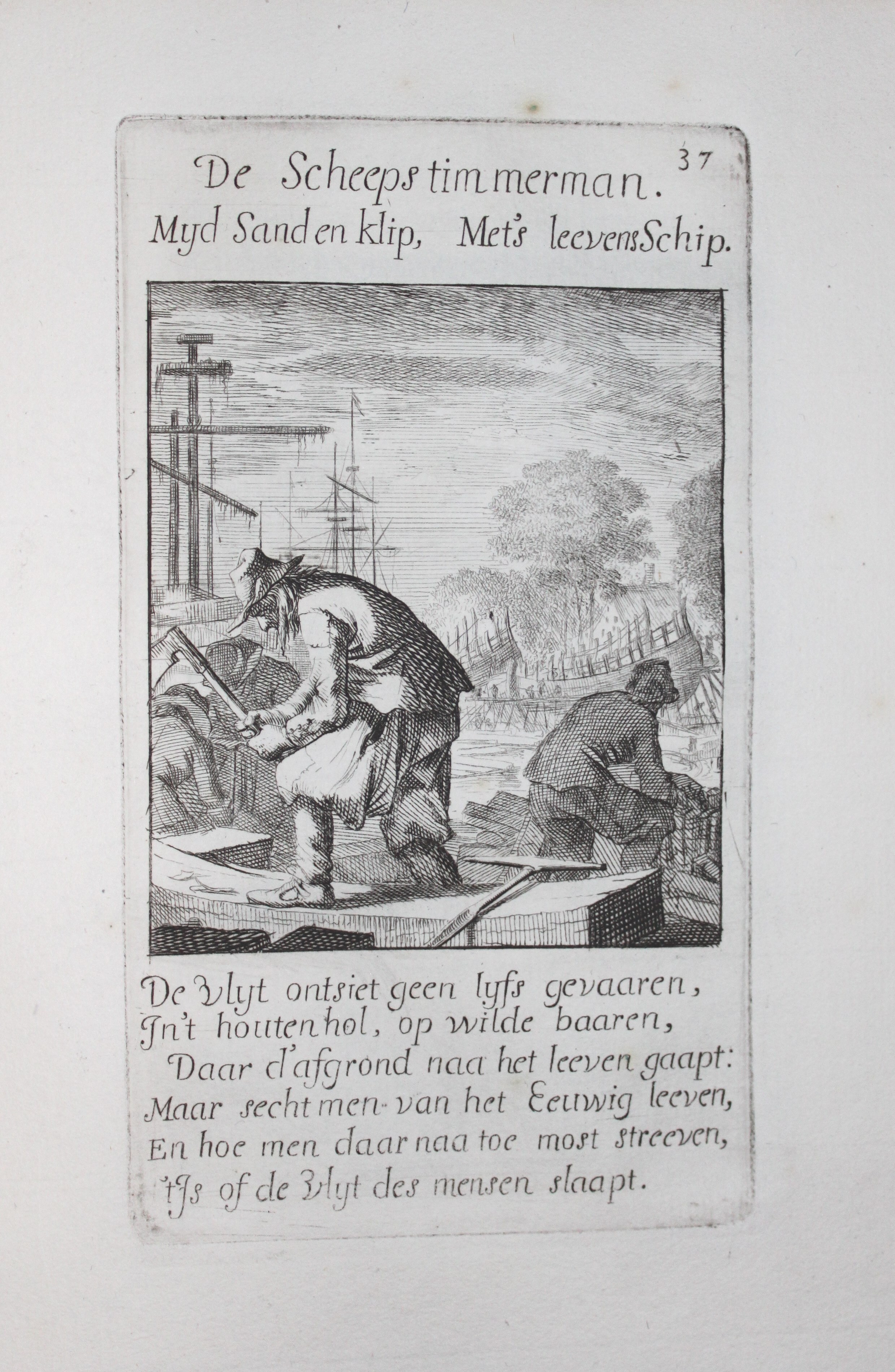 Het menselyk bedryf vertoond in 100 verbeeldingen van ambachten, konsten, hanteeringen en bedryven; met versen ... t' Amsterdam. Gedaan door Johannes, en Caspaares Luiken. 1694.