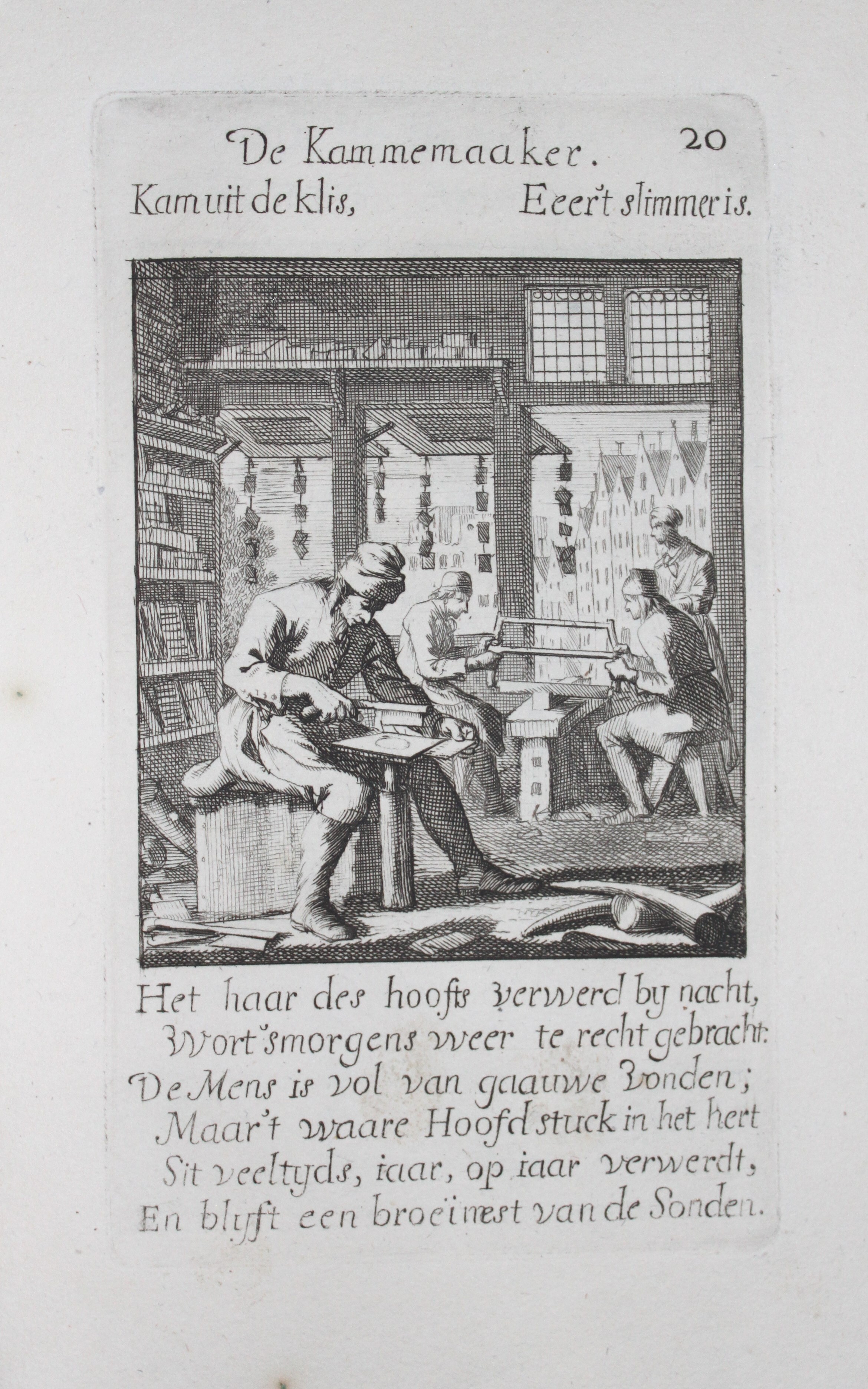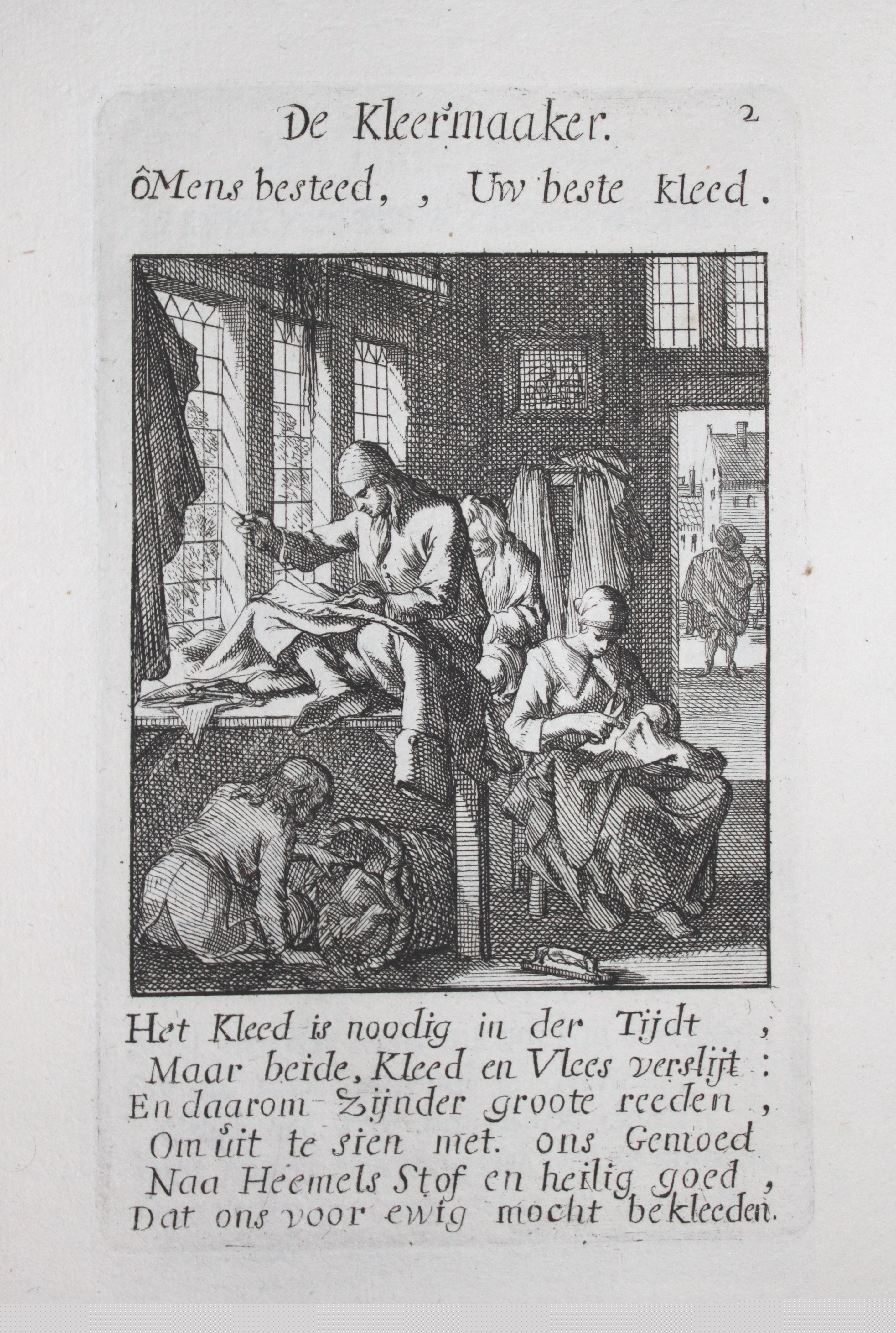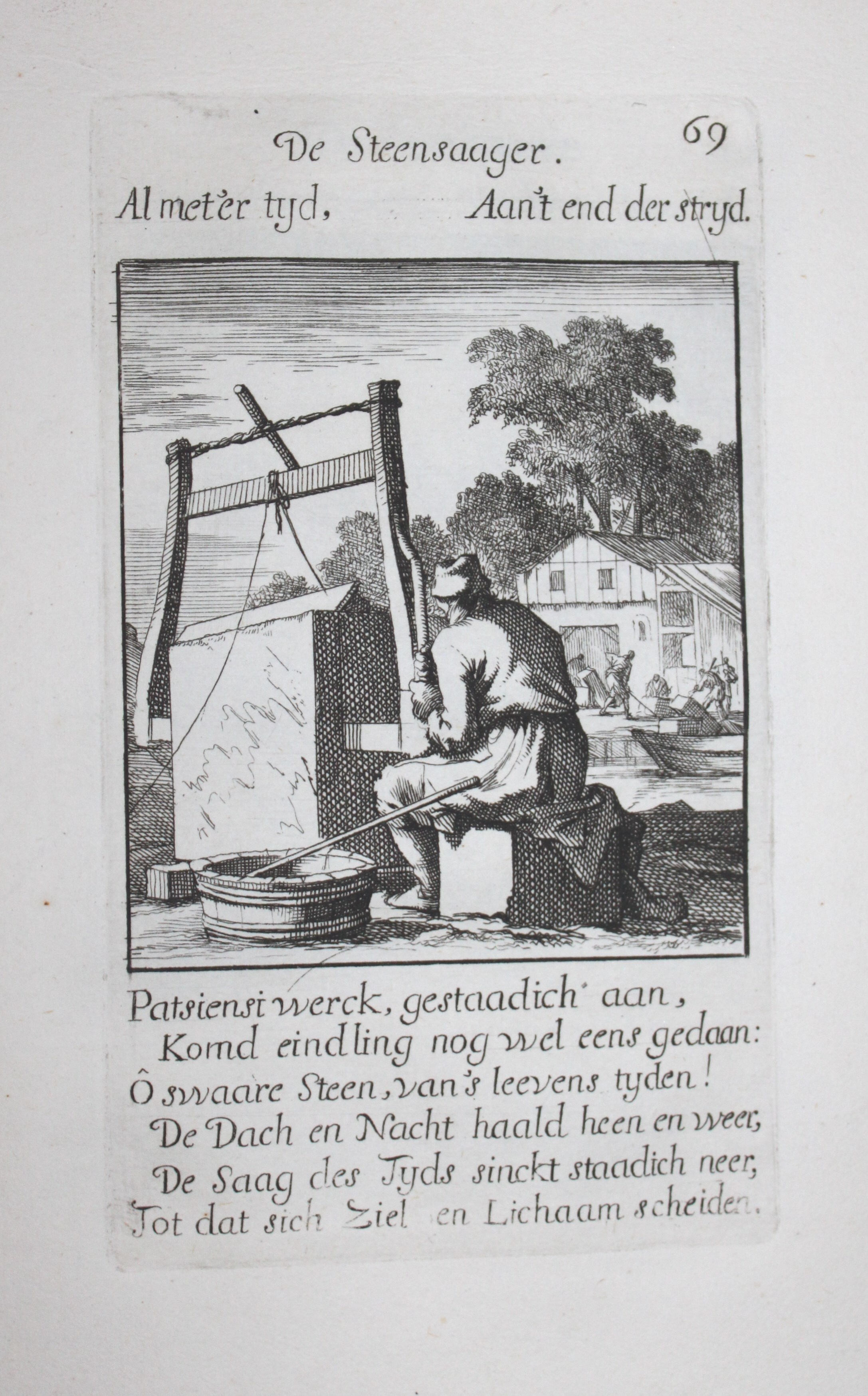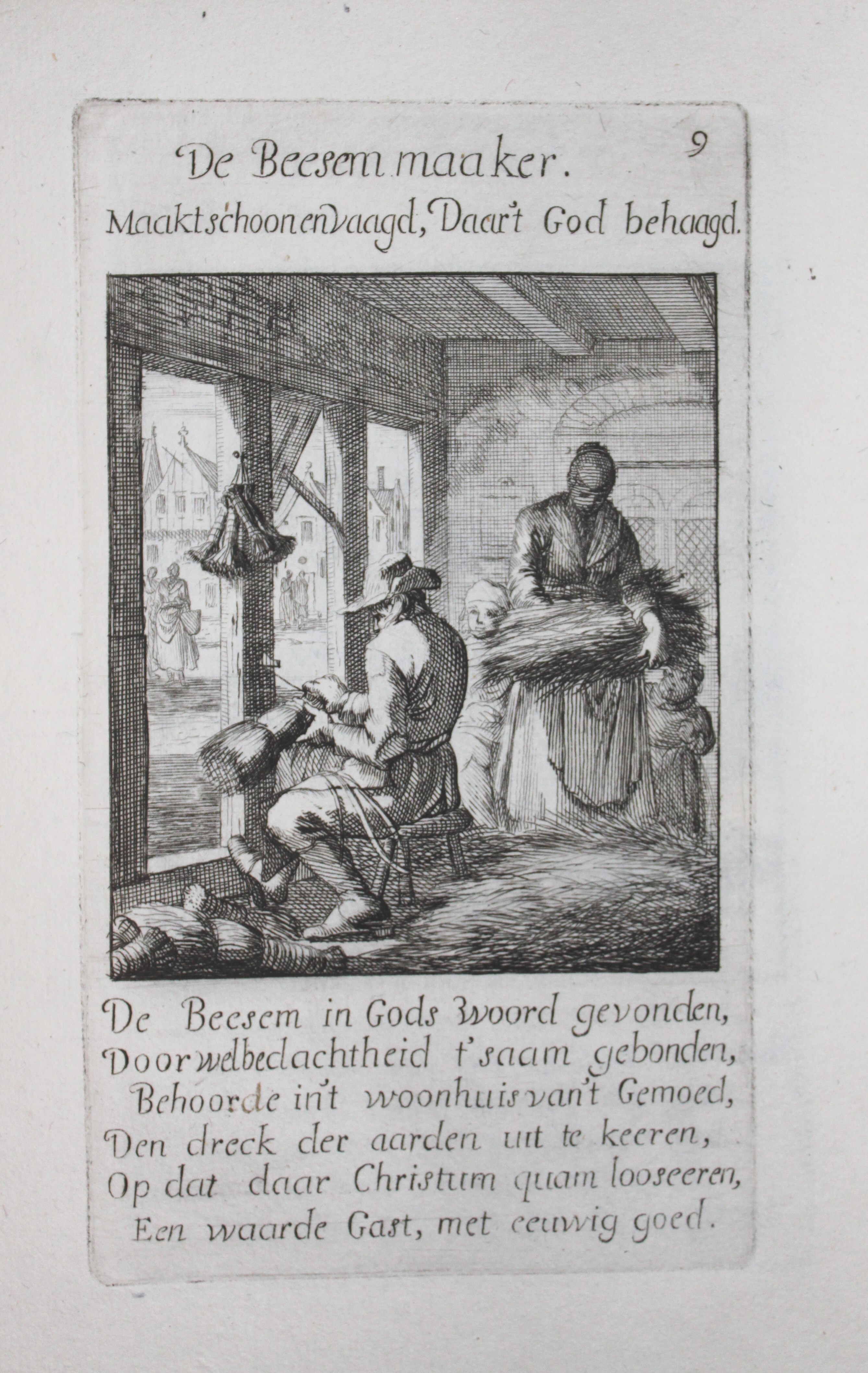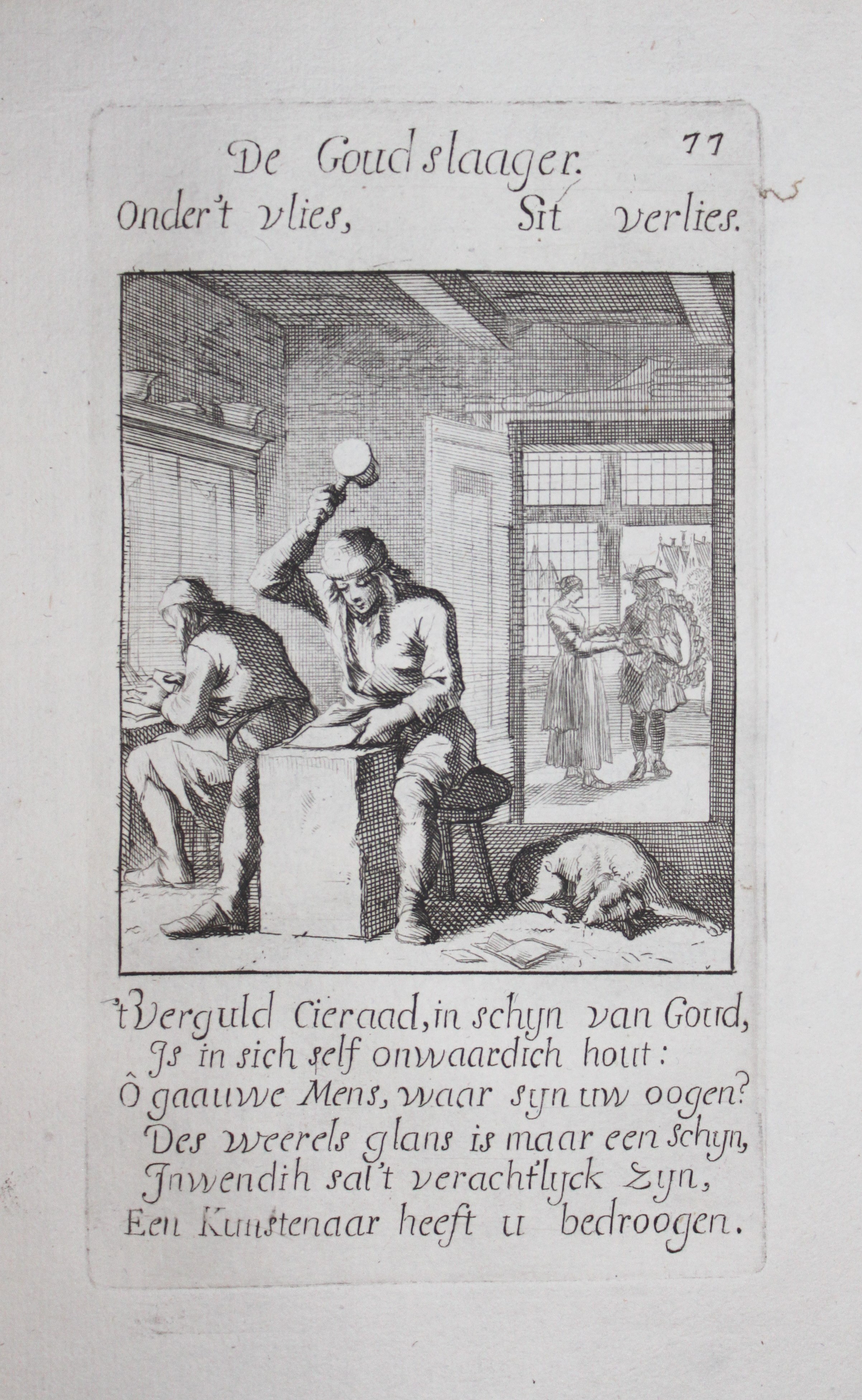 Het menselyk bedryf vertoond in 100 verbeeldingen van ambachten, konsten, hanteeringen en bedryven; met versen ... t' Amsterdam. Gedaan door Johannes, en Caspaares Luiken. 1694.