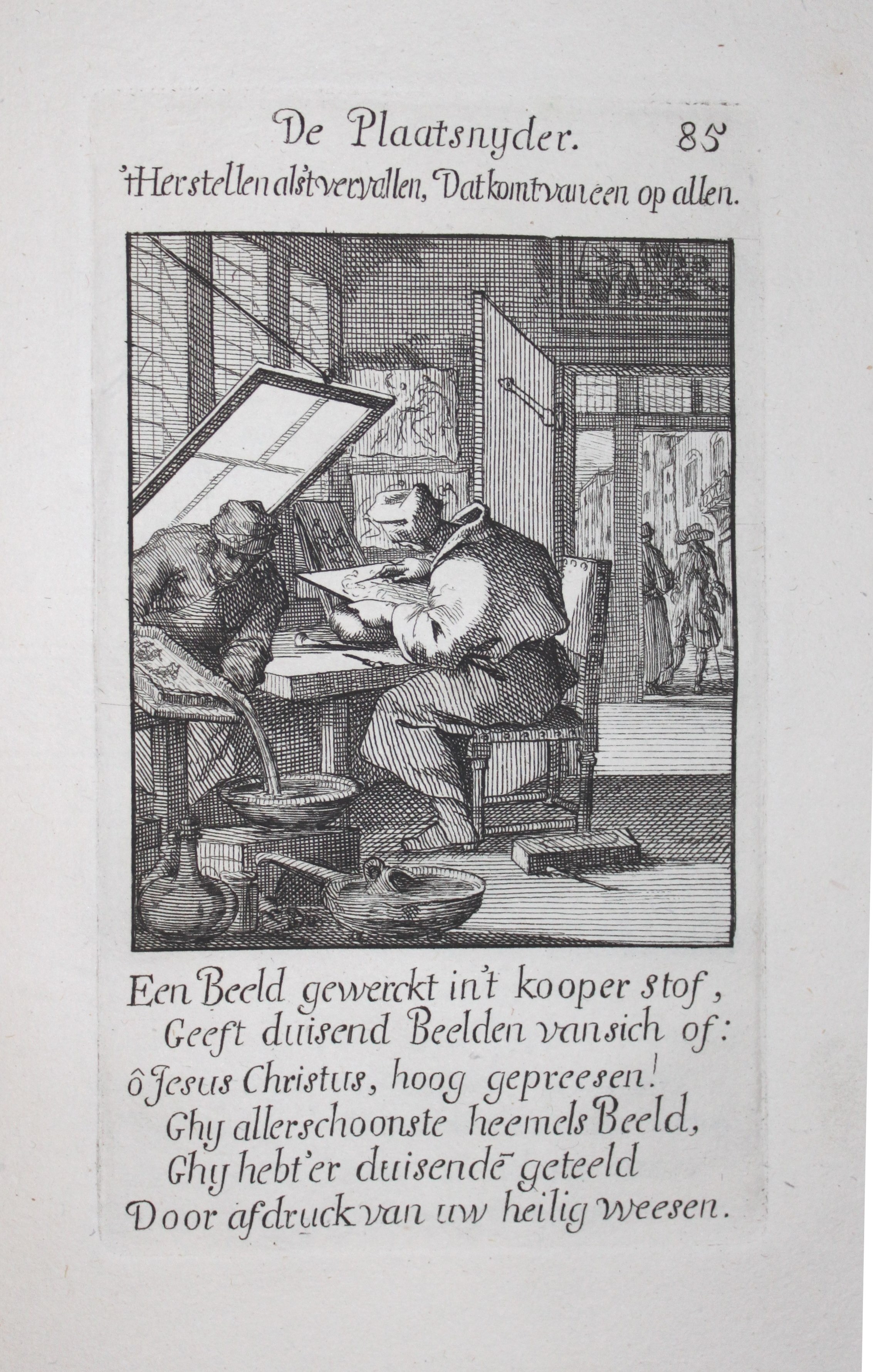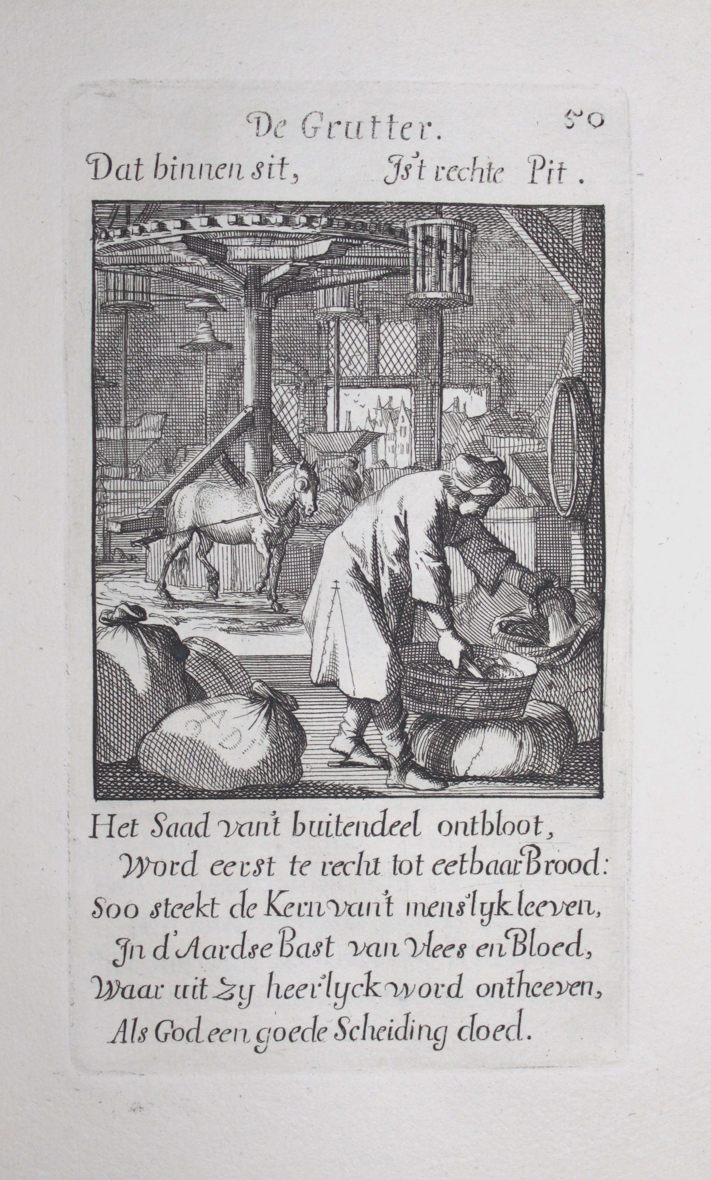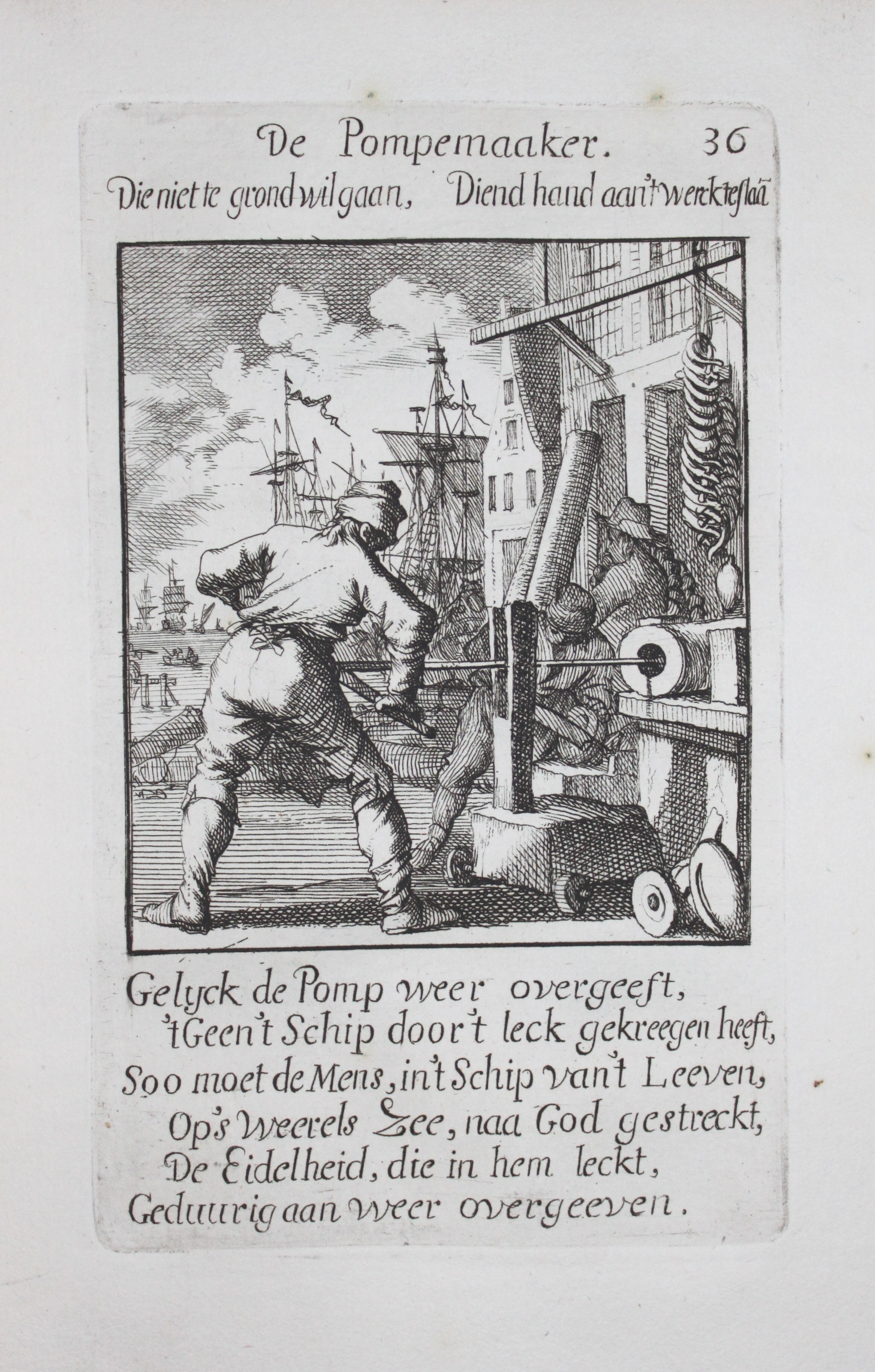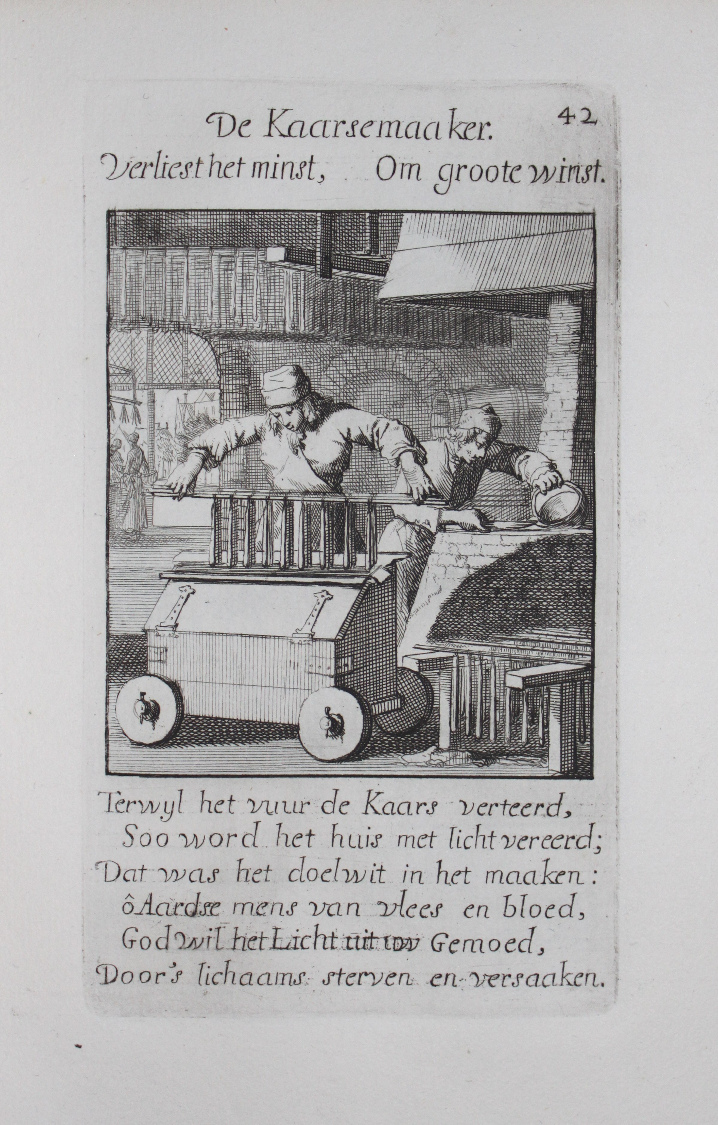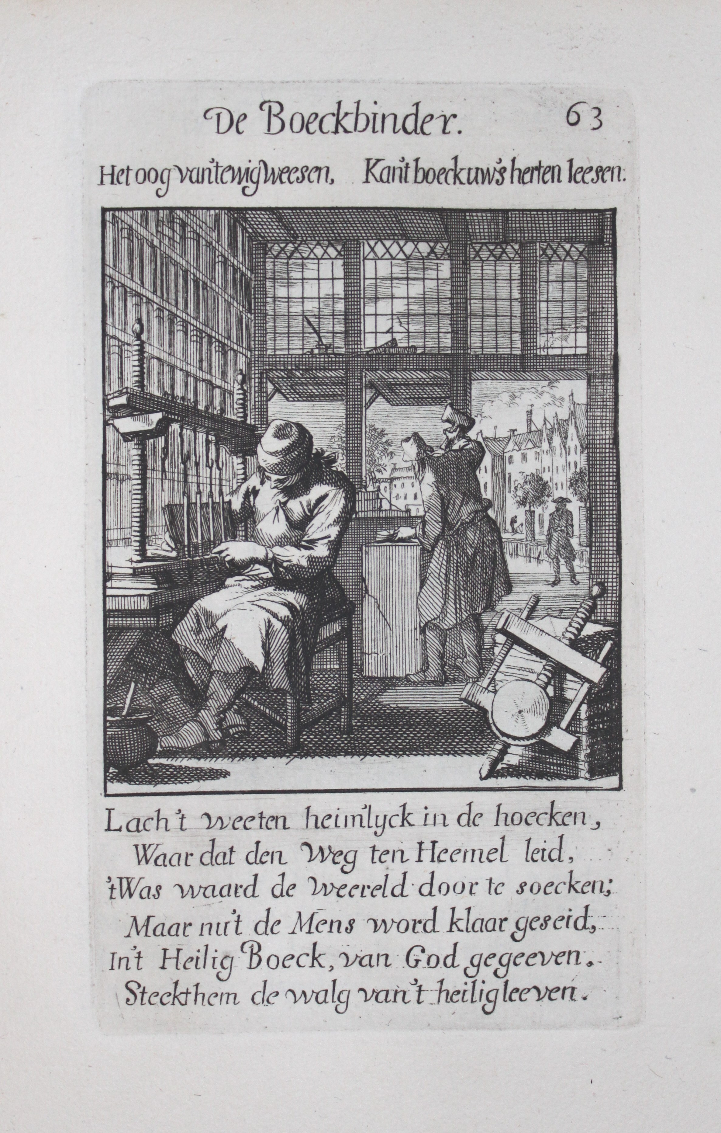 Het menselyk bedryf vertoond in 100 verbeeldingen van ambachten, konsten, hanteeringen en bedryven; met versen ... t' Amsterdam. Gedaan door Johannes, en Caspaares Luiken. 1694.