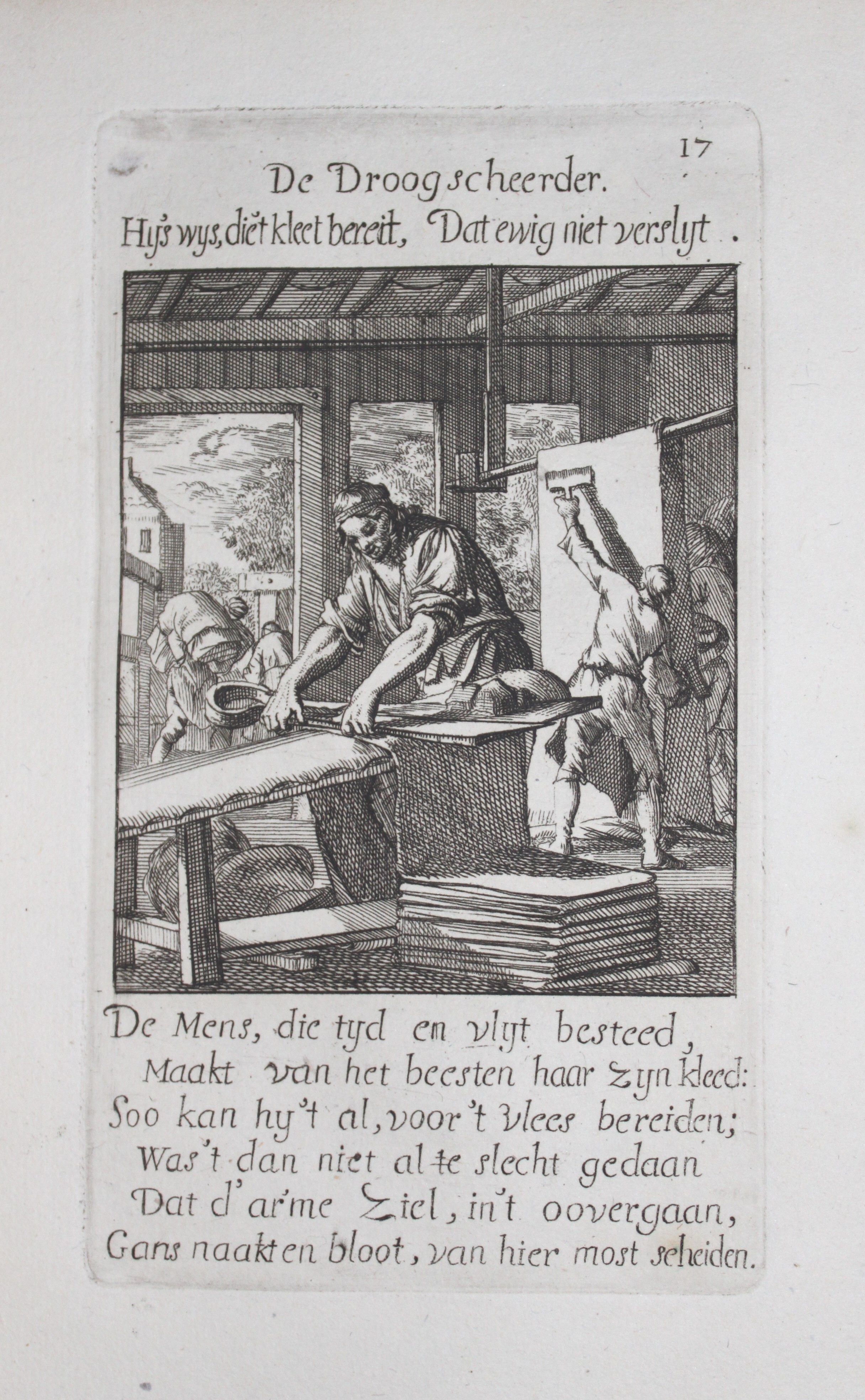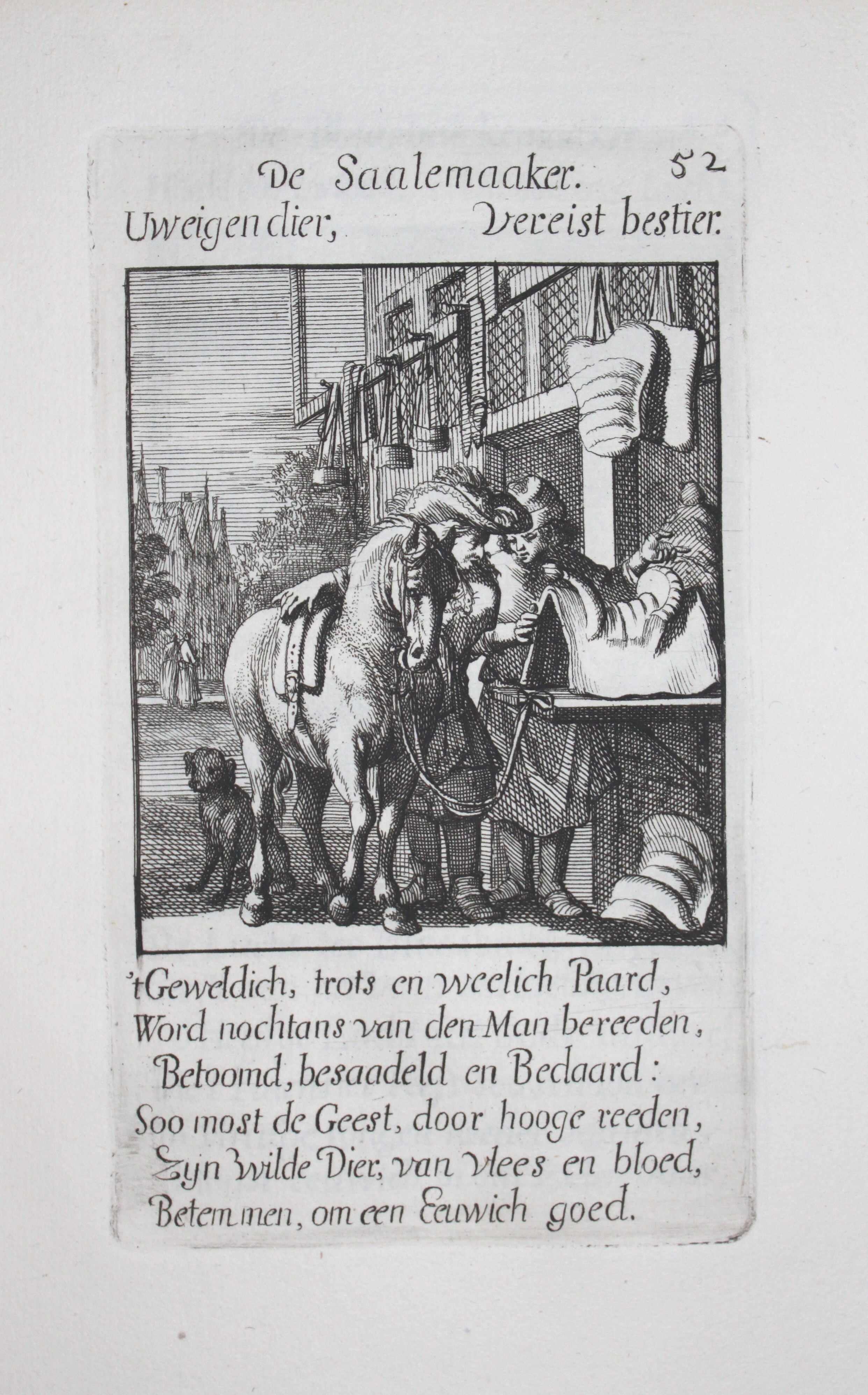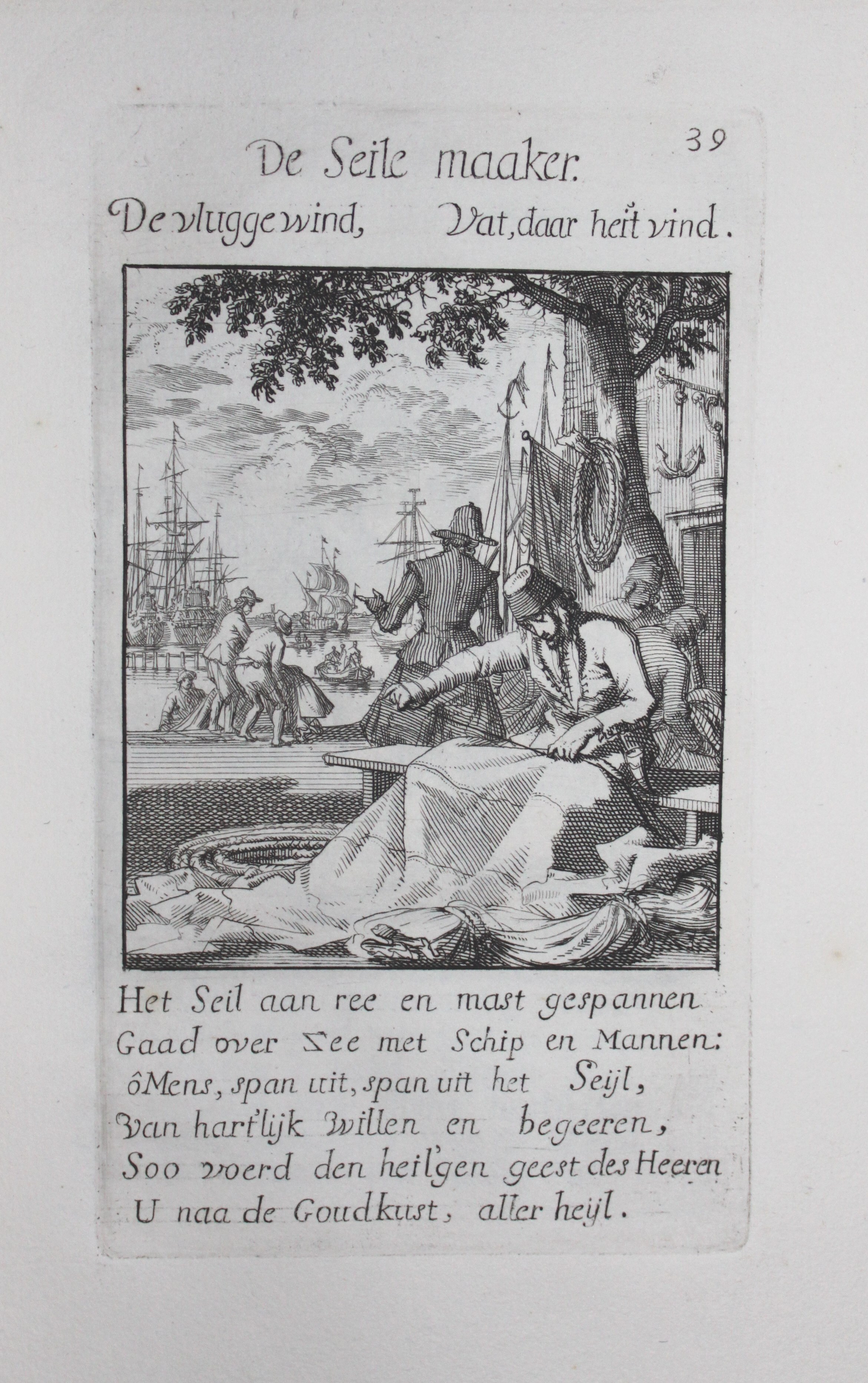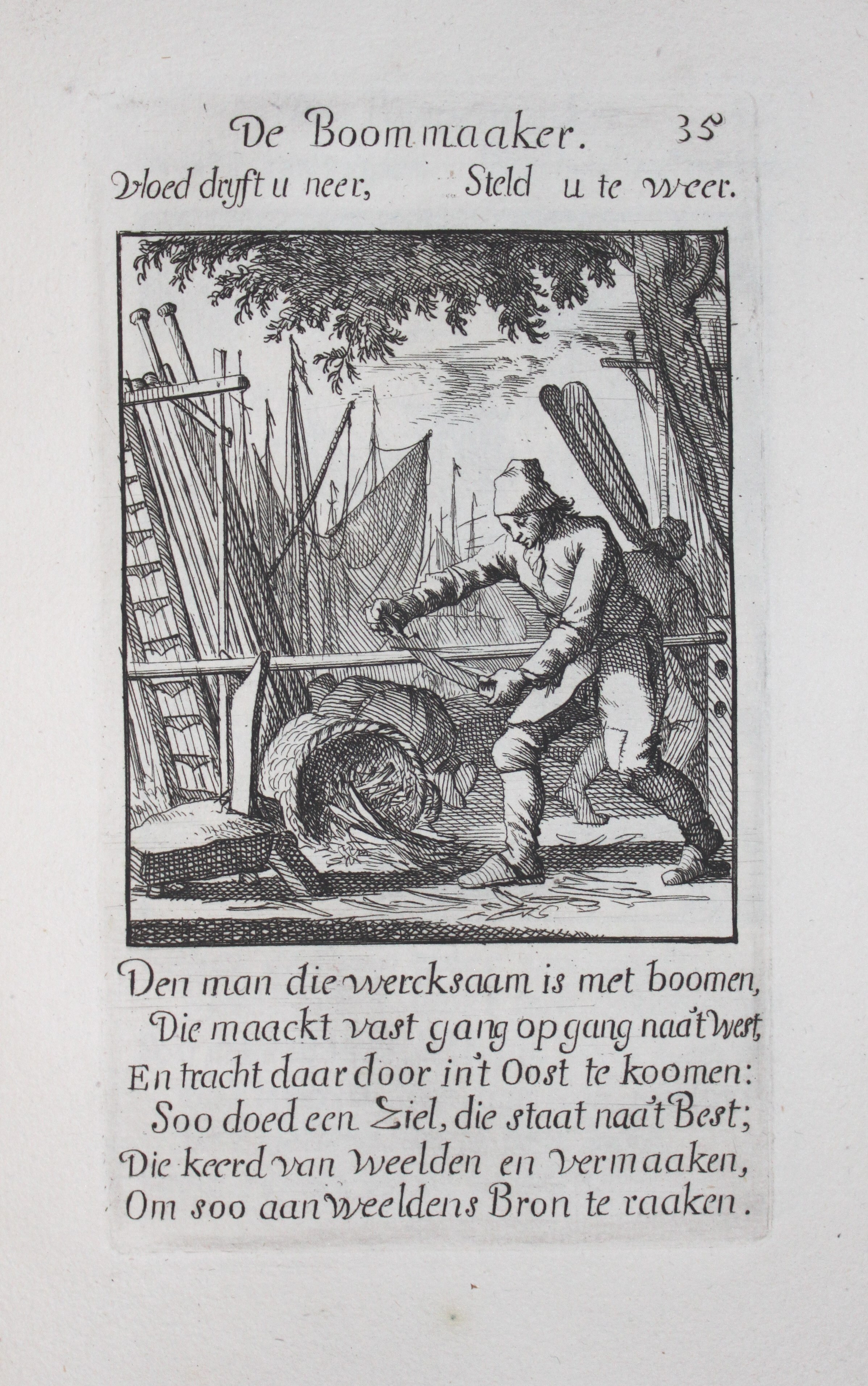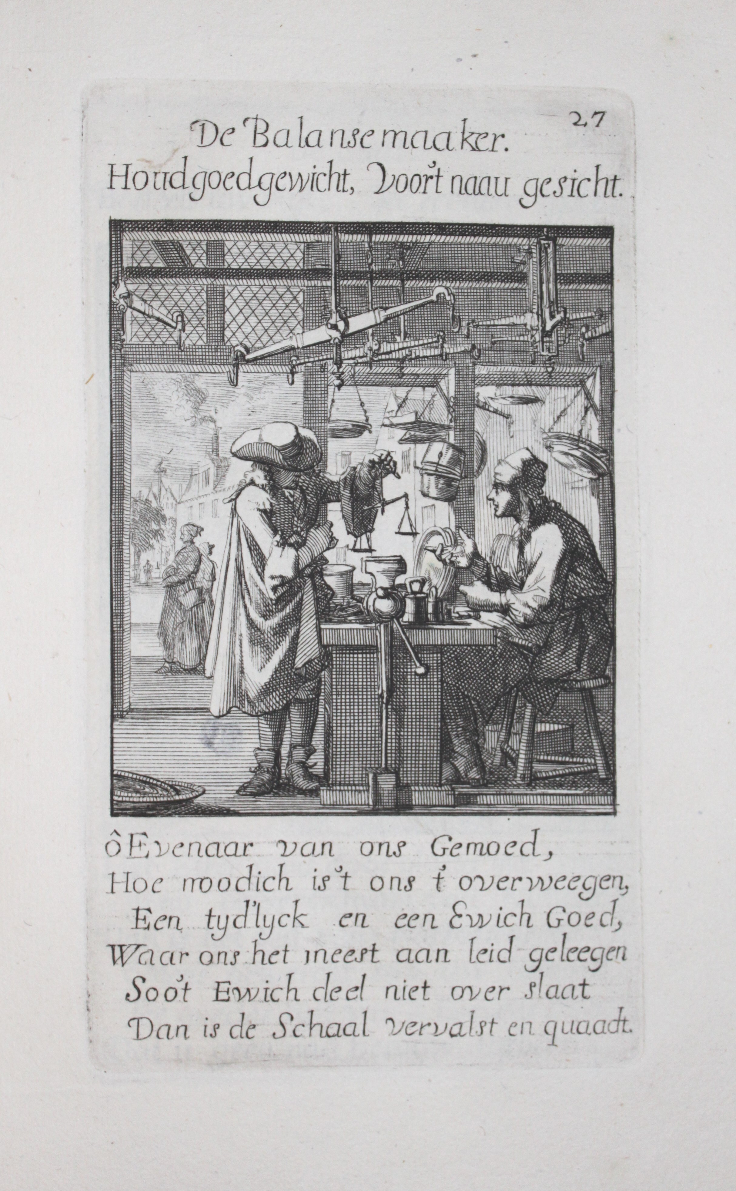 Het menselyk bedryf vertoond in 100 verbeeldingen van ambachten, konsten, hanteeringen en bedryven; met versen ... t' Amsterdam. Gedaan door Johannes, en Caspaares Luiken. 1694.
