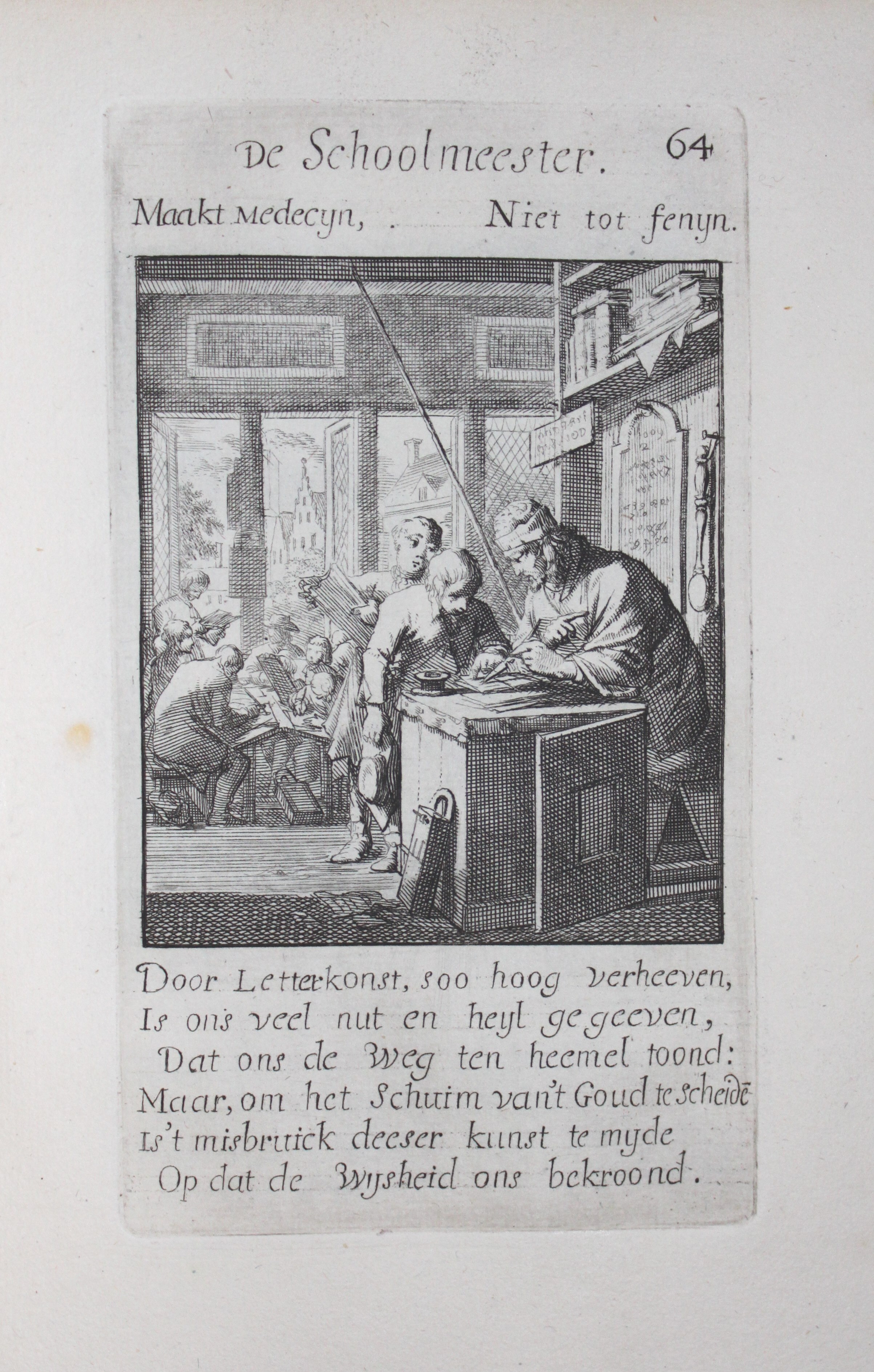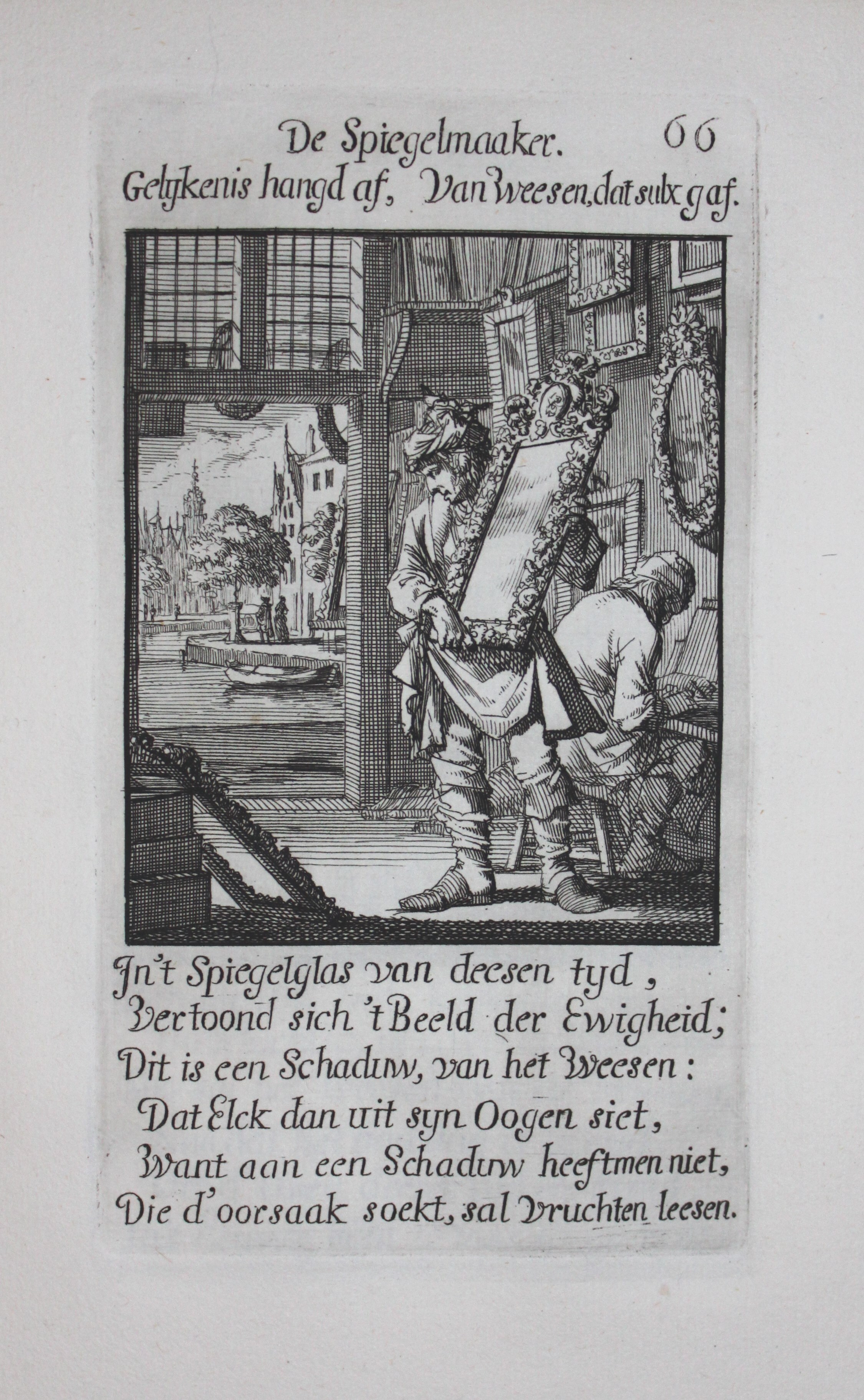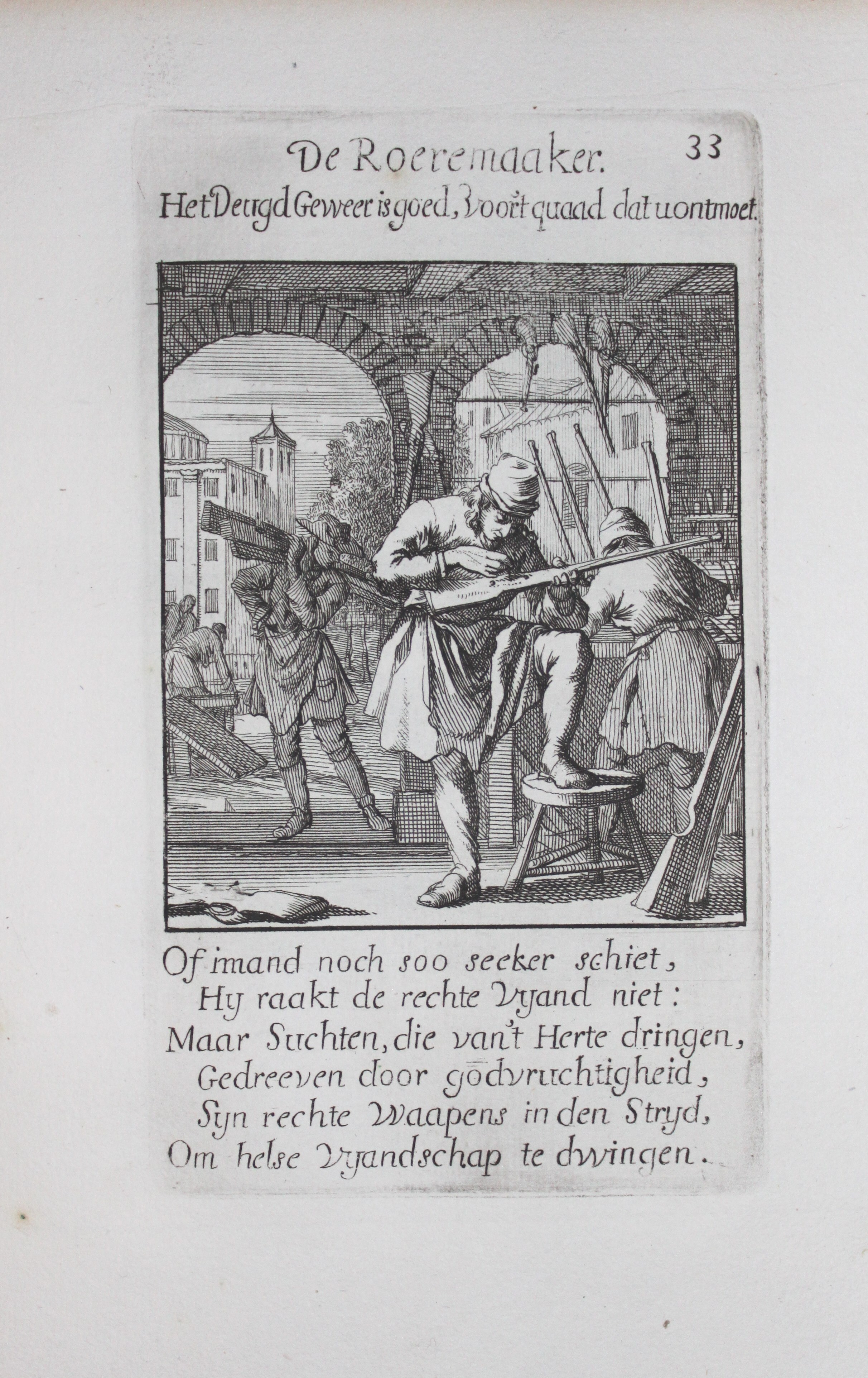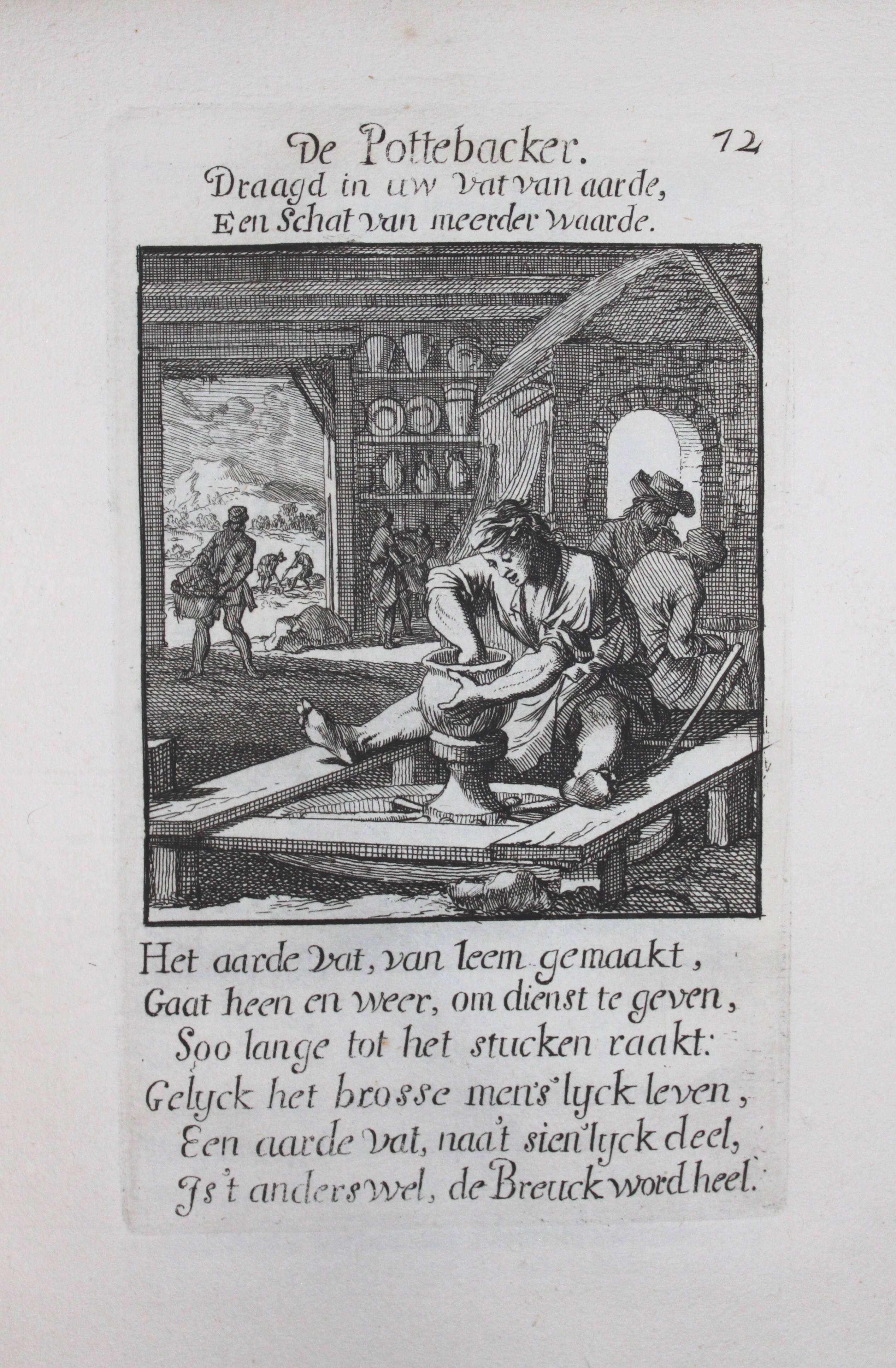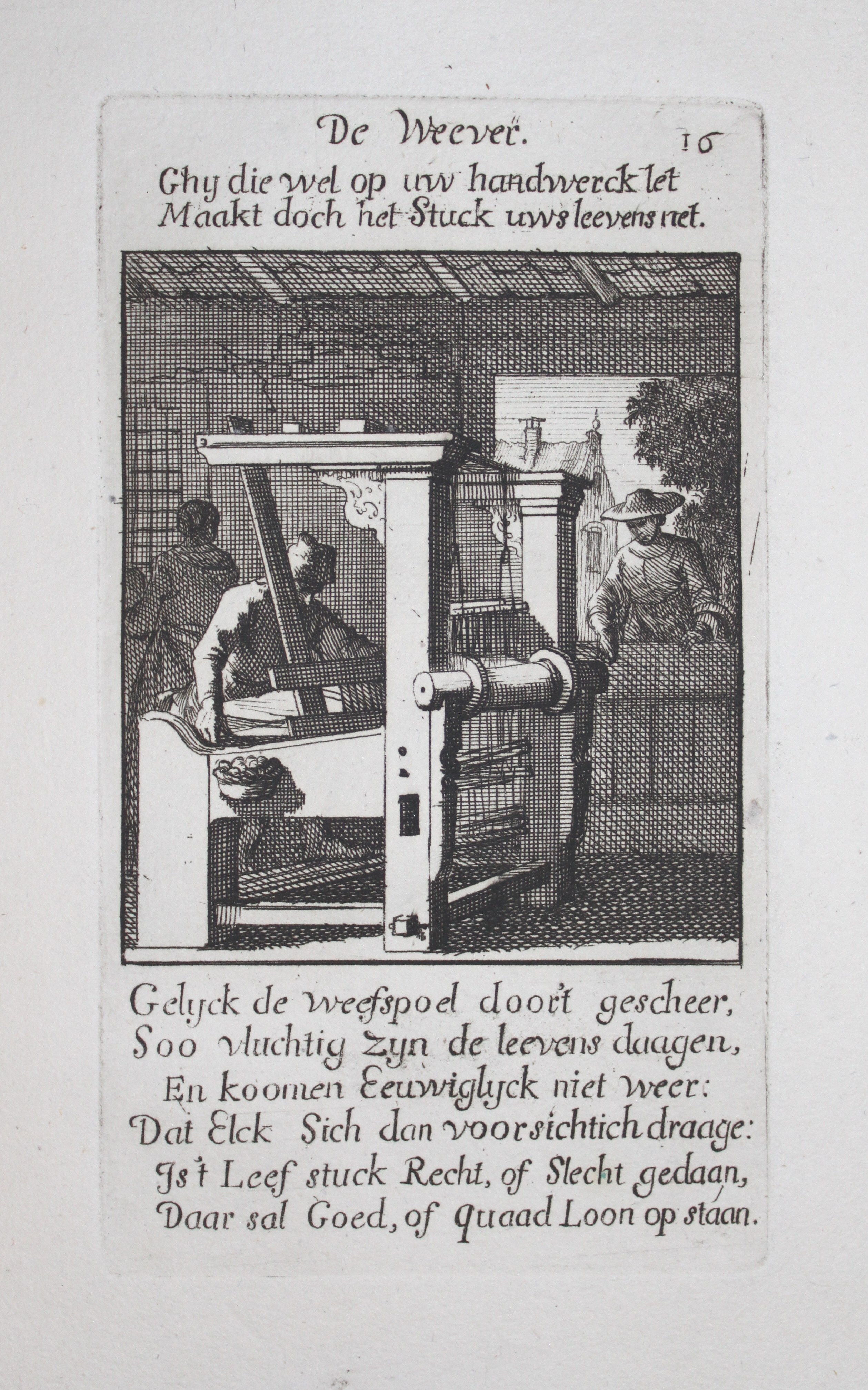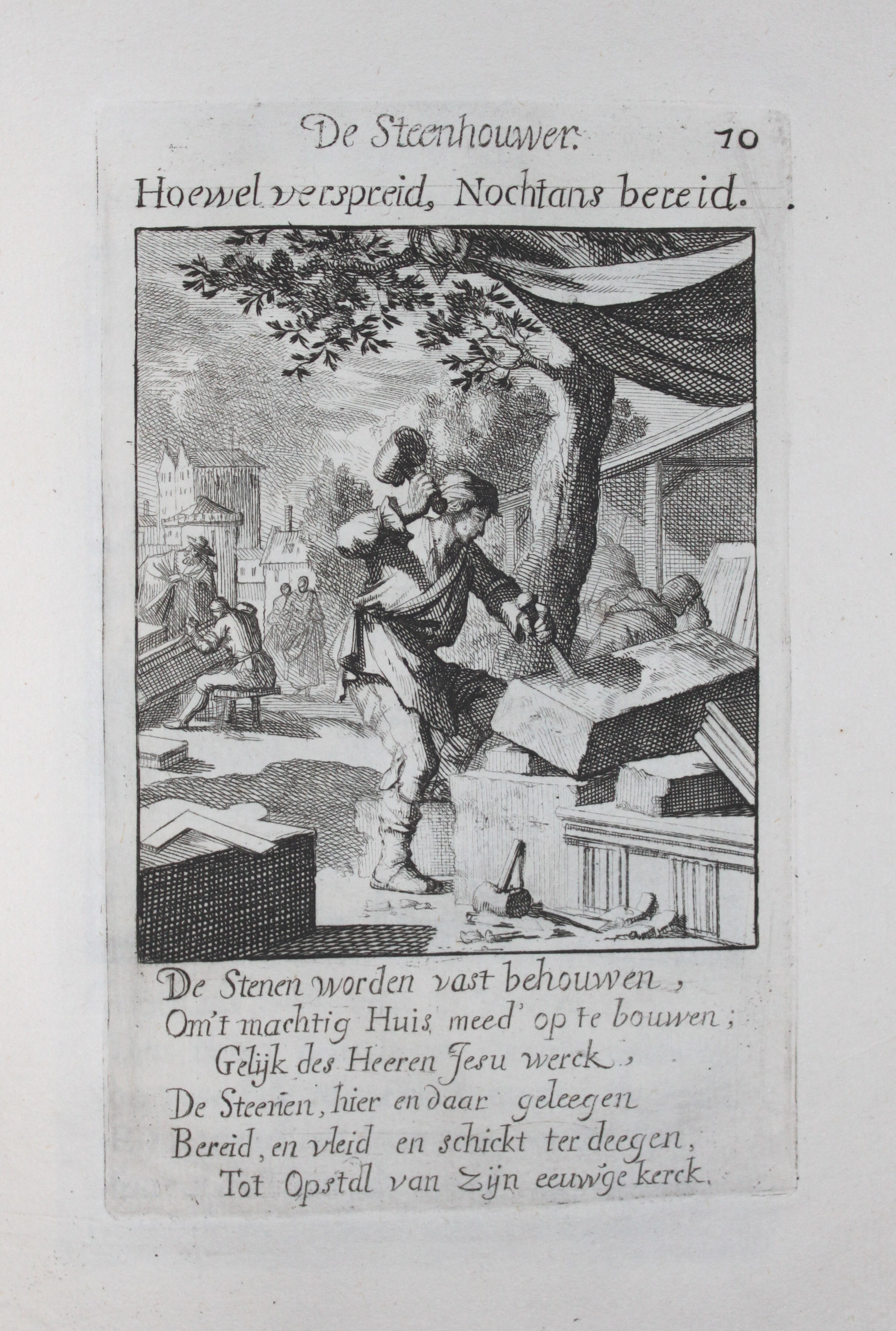 Het menselyk bedryf vertoond in 100 verbeeldingen van ambachten, konsten, hanteeringen en bedryven; met versen ... t' Amsterdam. Gedaan door Johannes, en Caspaares Luiken. 1694.