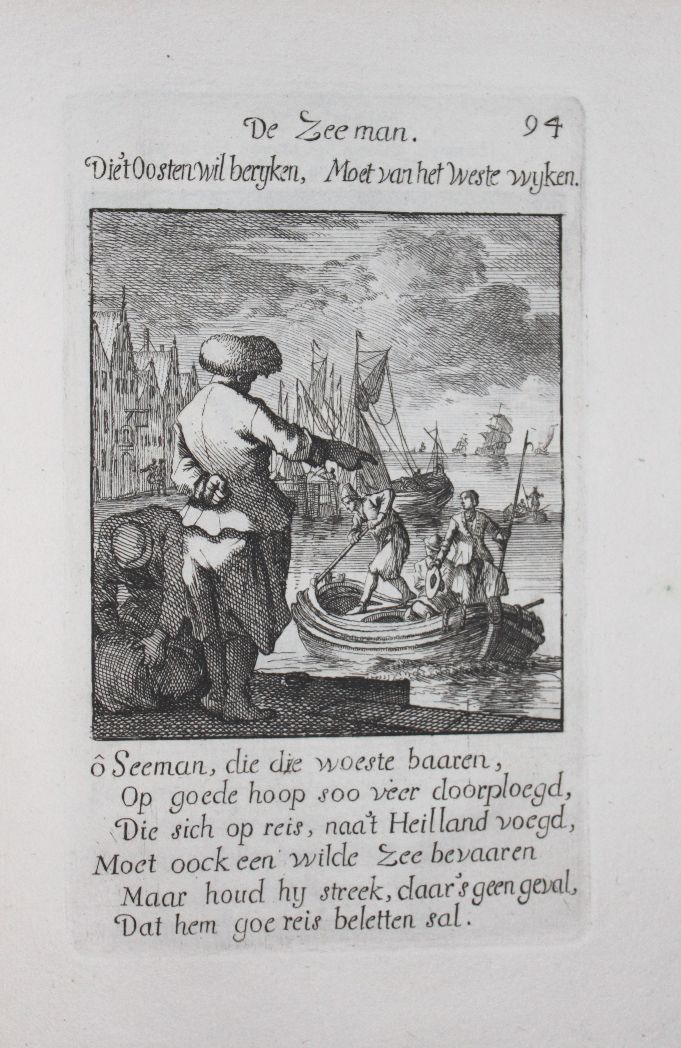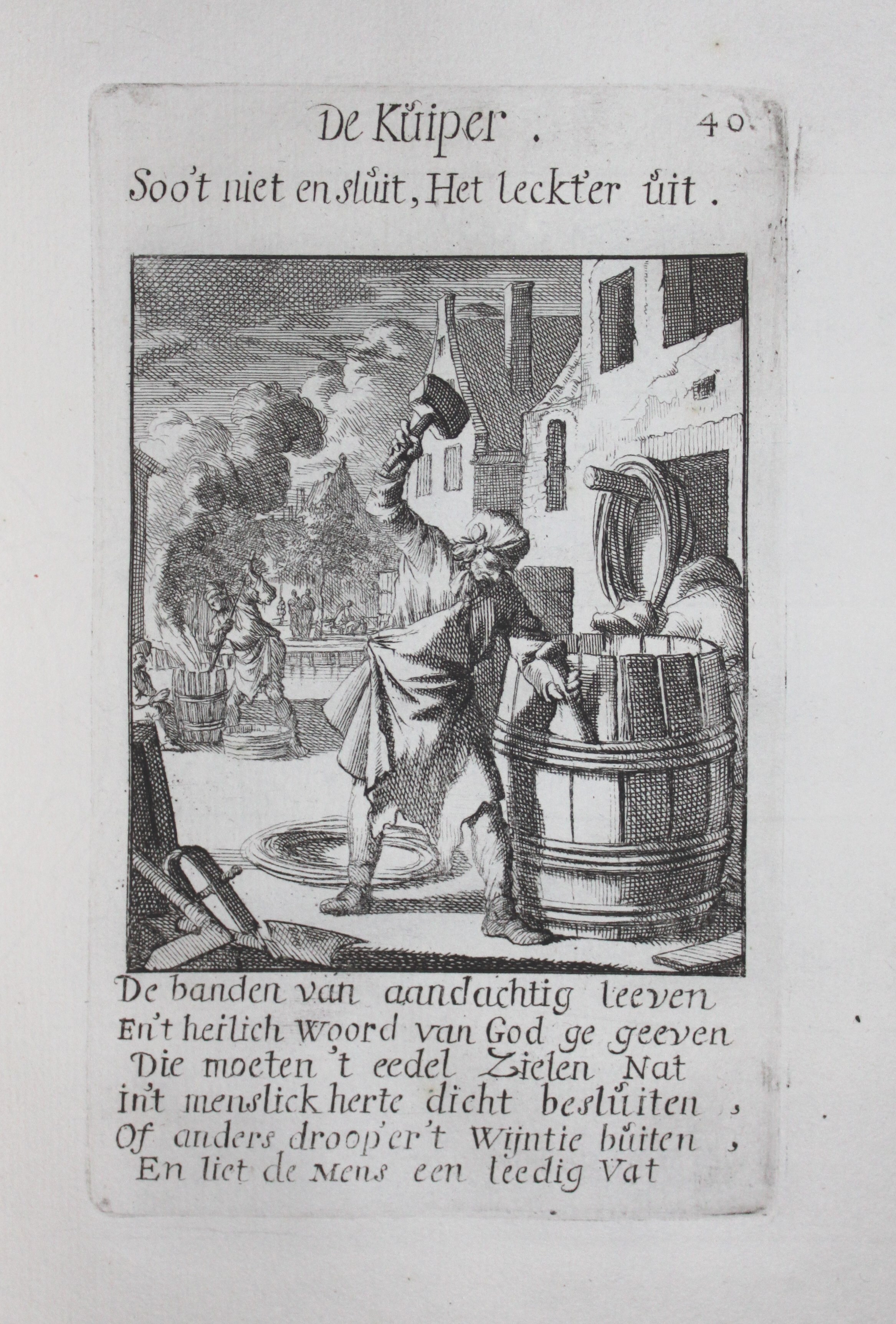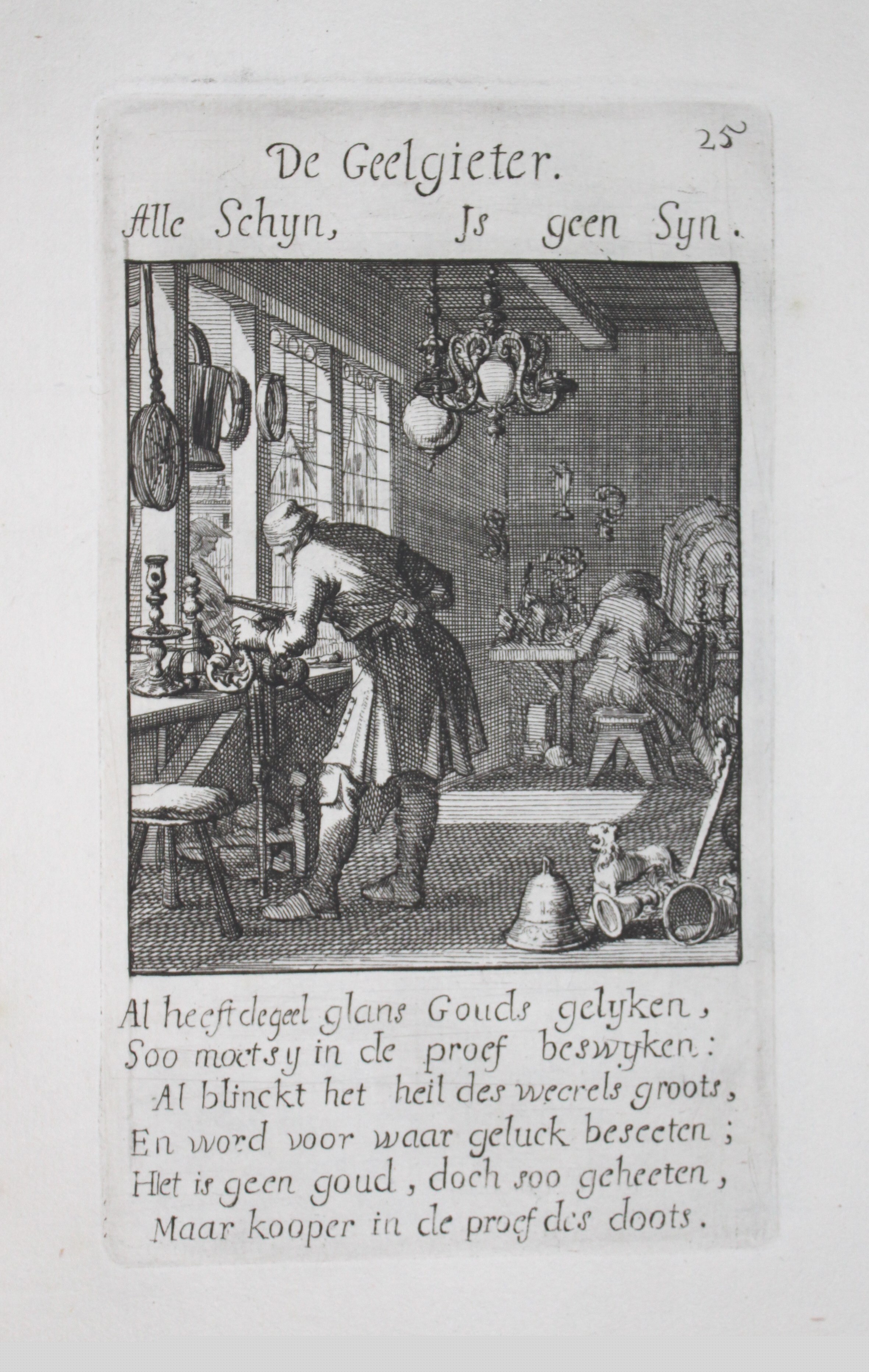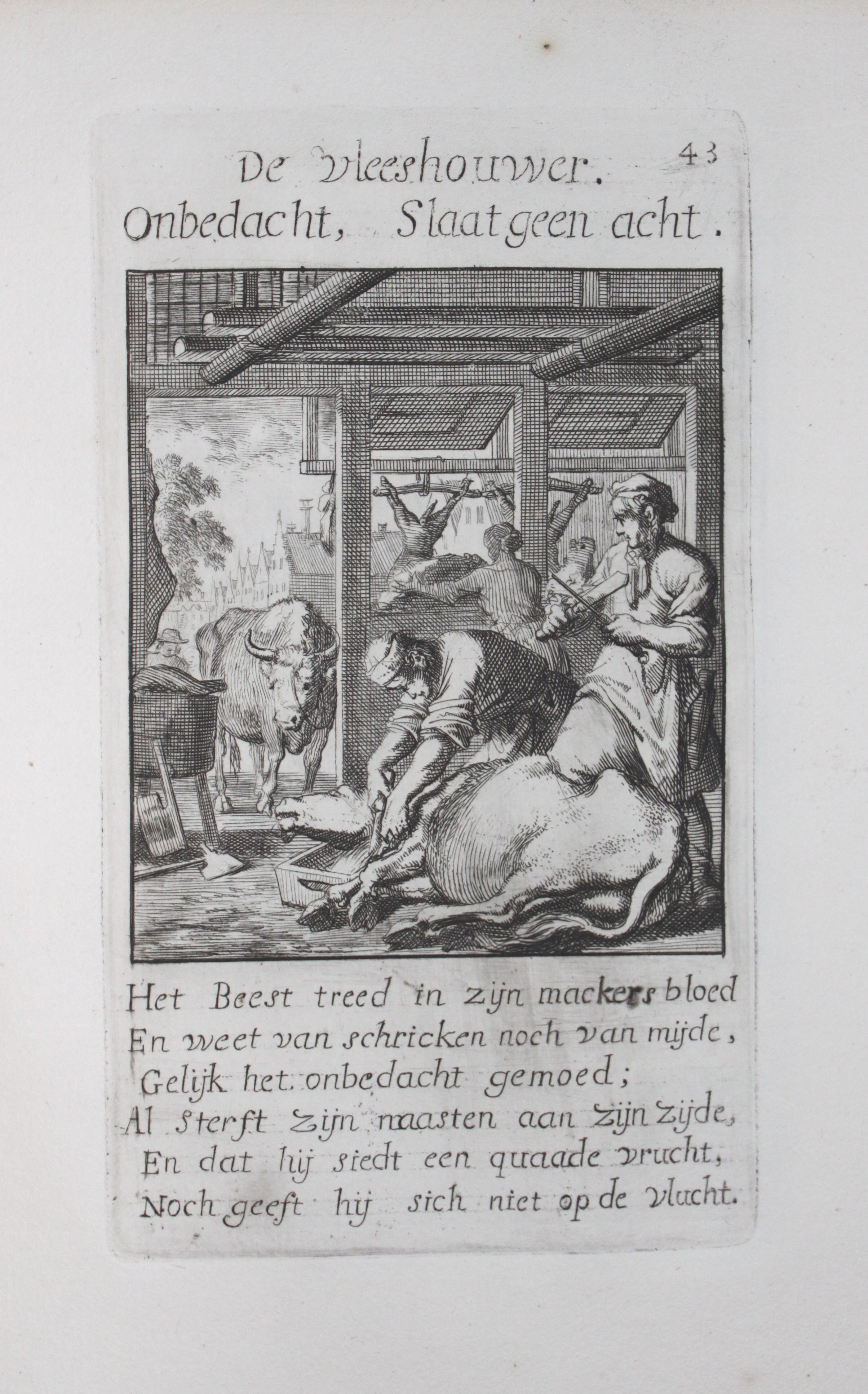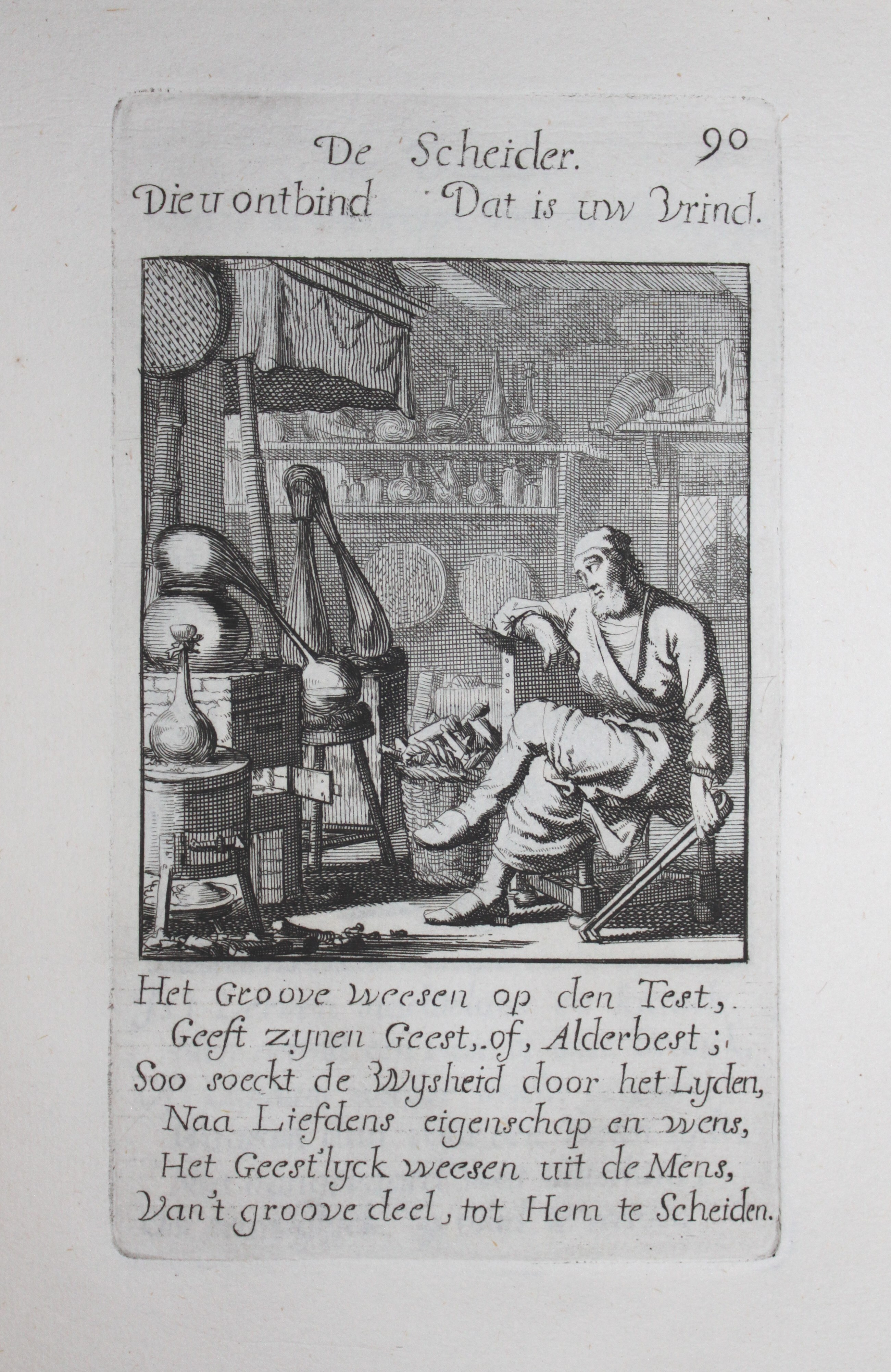 Het menselyk bedryf vertoond in 100 verbeeldingen van ambachten, konsten, hanteeringen en bedryven; met versen ... t' Amsterdam. Gedaan door Johannes, en Caspaares Luiken. 1694.