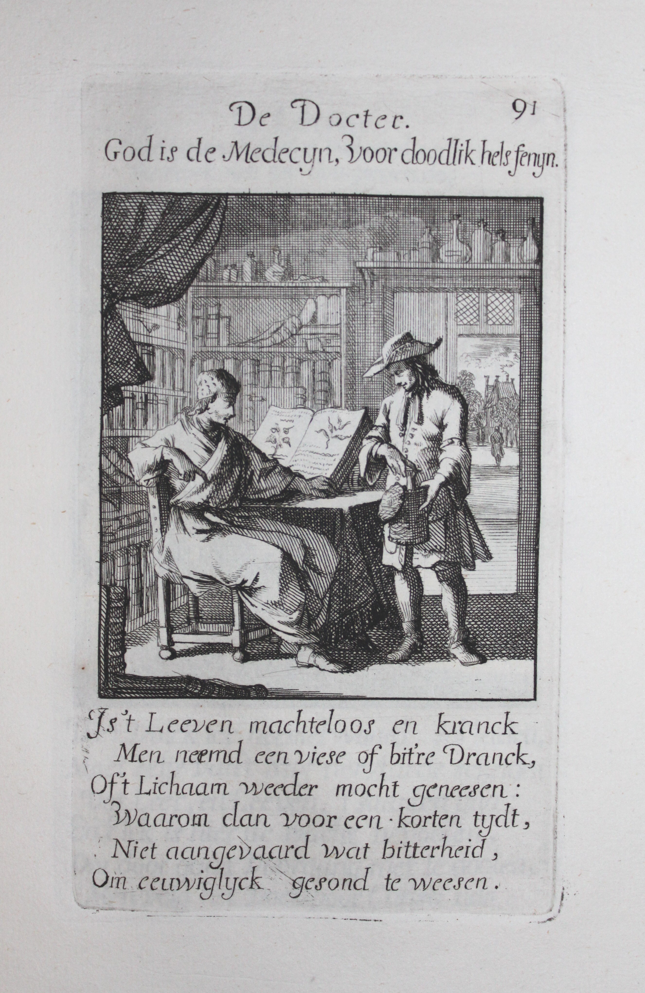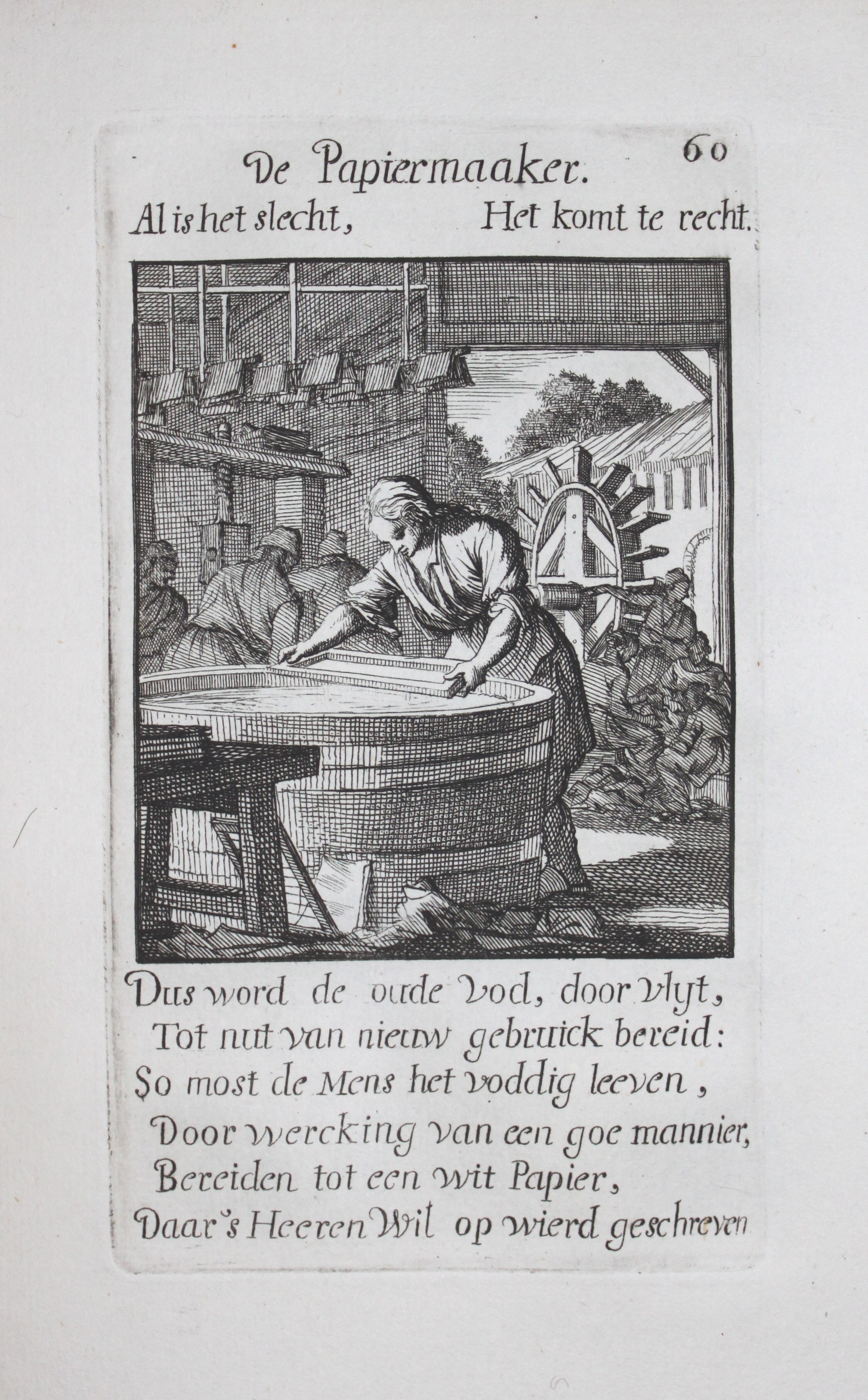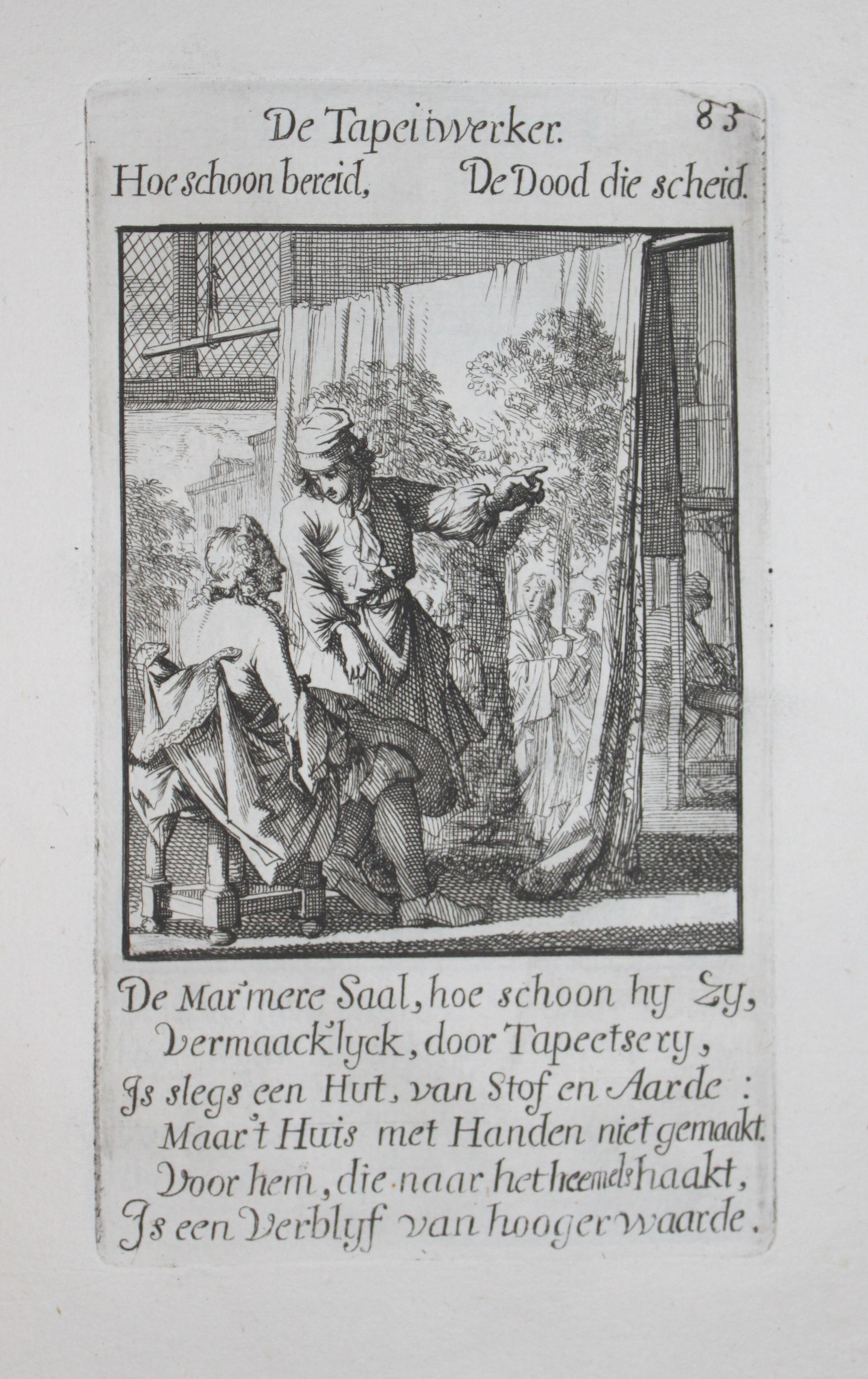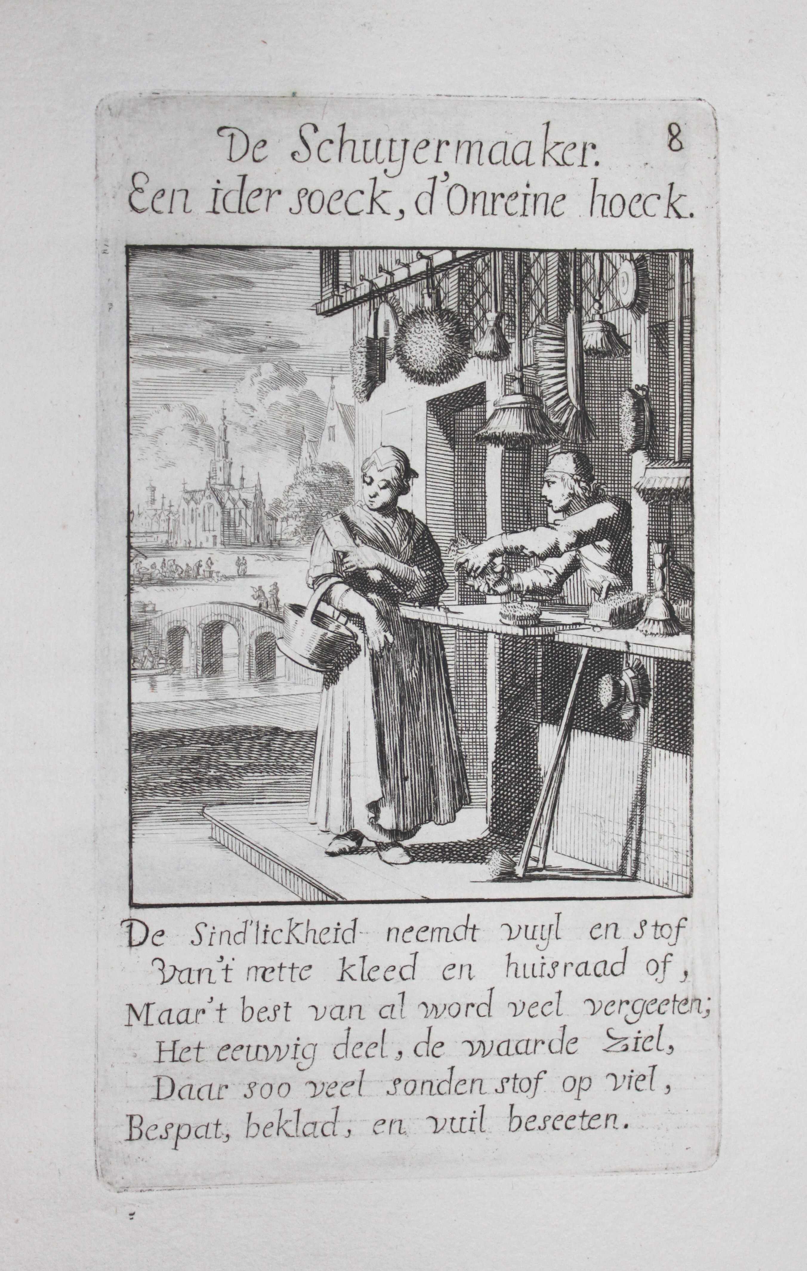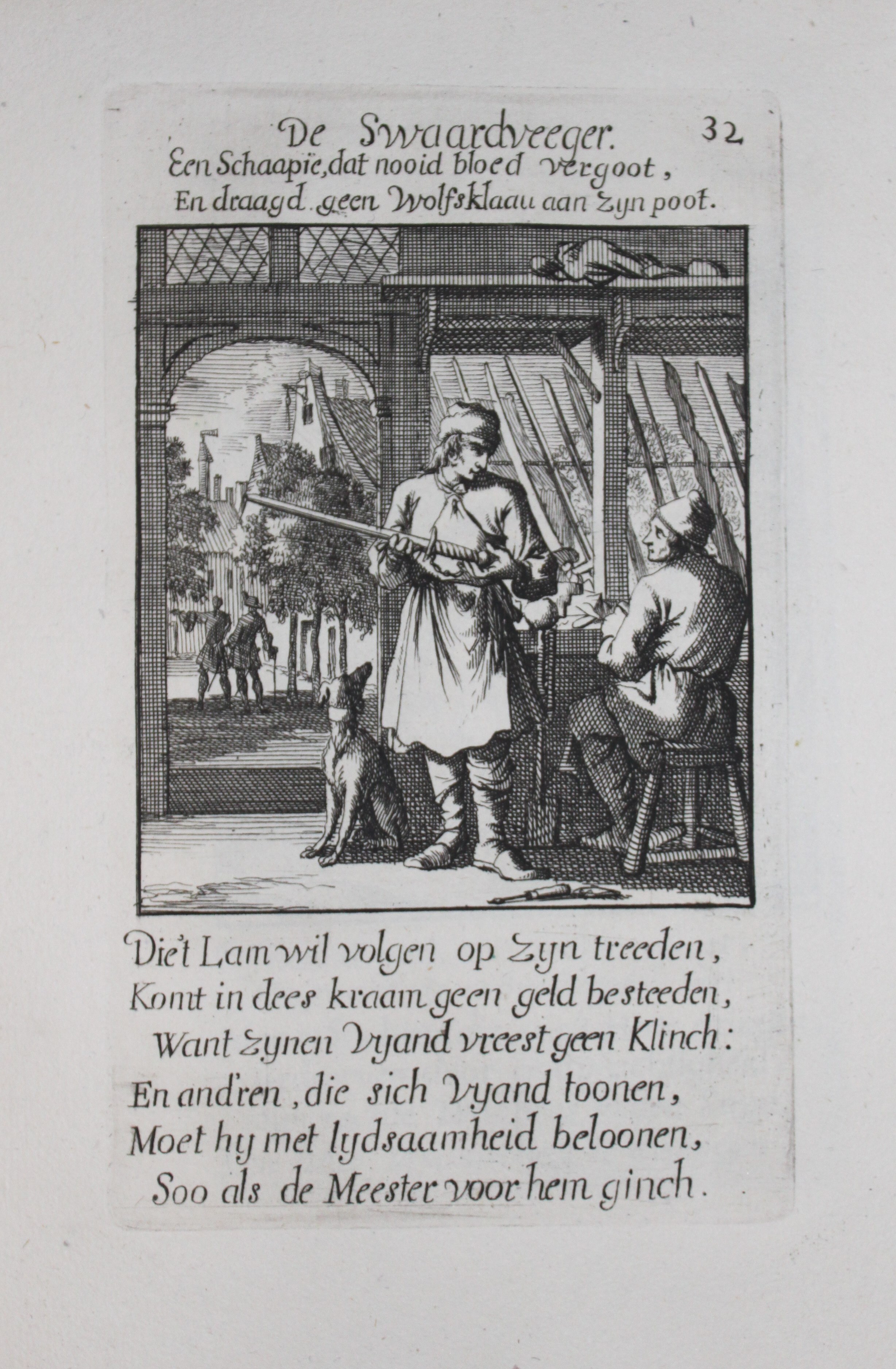 Het menselyk bedryf vertoond in 100 verbeeldingen van ambachten, konsten, hanteeringen en bedryven; met versen ... t' Amsterdam. Gedaan door Johannes, en Caspaares Luiken. 1694.