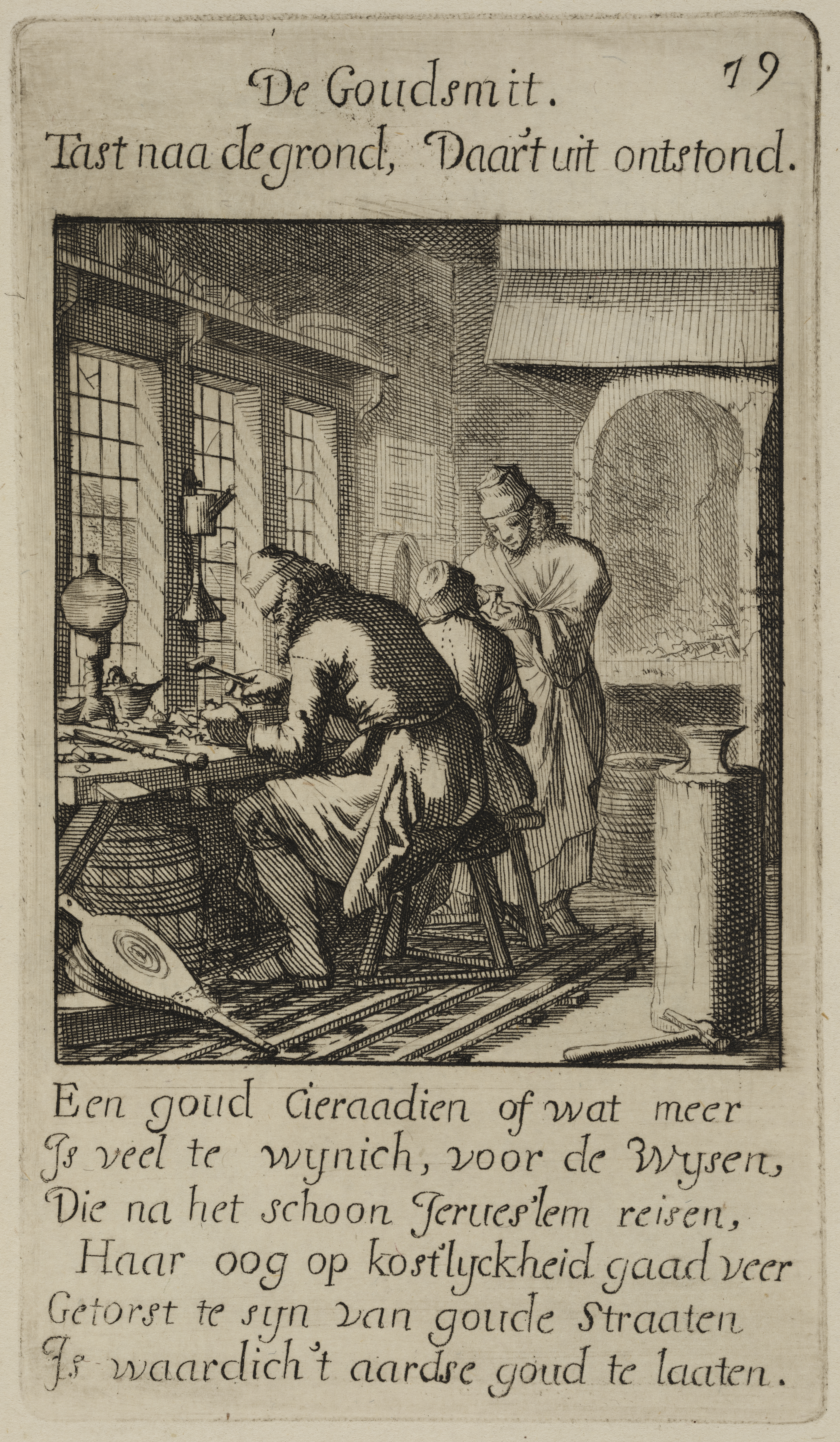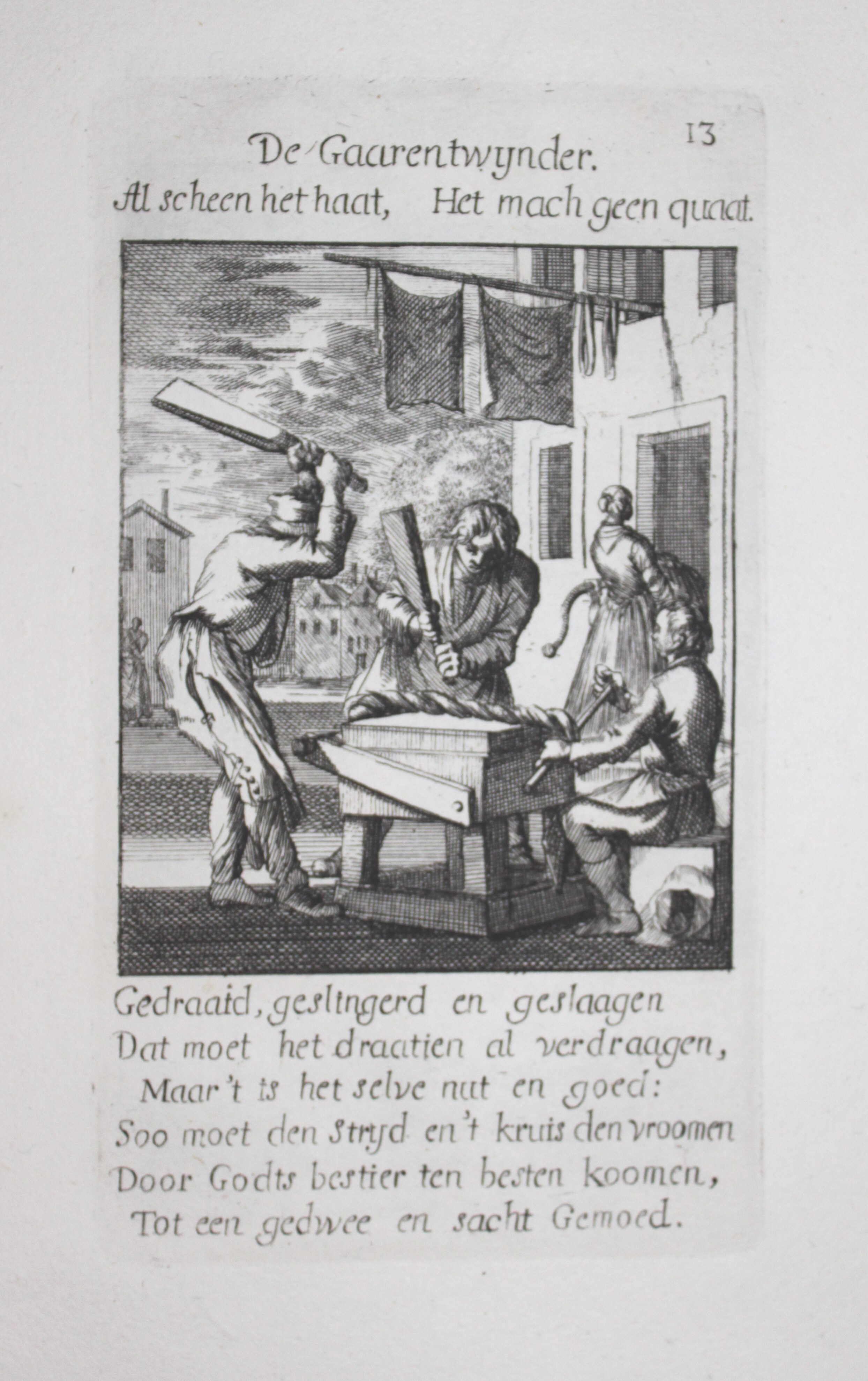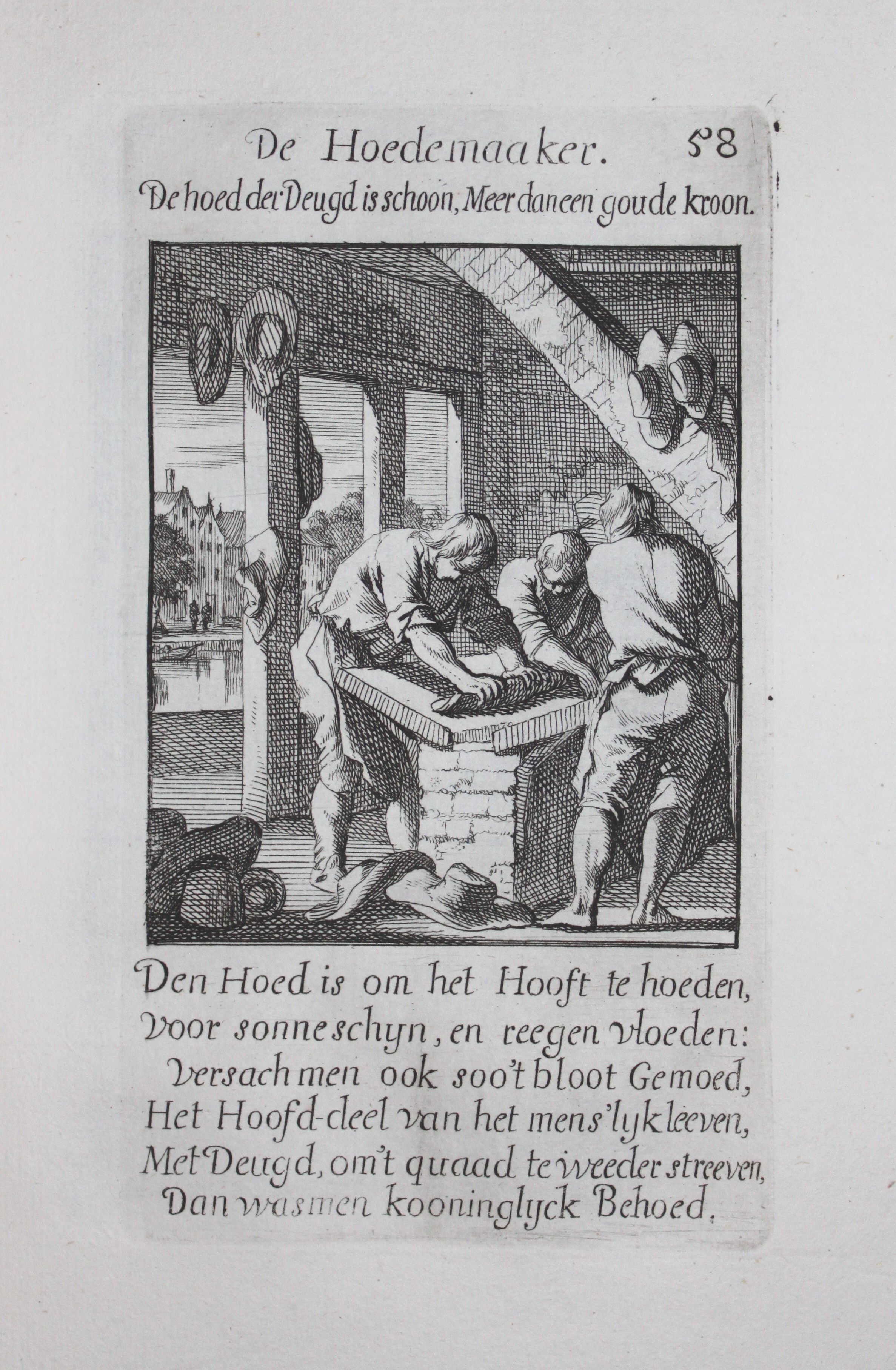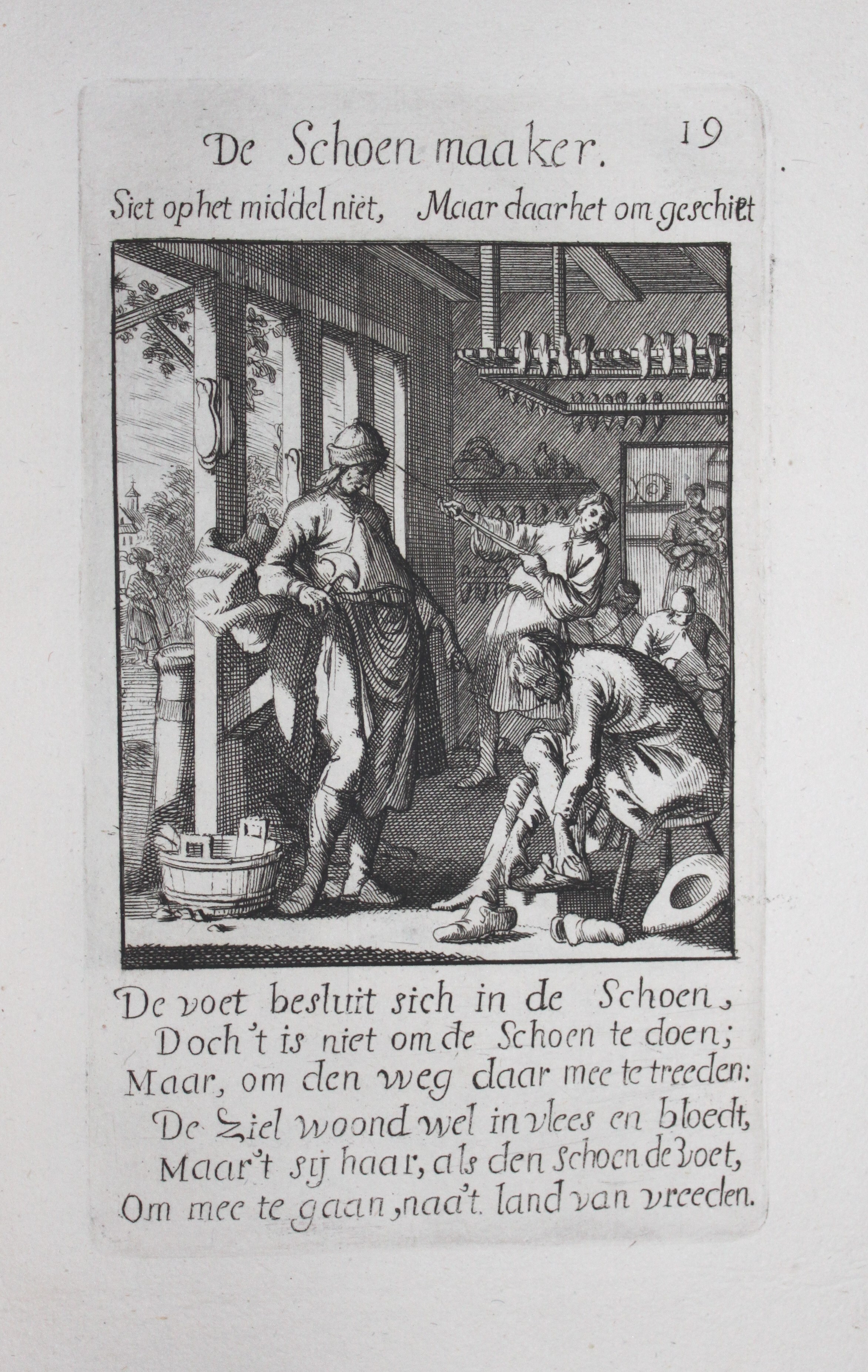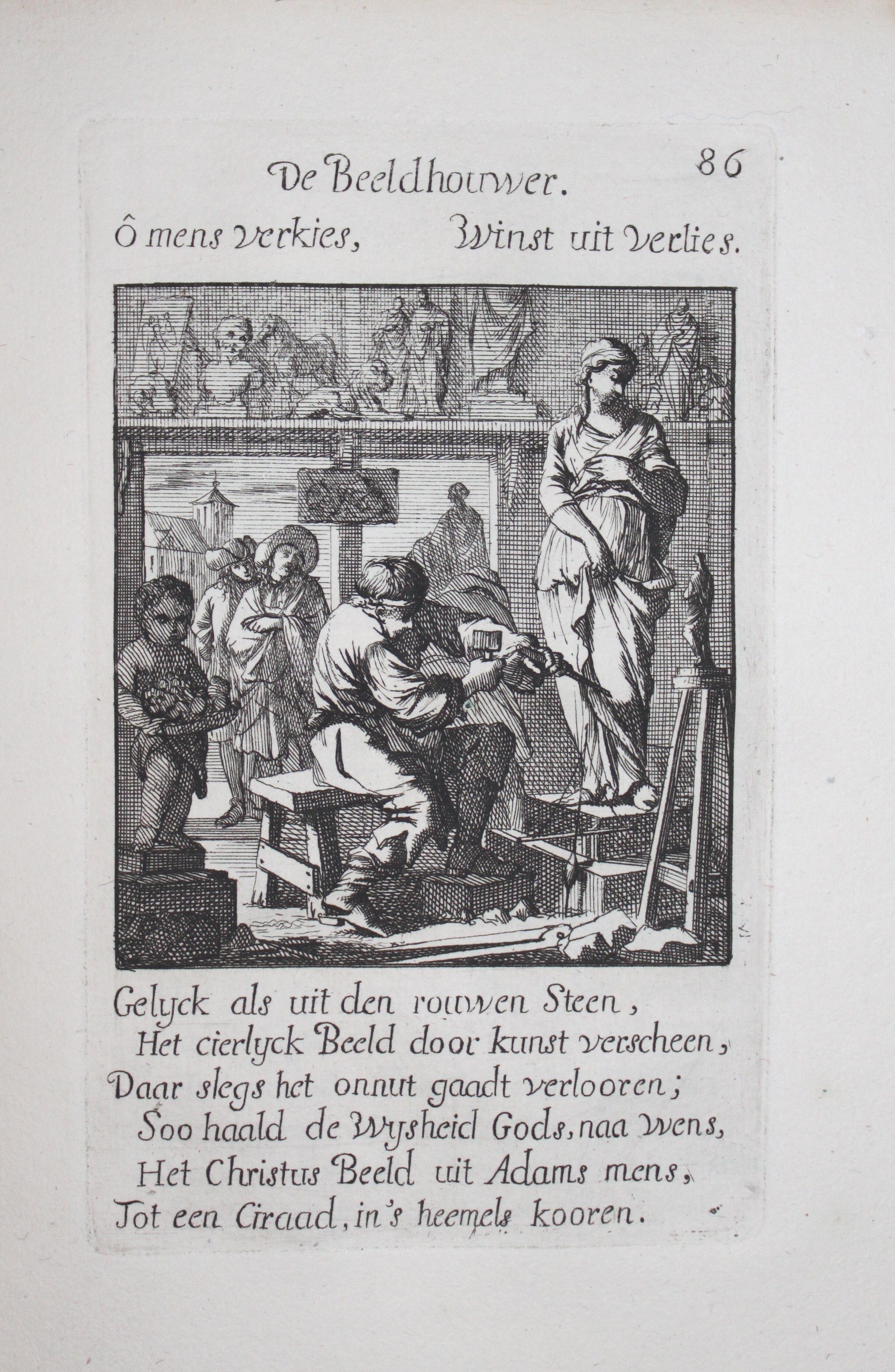 Het menselyk bedryf vertoond in 100 verbeeldingen van ambachten, konsten, hanteeringen en bedryven; met versen ... t' Amsterdam. Gedaan door Johannes, en Caspaares Luiken. 1694.