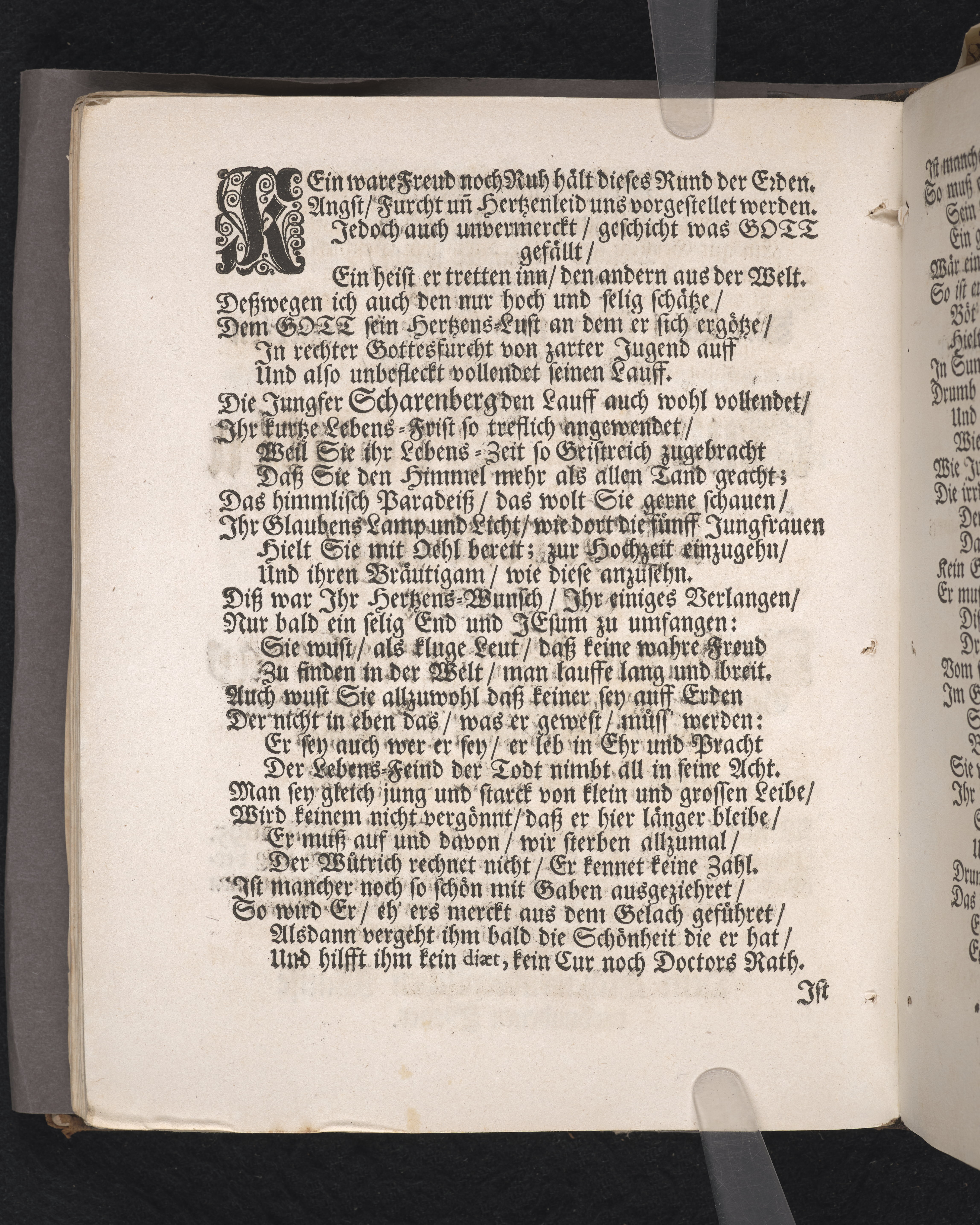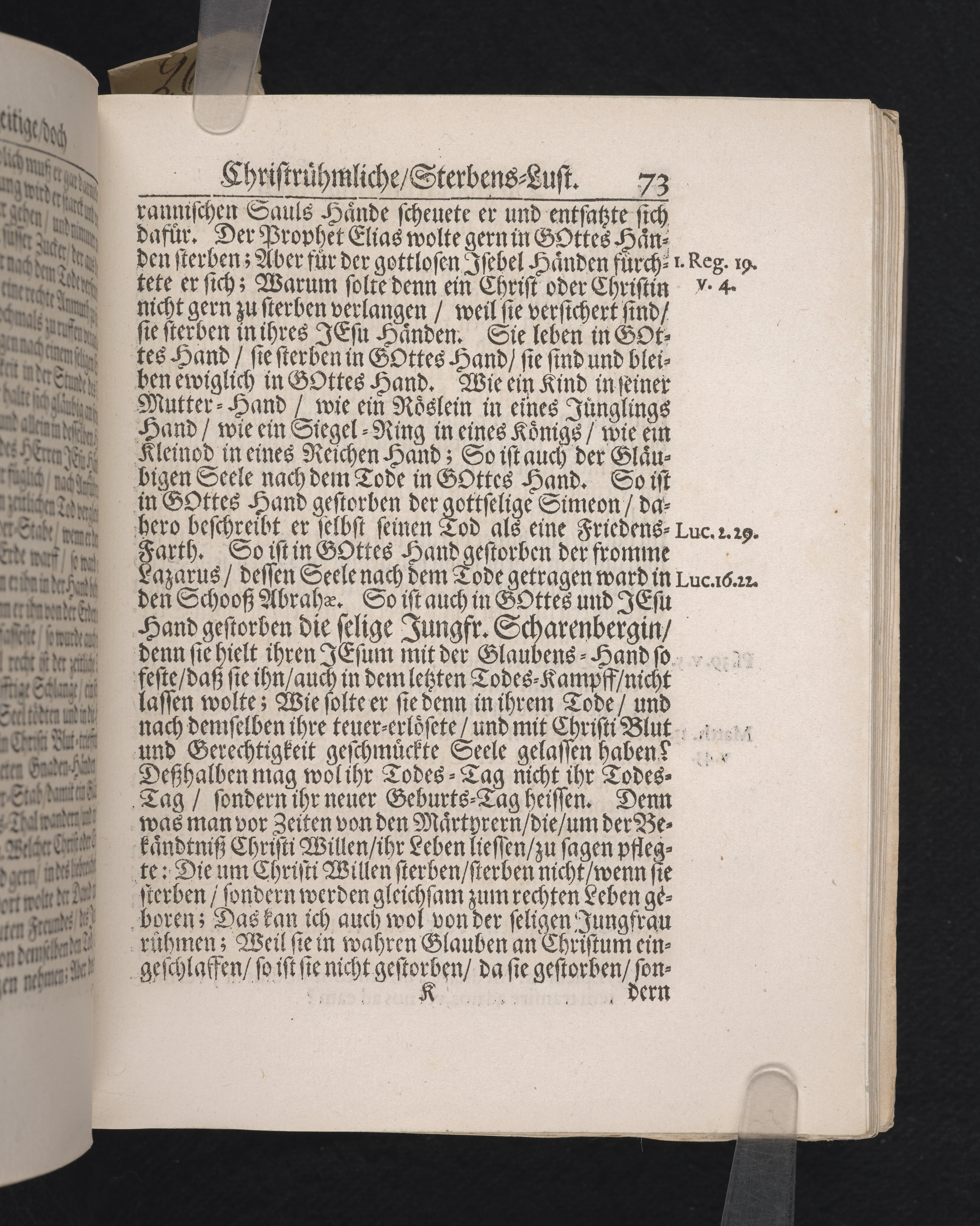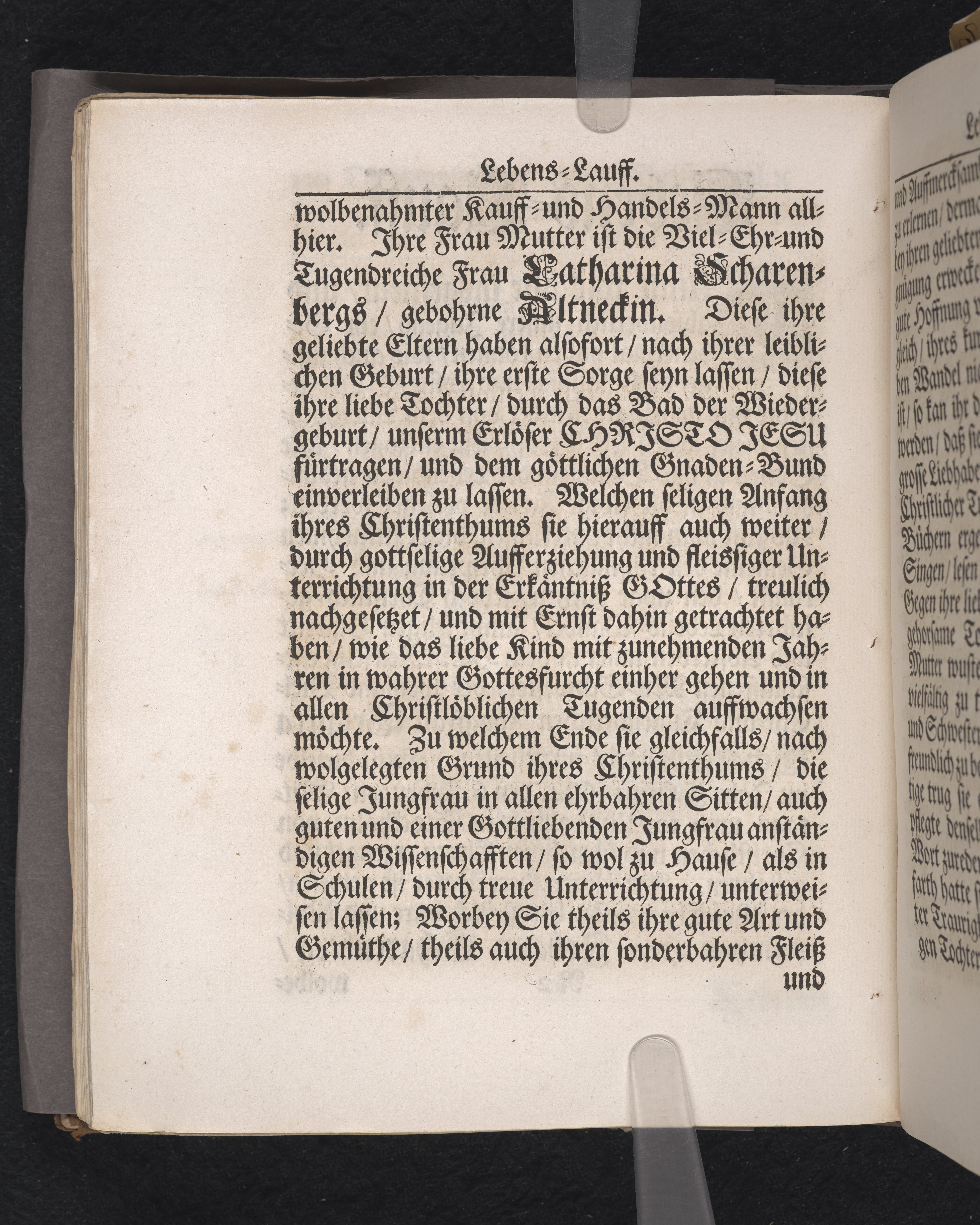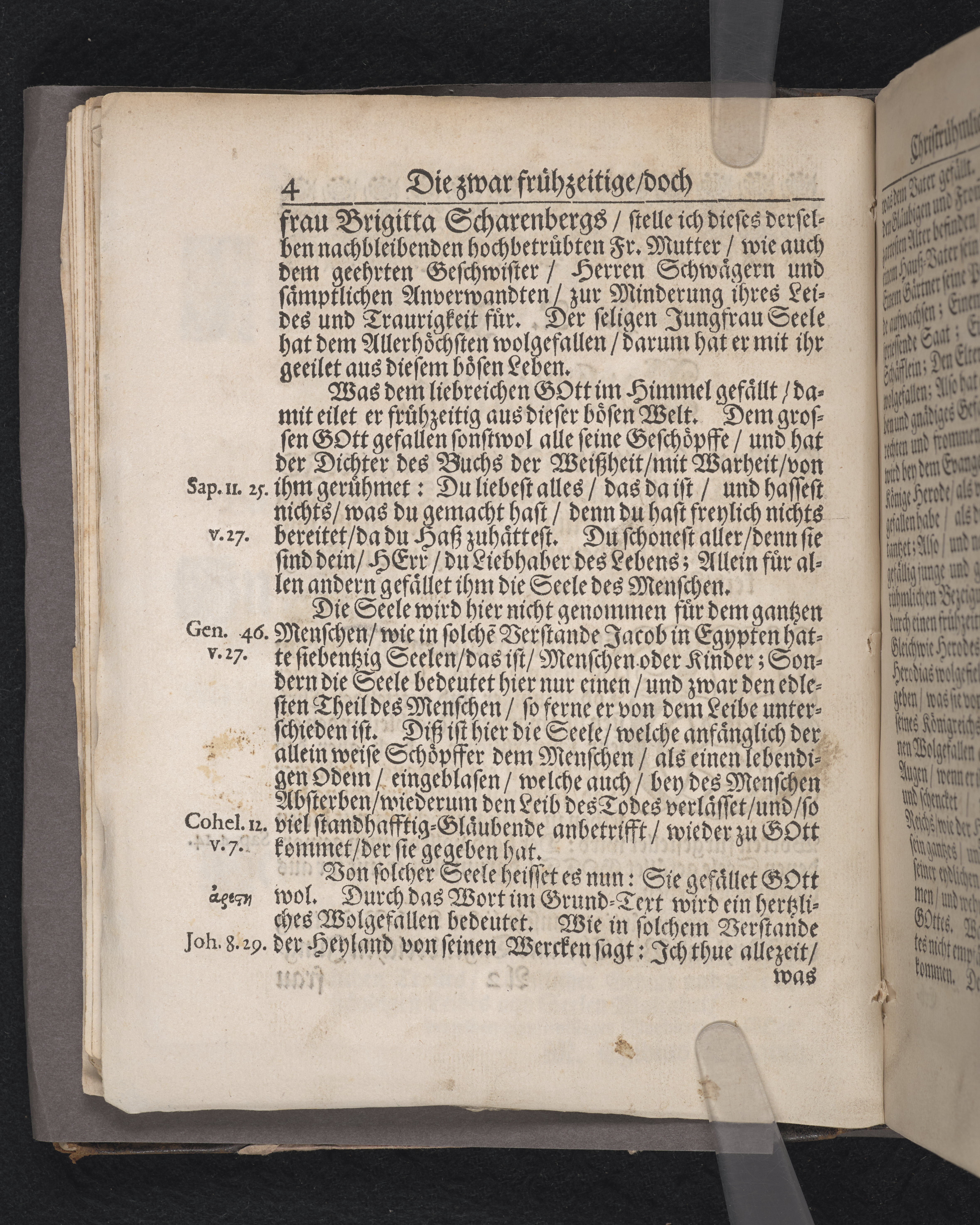 Die zwarfrühzeitige, doch christrühmliche Sterbens-Lust einer ... Jungfrau, der ... Jungfr. Brigitta Scharenbergs, des ... Herrn Johann Scharenbergs ... Kauff- und Handels-Manns, in der königlichen Residentz-Stad Stockholm ... jüngsten Jungfr. Tochter ... 1695. den 23 April, in der St. Nicolai Kirchen ... fürgestellet ... von M. Aegidio Strauch ... Stockholm, gedruckt bey Nathanael Goldenau.