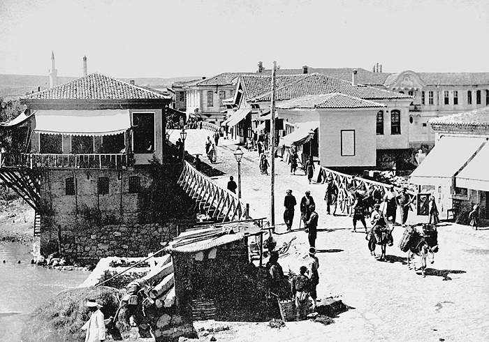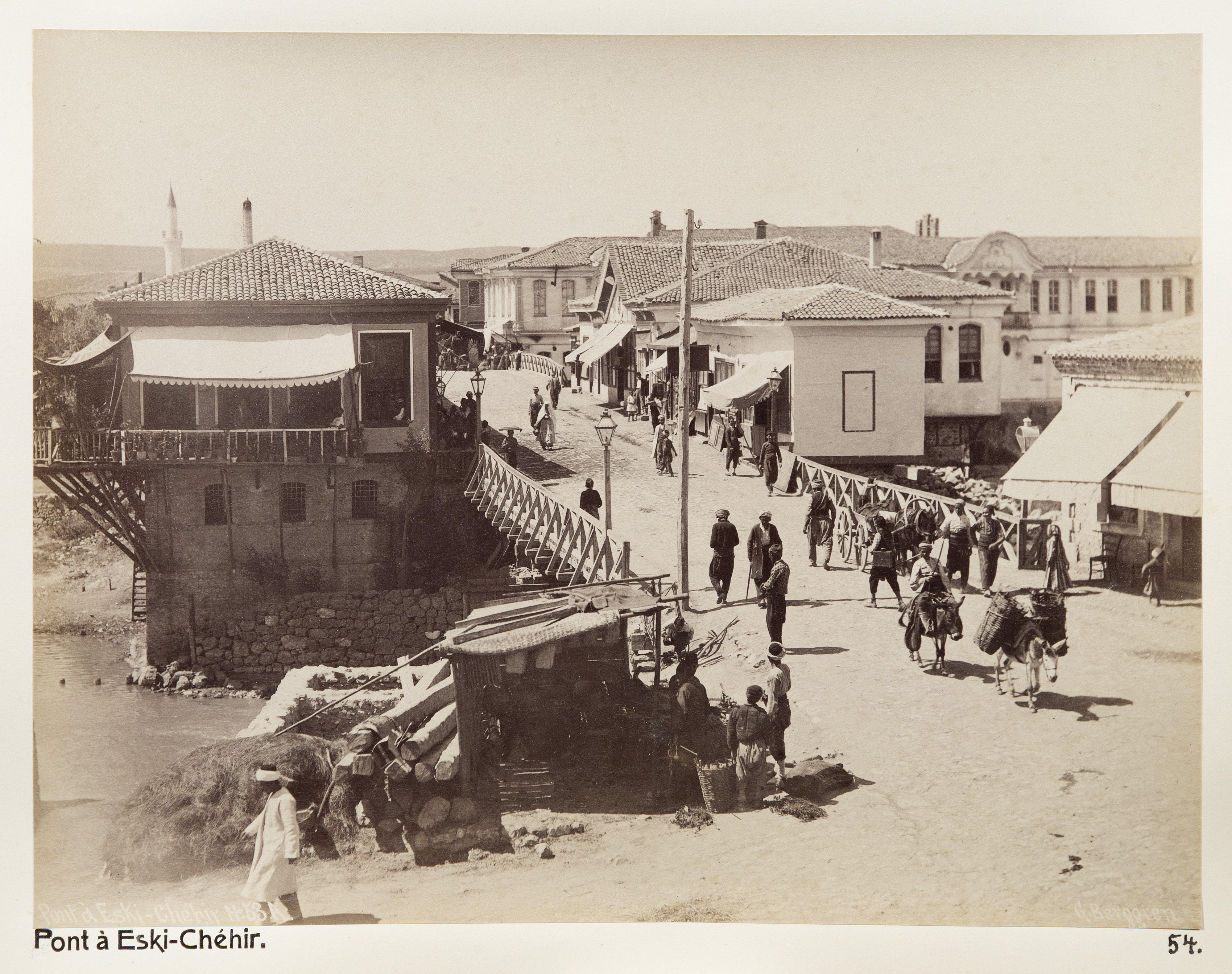 Bro i Eskişehir. Text på originalet: "Pont à Eskichéhir." Fotografierna LXVI:O.01.-54. kommer från resan till Turkiet och Mindre Asien som Wilhelmina och Walther von Hallwyl gjorde den 27 april - 20 juni 1901. De lämnade Sverige den 5 november 1900 för Egypten, där de stannade till den 28 mars 1901, då de fortsatte till Palestina. Den 27 april fortsatte de till Turkiet och Mindre Asien. Med på resan var Wilhelminas sällskapsdam, fröken Ida Uhse. I Konstantinopel (Istanbul) anslöt sig Wilhelminas mor Johanna Kempe och kusindottern Elma Hök. Fotografierna är inköpta av Wilhelmina i Konstantinopel (Istanbul) och Brussa. Alla uppgifter kommer från Ida Uhses reseanteckningar.
