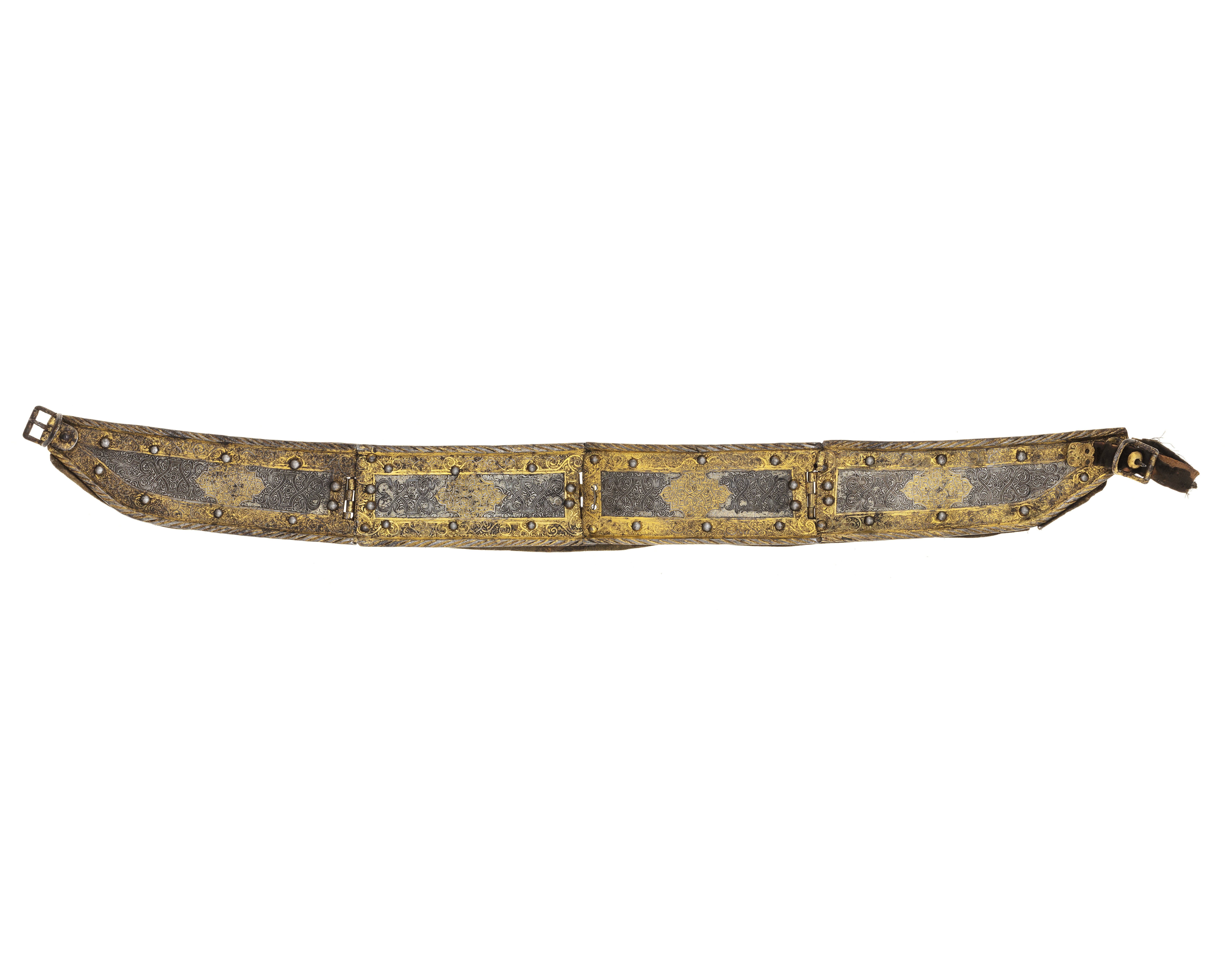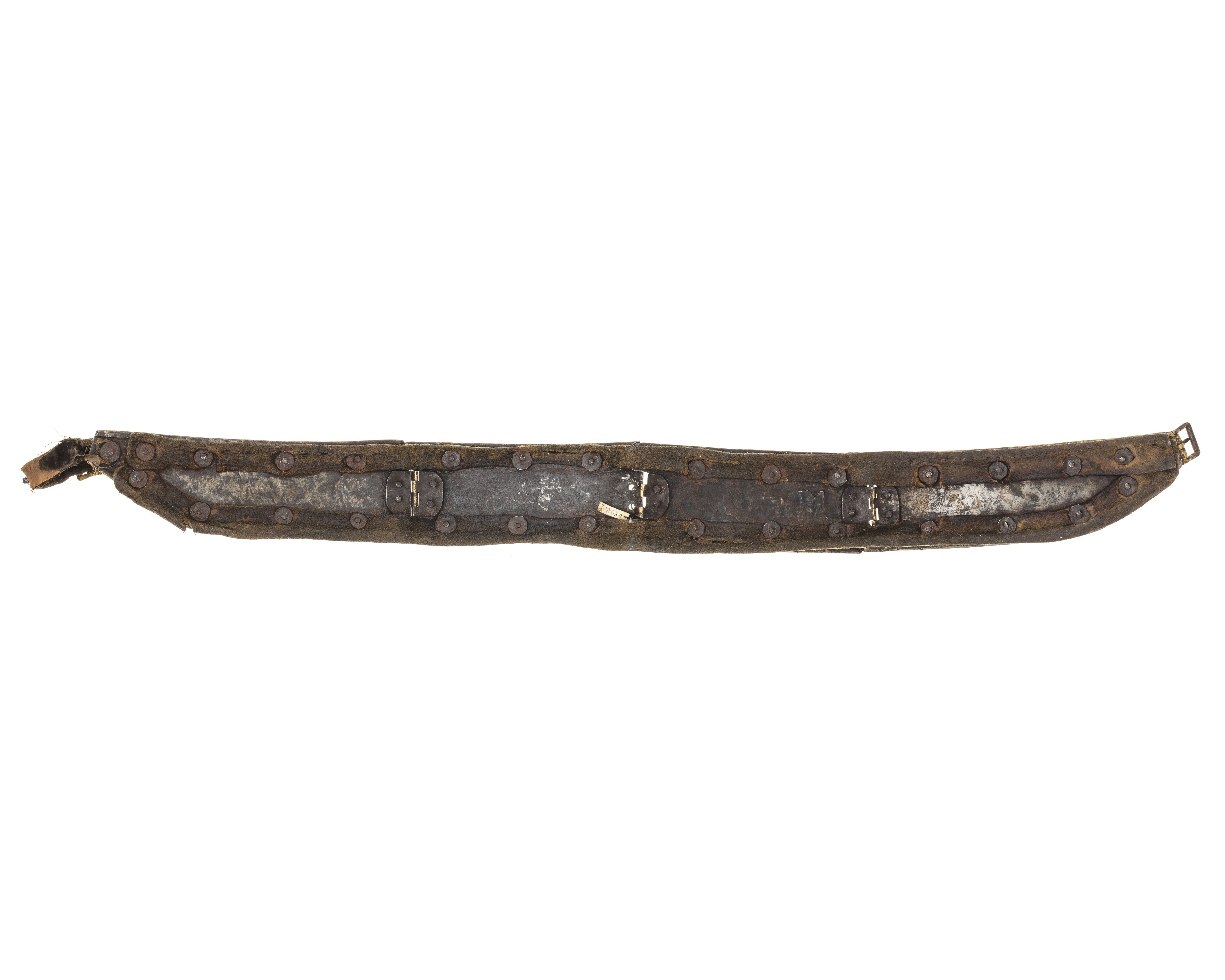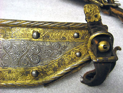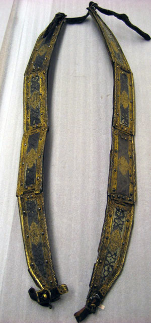 1 Bring Harnesk af drifvit Jern incrusterat med Guld ochSilfver med därtill hörande 2 Halsremmar med Länkbeslag lika med föregående