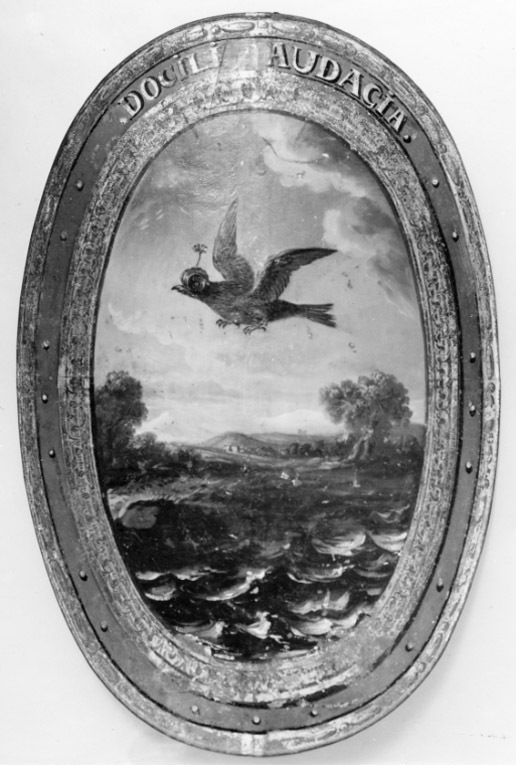 Tornérsköld med målning, DOCILI AUDALIA.