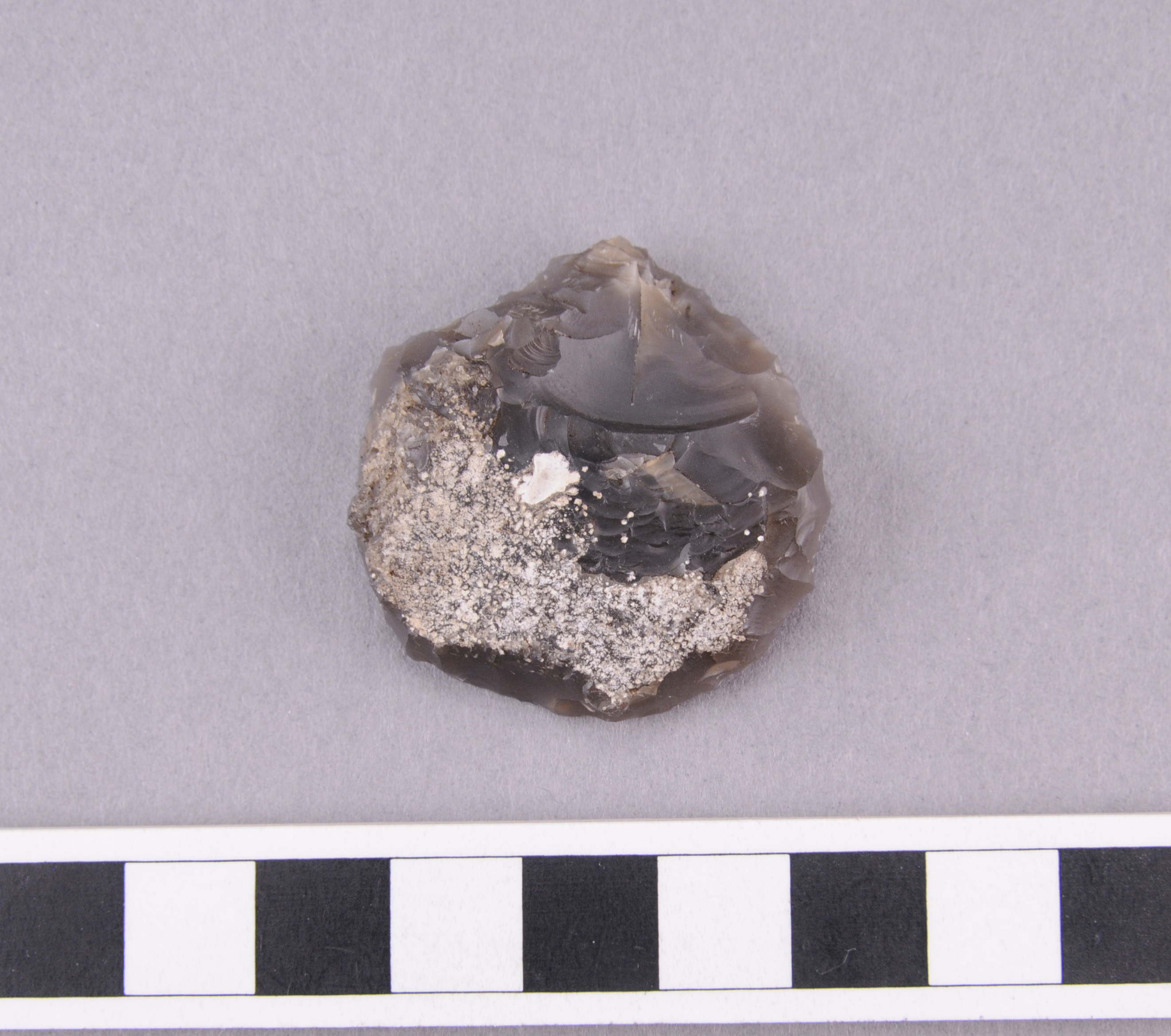 med väldigt fin retusch (och ev. bruksretusch?) runt hela skrapan.